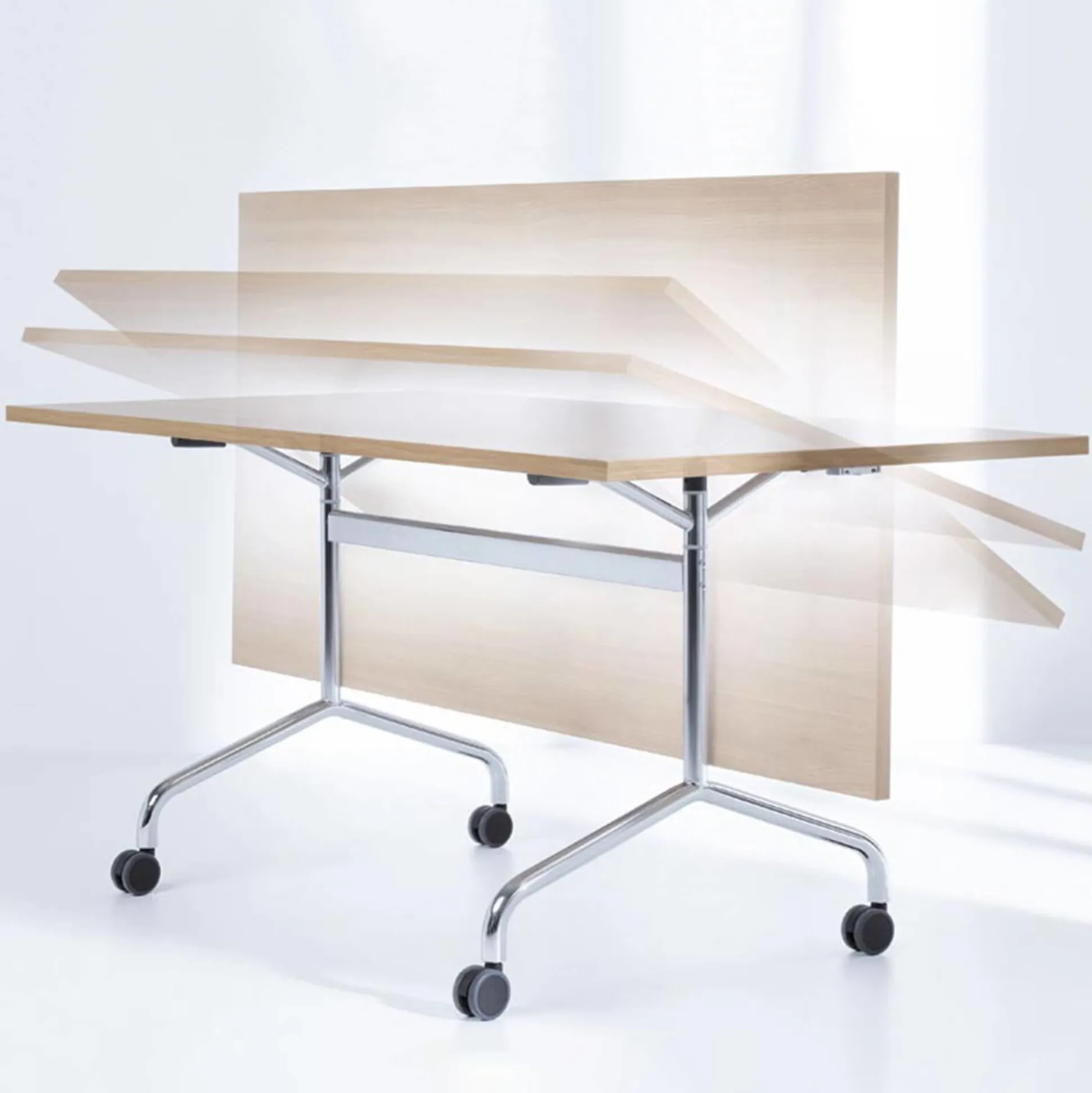 Flexo bordende, der kan bordpladen klappes ned til lodret position, hvilke gør at bordene kan stilles sammen og derved være pladsbesparende, hvis rummet skal benyttes til anden formål i perioder.