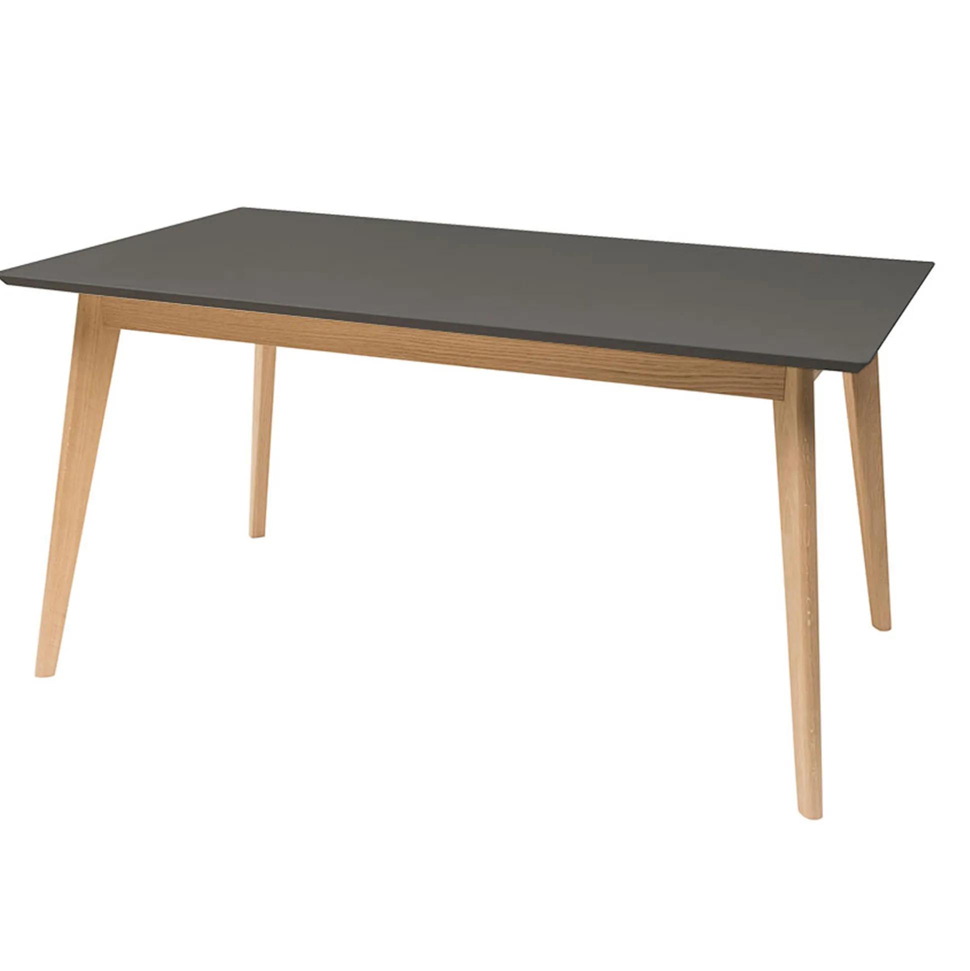 Super flot og stiligt mødebord til dig der godt kan lide en bord i træ, kombineret med praktisk slidstærk laminat. Madrid Bordet er med let skrå bordben i lakeret egetræ og fås med laminat bordplade i enten hvid, sort eller flot antracit. Bordpladen er lavet med massiv MDF plade og har flot affasede kanter.