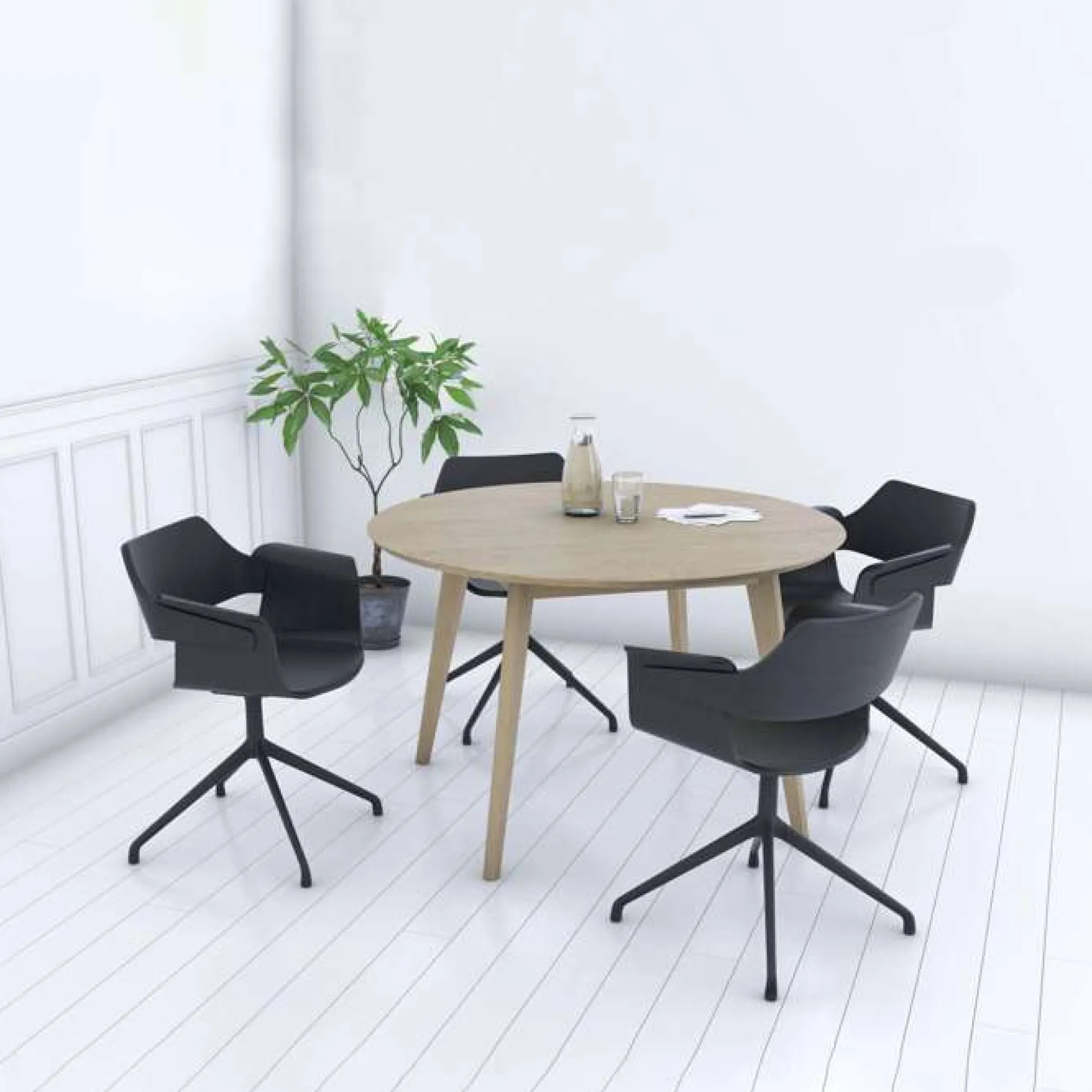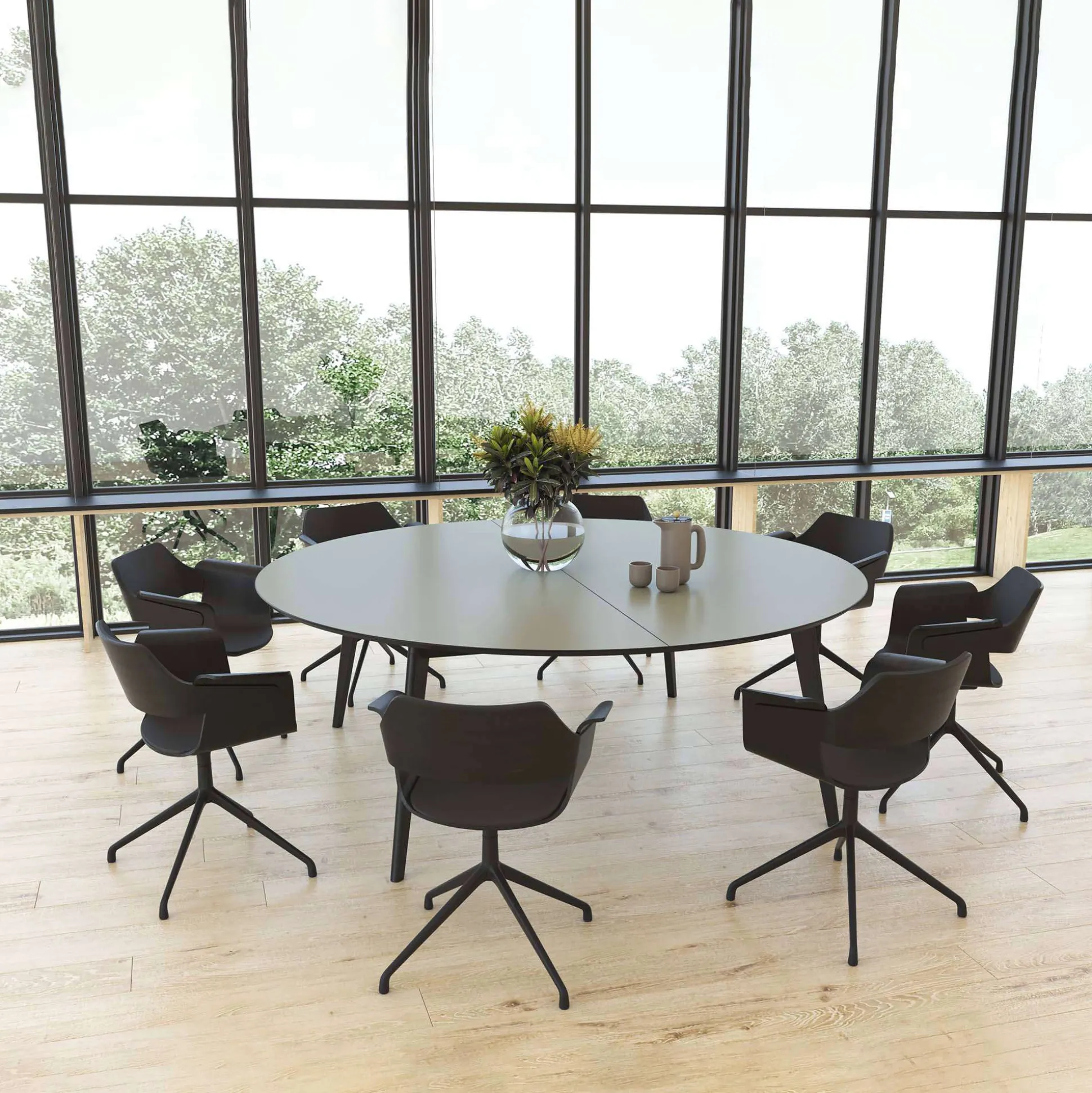 Madrid bordet i den runde model med en diameter på 120 cm og en højde på 75 cm. Perfekt som mødebord f.eks. i et større kontor eller som en del af et fælles areal i virksomheden.