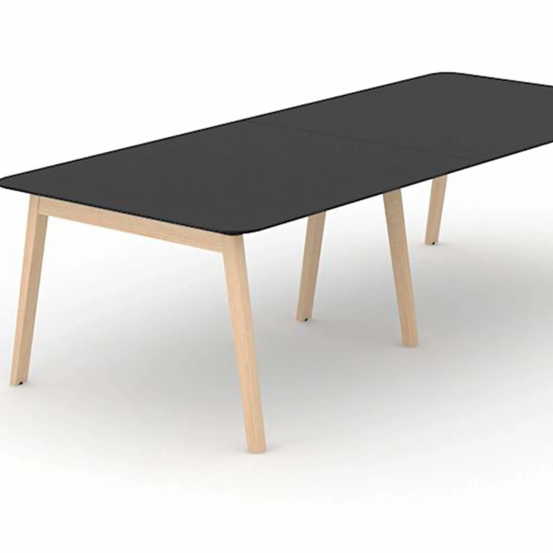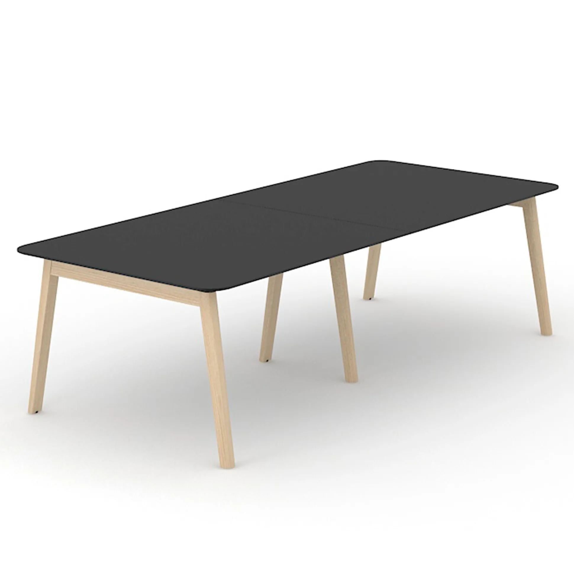Elegant mødebord med en 120×280 bordplade til 10 personer. Bordpladen er med Fenix laminat af højeste kvalitet, hvilket giver bordet en mat overflade der er fingeraftryks- og ridseresistent. De afrundede kanter og det matte finish giver bordet et simpelt og moderne design. Denne type bordplade giver en silkeblød følelse ved berøring og har en meget lav refleksionsgrad. Samtidig har bordet antibakterielle egenskaber, da overfladen er lukket.
