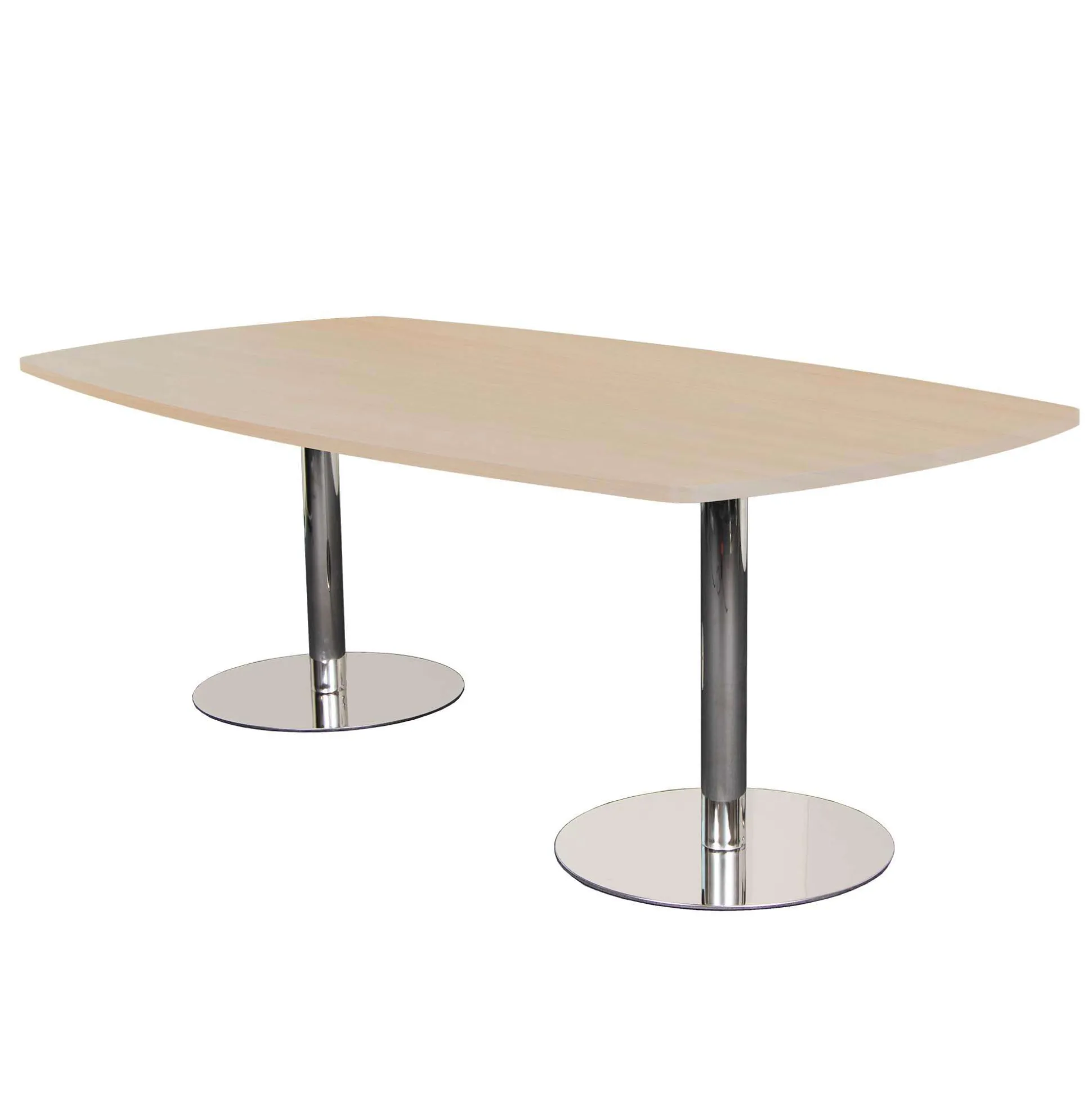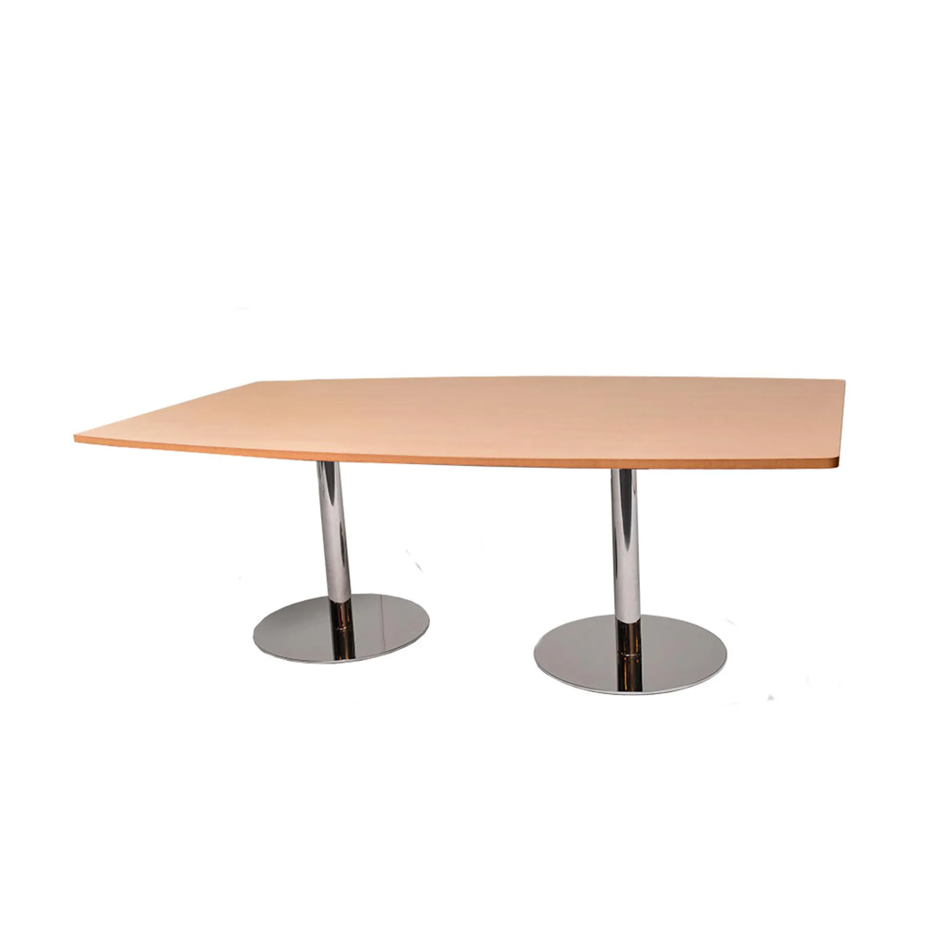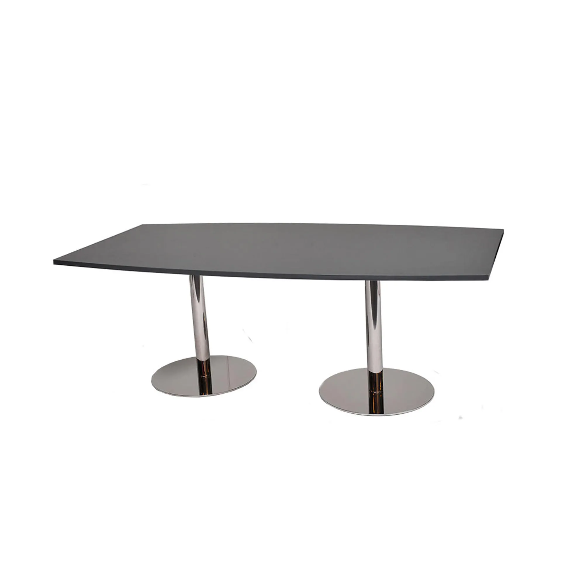 Van Doren mødebord er i et flot og enkelt design med flotte blanke søjler. Bordpladen er med let buet bordplade og beklædt med slidstærk decor laminat. Denne udgave af Van Doren mødebordet har flotte blanke søjler, og står meget stabilt på søjlebenene.