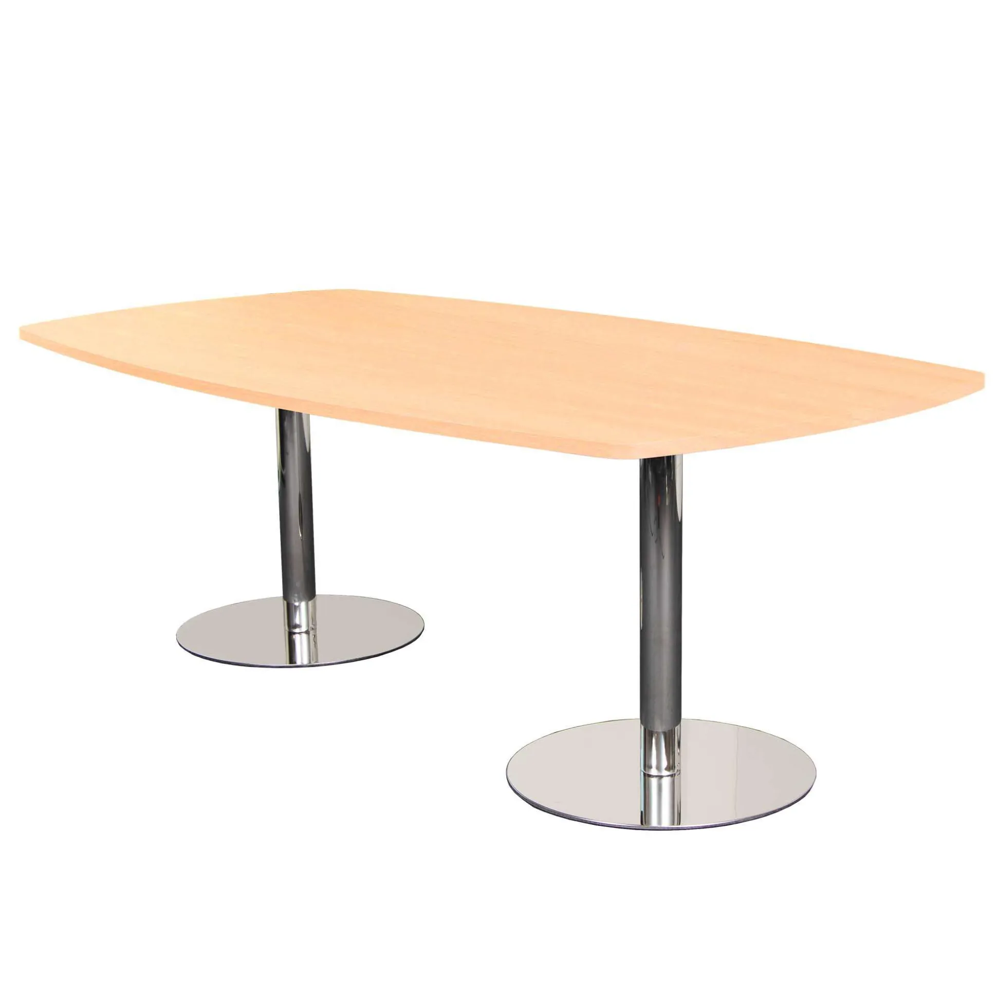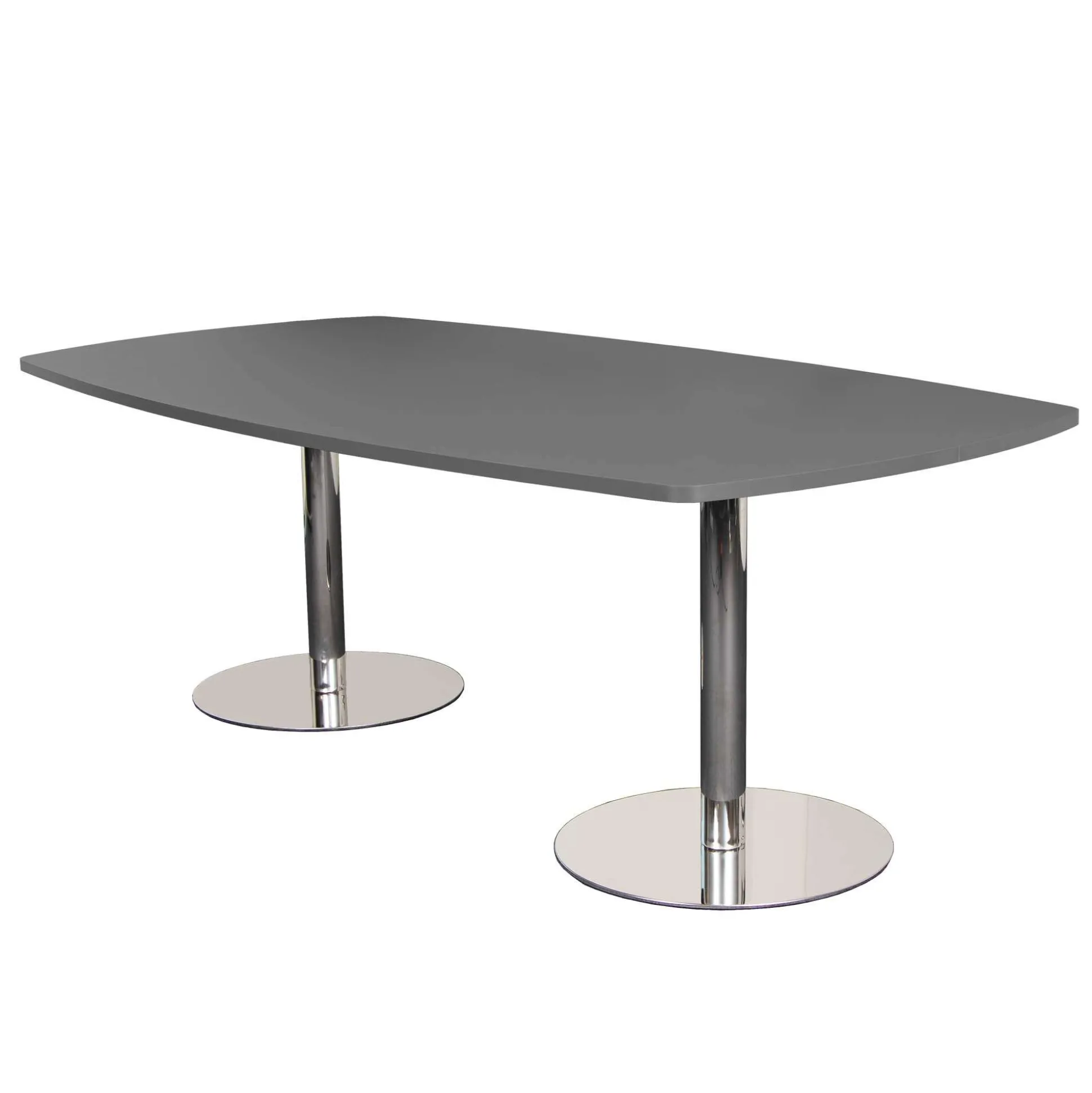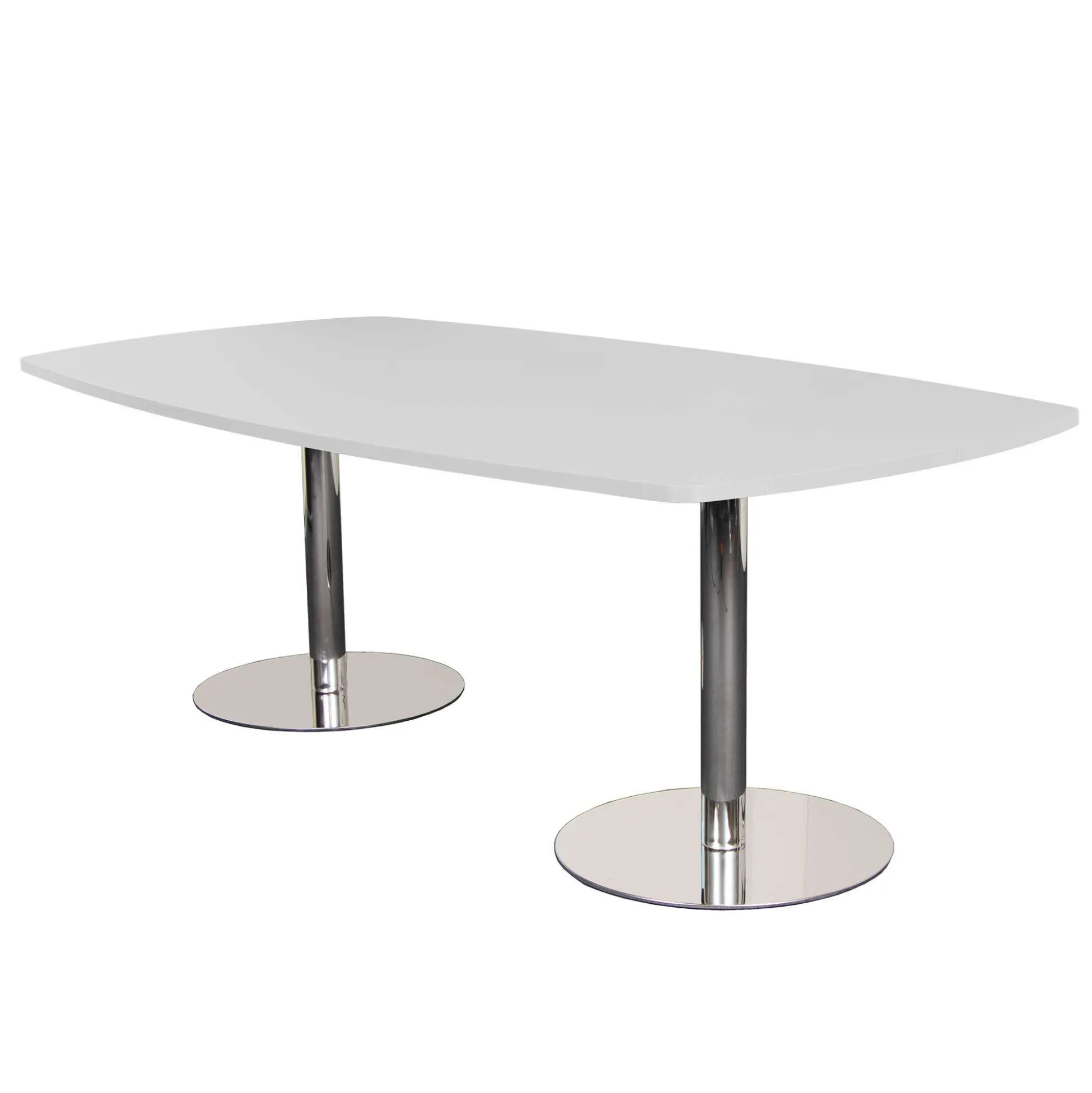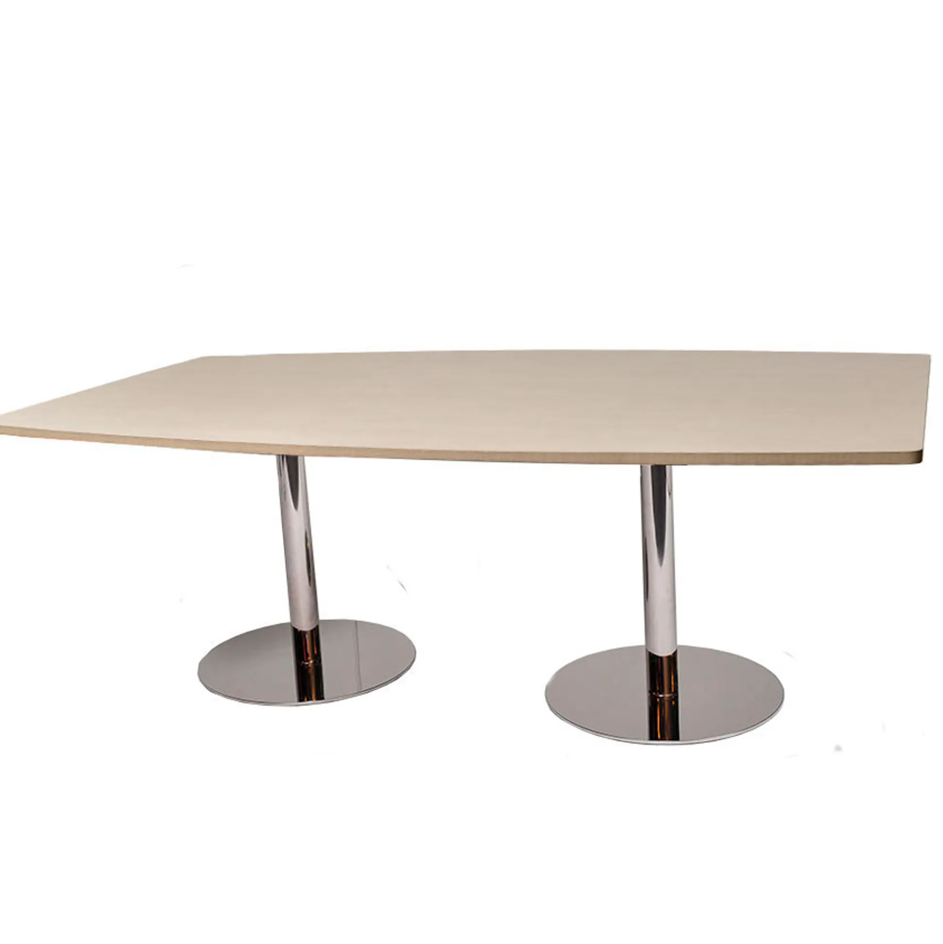 Van Doren mødebord er i et flot og enkelt design med flotte blanke søjler. Bordpladen er med let buet bordplade og beklædt med slidstærk decor laminat. Denne udgave af Van Doren mødebordet har flotte blanke søjler, og står meget stabilt på søjlebenene.