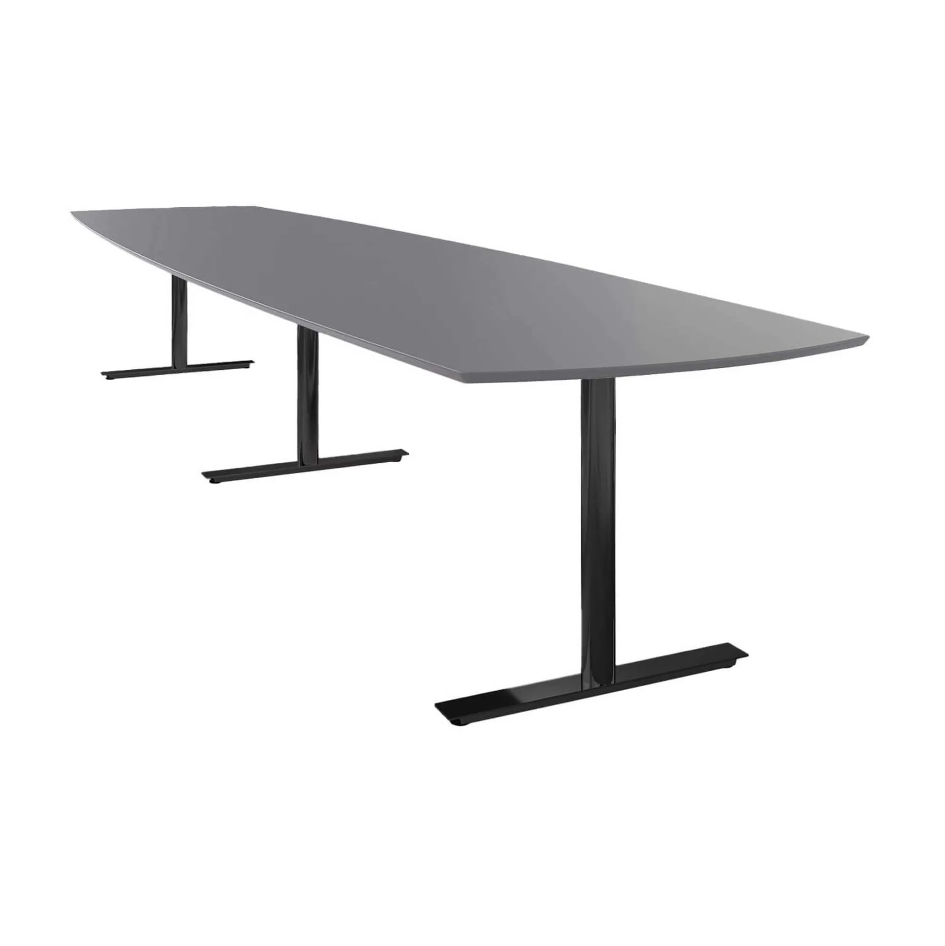 XO Line er et rigtigt flot og eksklusivt mødebord eller konferencebord. Bordet er med bådformet bordplade i lækker linoleum med affasede kanter. Kendetegnet for vores XO Line borde er stellet med de sorte runde søjler og rektangulære fødder. Dette konferencebord måler 90/110 x 360 cm. og har en højde på 72 cm. Bordpladen er i lækker linoleum, som giver bordet en utrolig lækker overflade og er meget behageligt at arbejde på. Det anbefales at vedligeholde linoleumspladen med linoleumssæbe for at bibeholde pladens udseende.