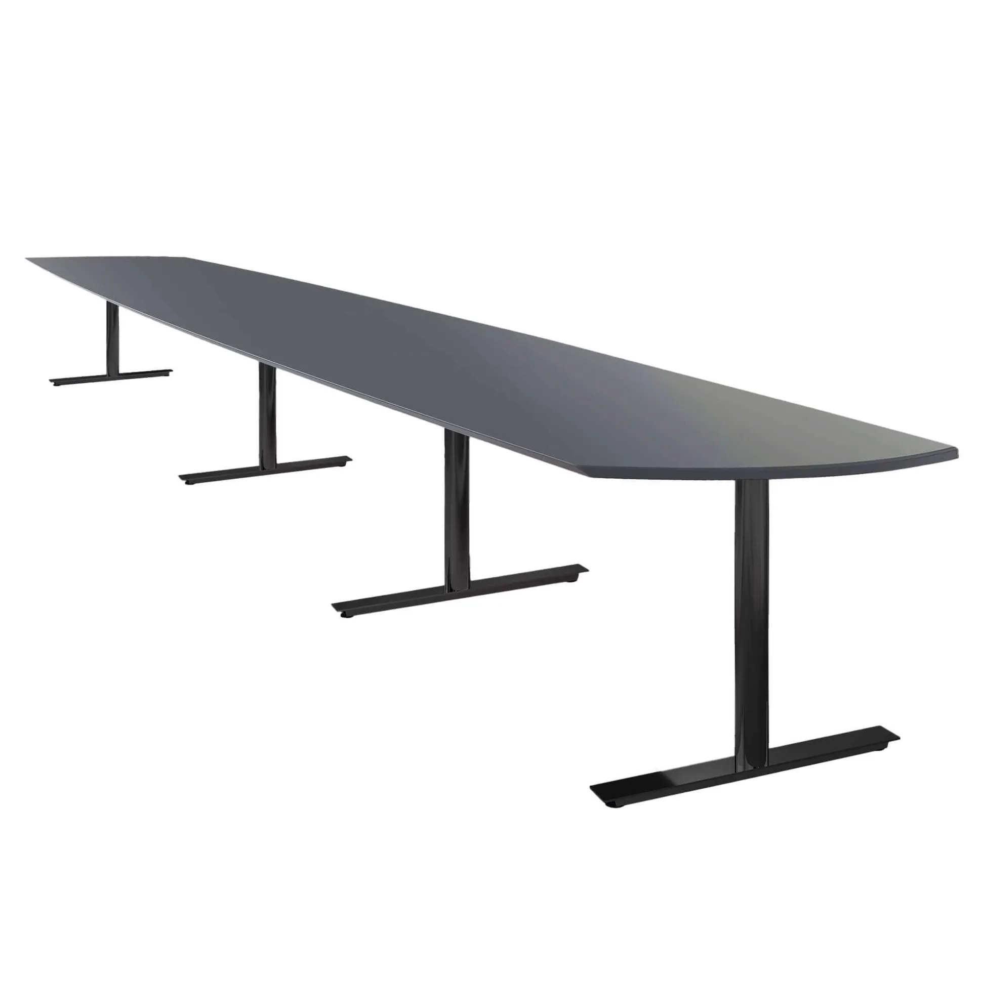 XO Line er et rigtigt flot og eksklusivt mødebord eller konferencebord. Bordet er med bådformet bordplade i lækker linoleum med affasede kanter. Kendetegnet for vores XO Line borde er stellet med de sorte slanke søjler i blank krom og rektangulære fødder. Dette konferencebord måler 90/110 x 640 cm. og har en højde på 72 cm. Bordpladen er i lækker linoleum, som giver bordet en utrolig lækker overflade og er meget behageligt at arbejde på. Det anbefales at vedligeholde linoleumspladen med linoleumssæbe for at bibeholde pladens udseende.