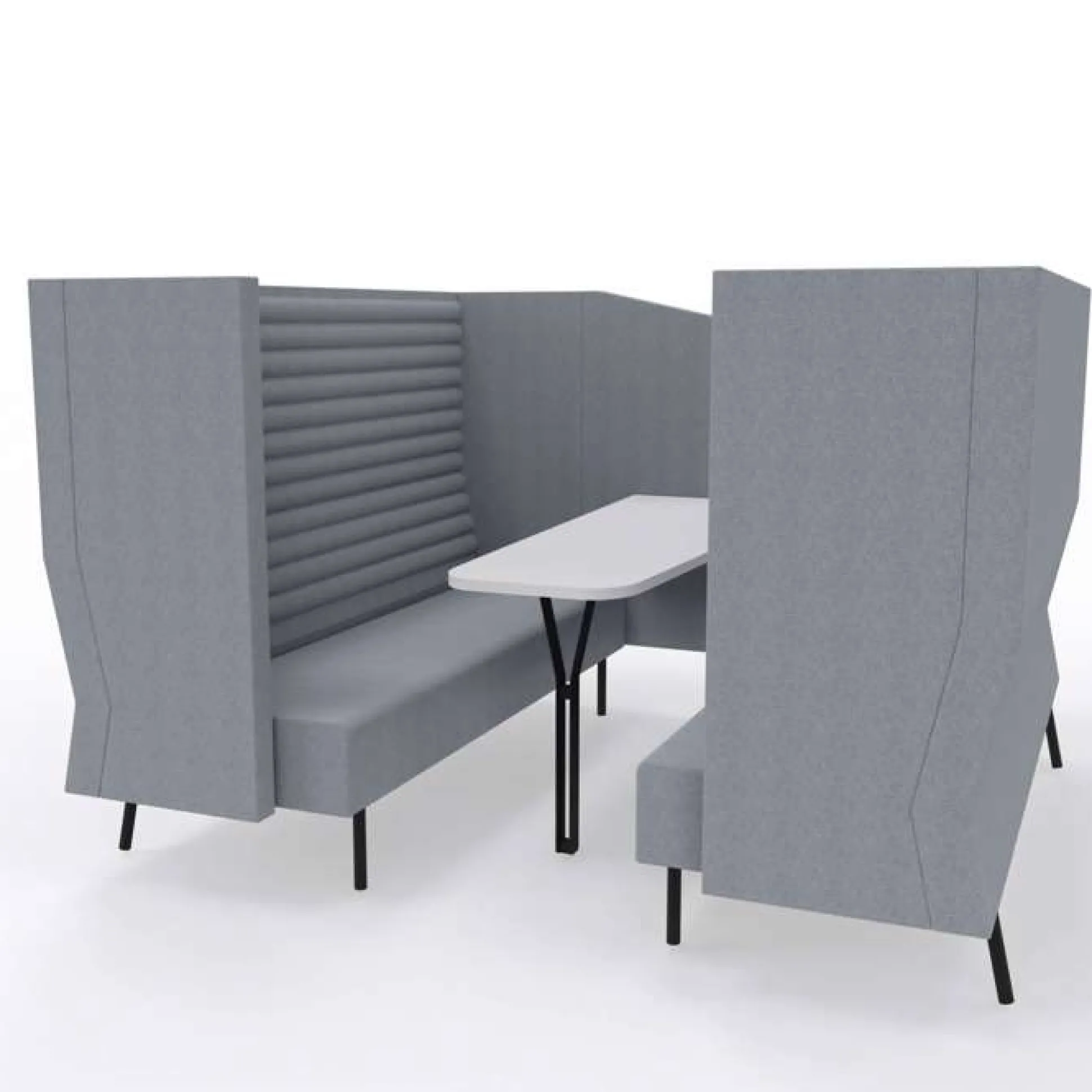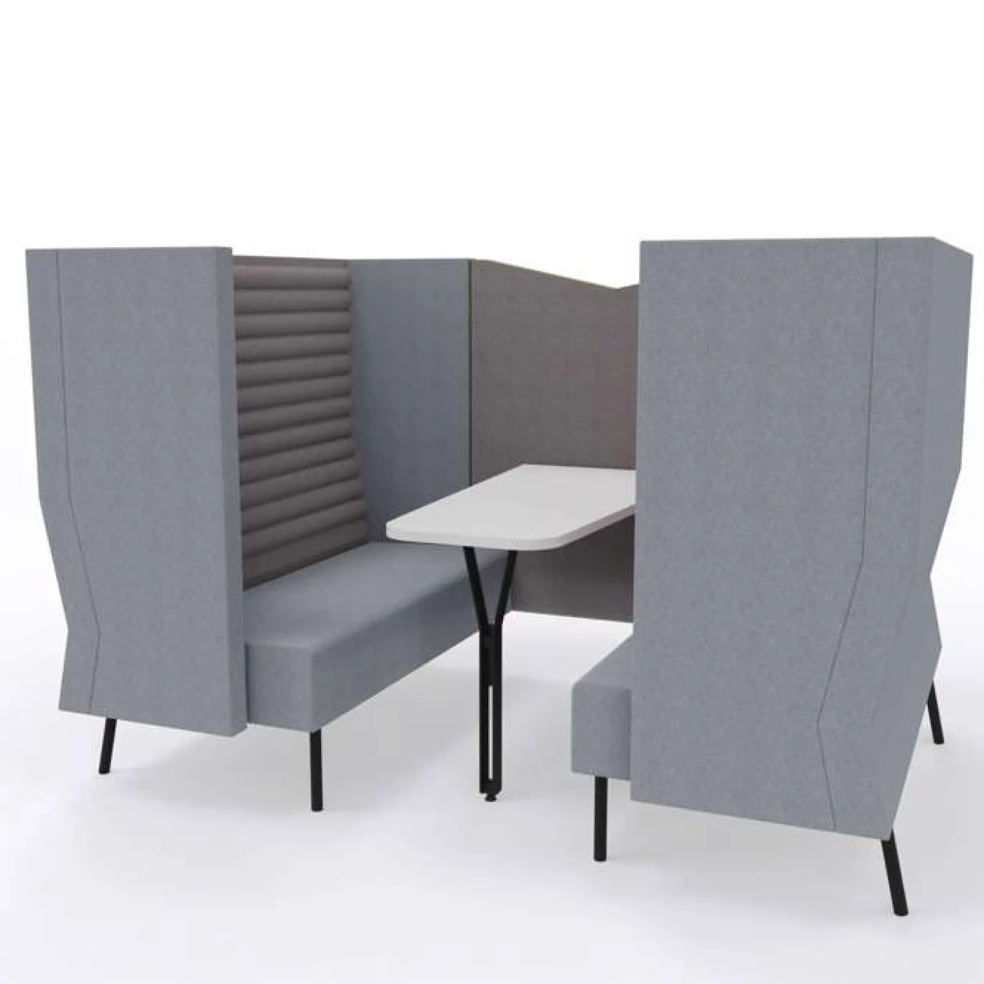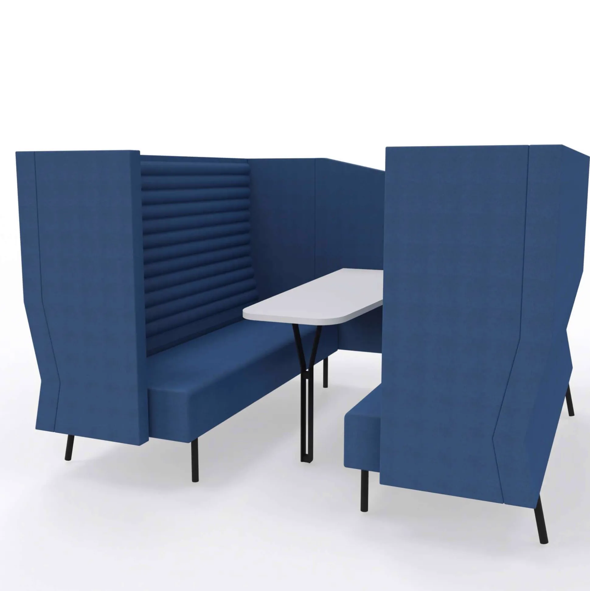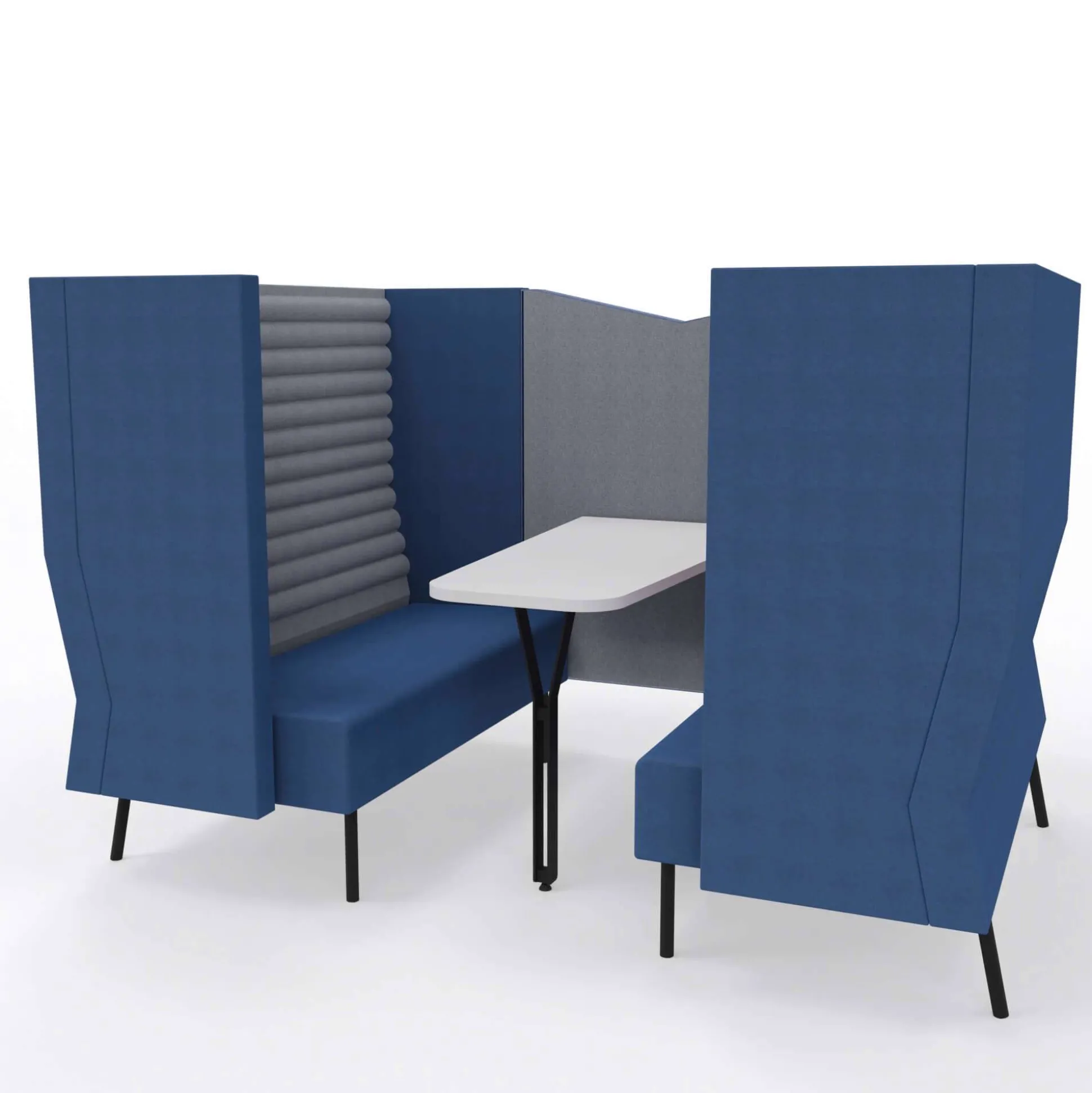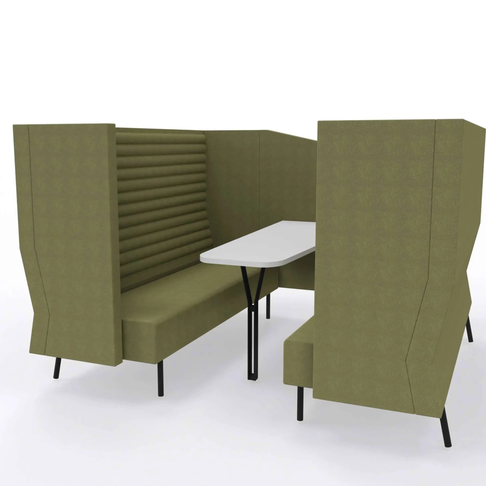 Wave møderum er en del af en serie af sofaer med ekstra fokus på afskærmning og ro. Med forskellige højde på ryggen kan man med Wave serien møblere et lokale med møderum og sofaer som passer sammen.