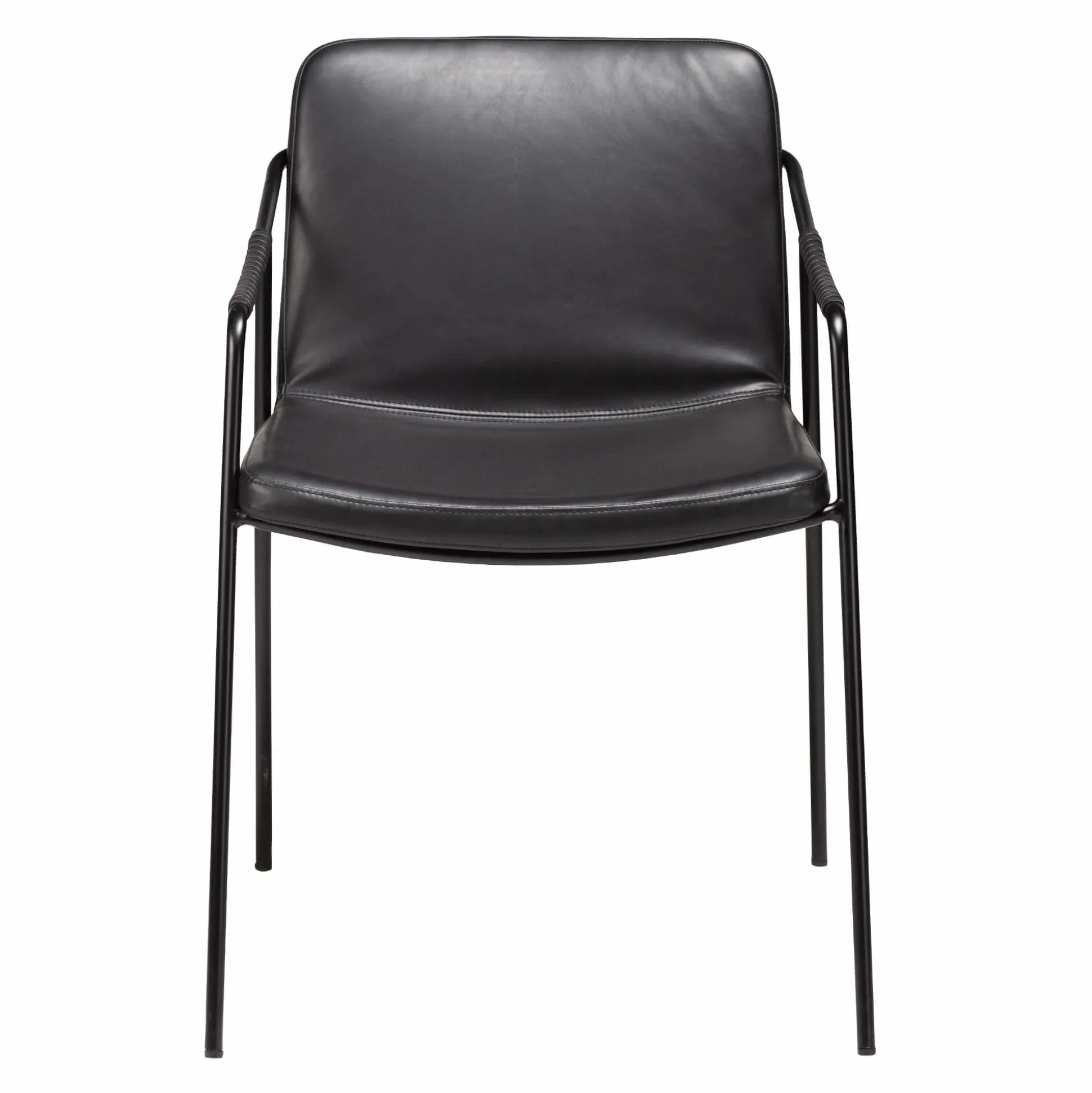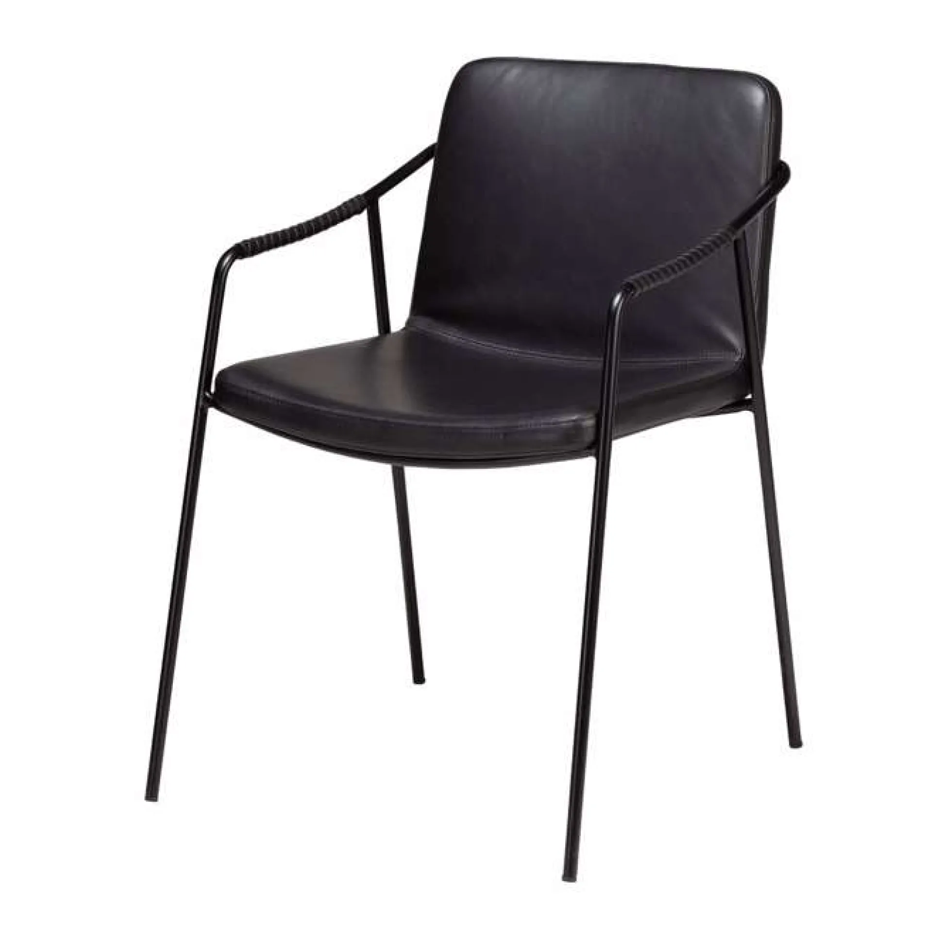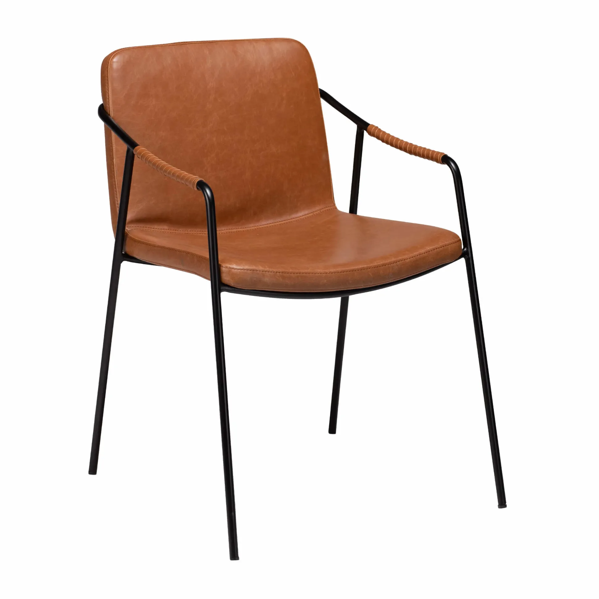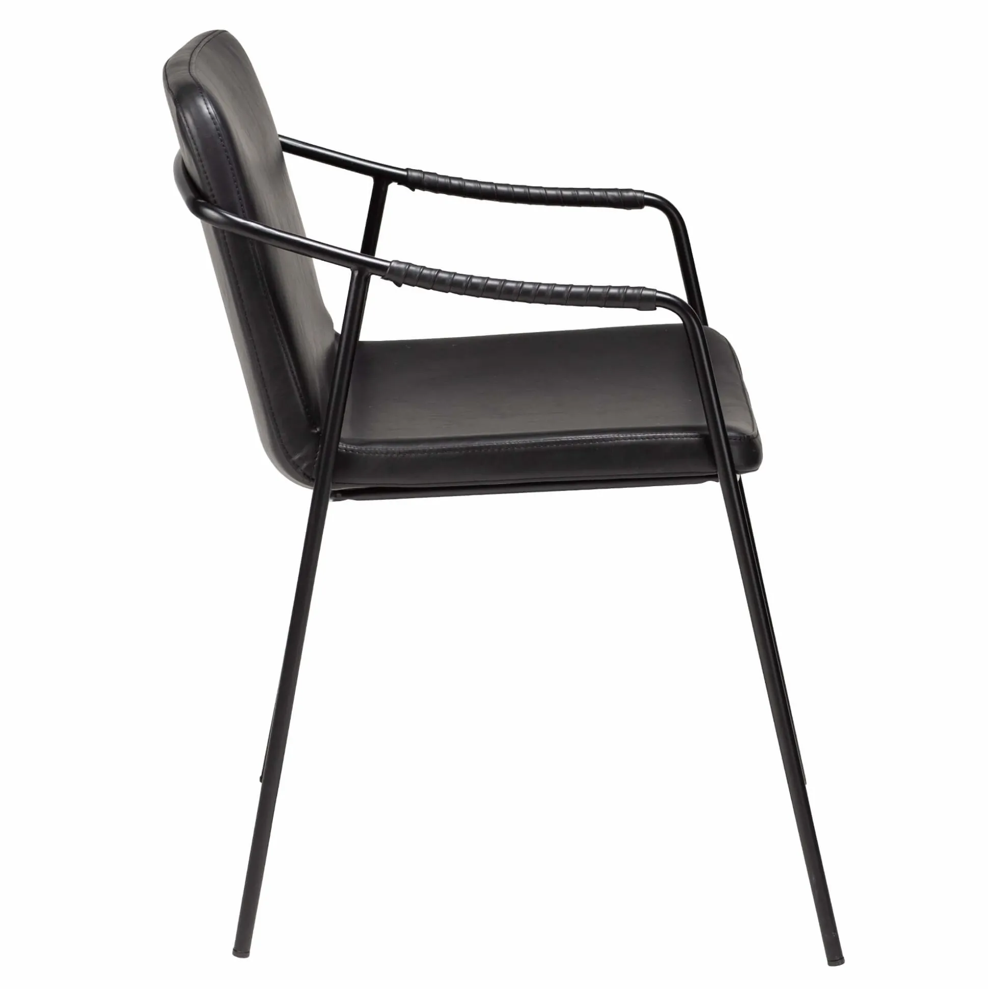 Stolen har en blød polstret ryg, samt sæde i lækkert kunstlæder, som gør den nem at rengøre med en fugtig klud. Stellet er helsvejst, hvilket betyder at det er en yderst stabilt stol. Læderindpakning omkring armlænene er en dekorativ detalje, der løfter designet og giver stolen det helt rigtige udtryk.
