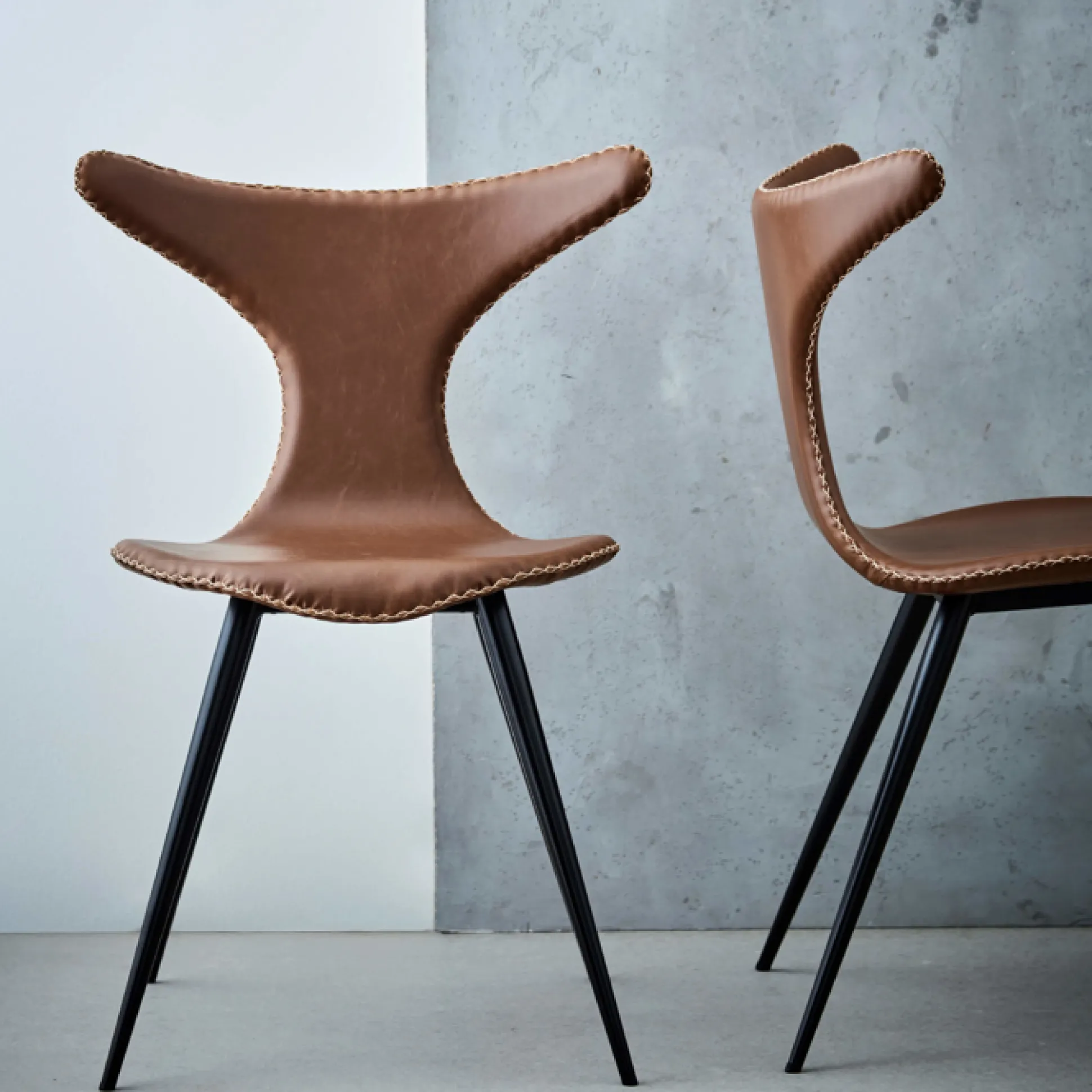 Stolen har en smuk finish med håndsyede korssting rundt om kanterne, hvilket giver Dolphin stolen det helt rigtige udtryk.