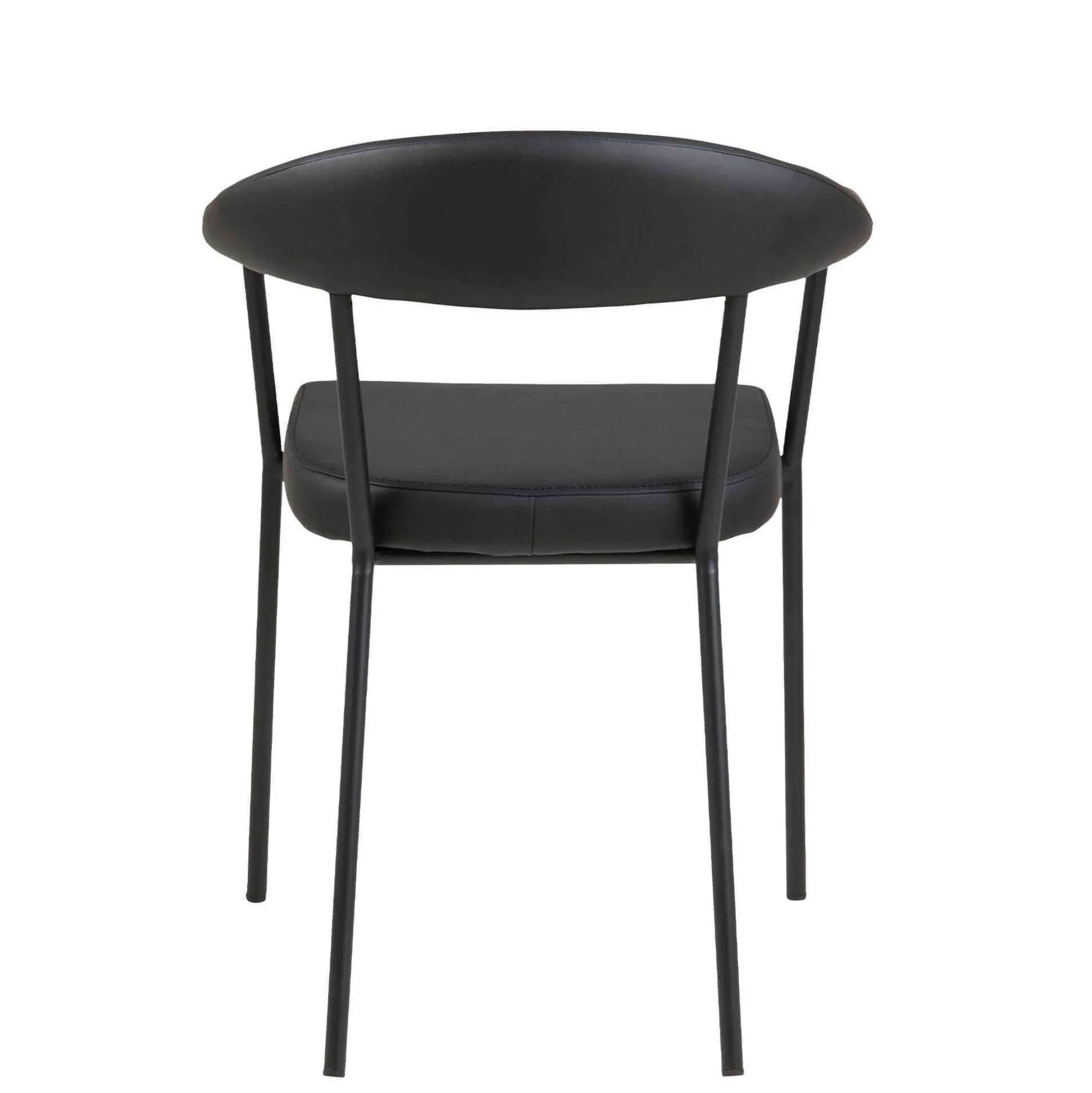 Stolen Marbella har et komfortabelt sæde med en tyk polster i sort kunstlæder samt polstret ryg og armlæn.