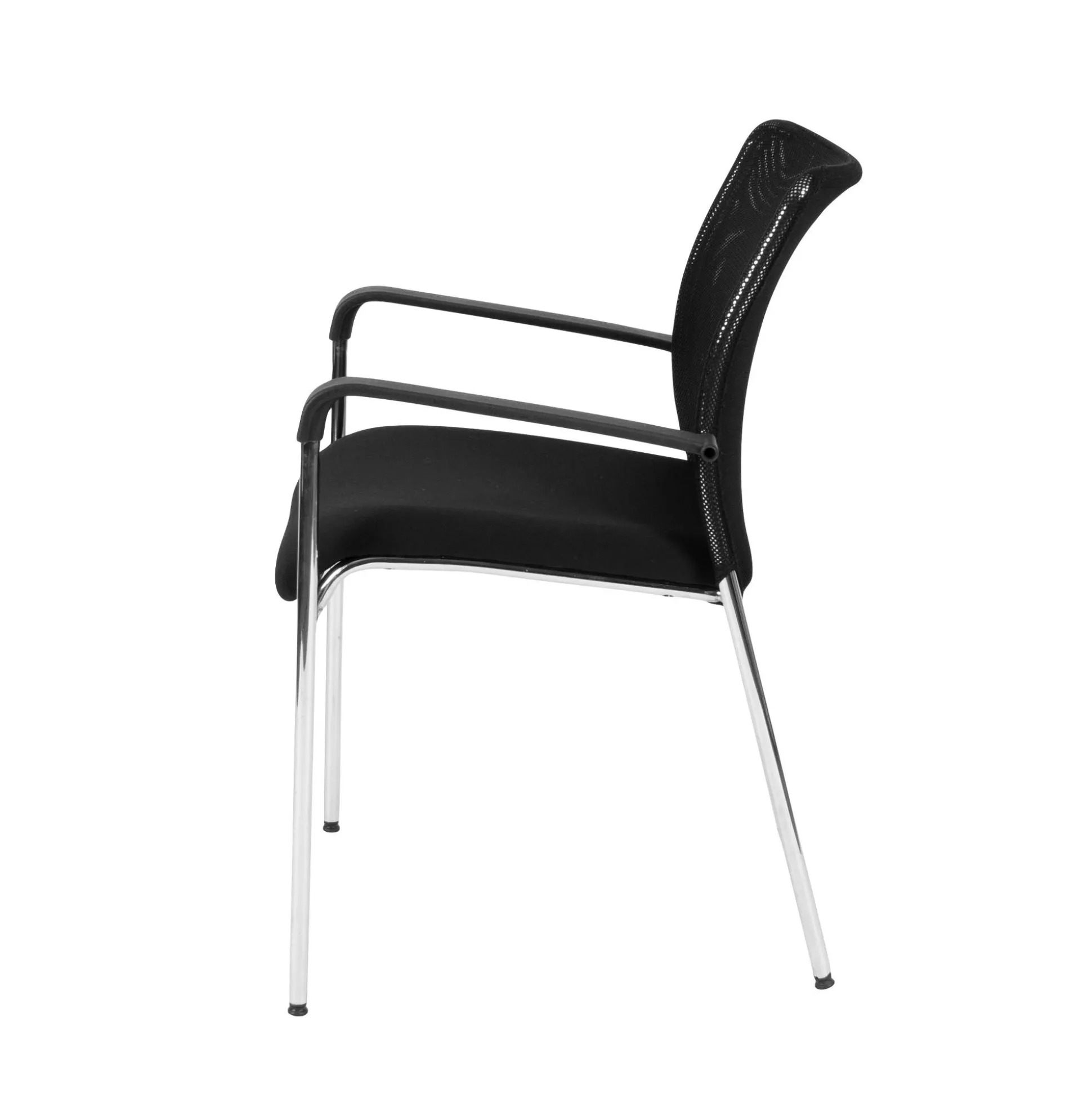Volta mødestol kombinerer enkelhed og elegance med sit blanke stel og moderne design. Ryggen er fremstillet i åndbart net, mens sædet har en blødt, tykpolstret overflade i sort stof, der sikrer optimal siddekomfort.