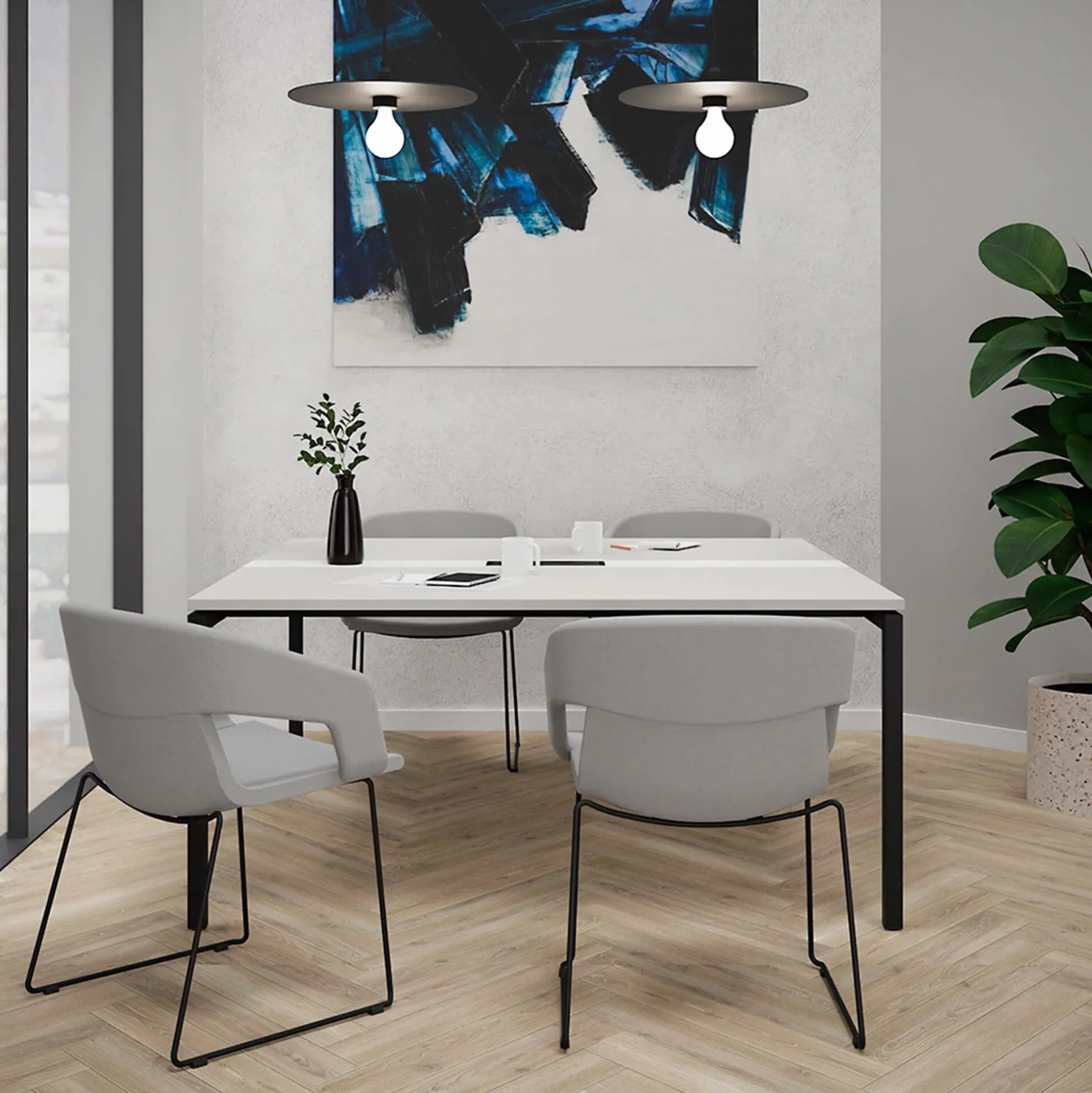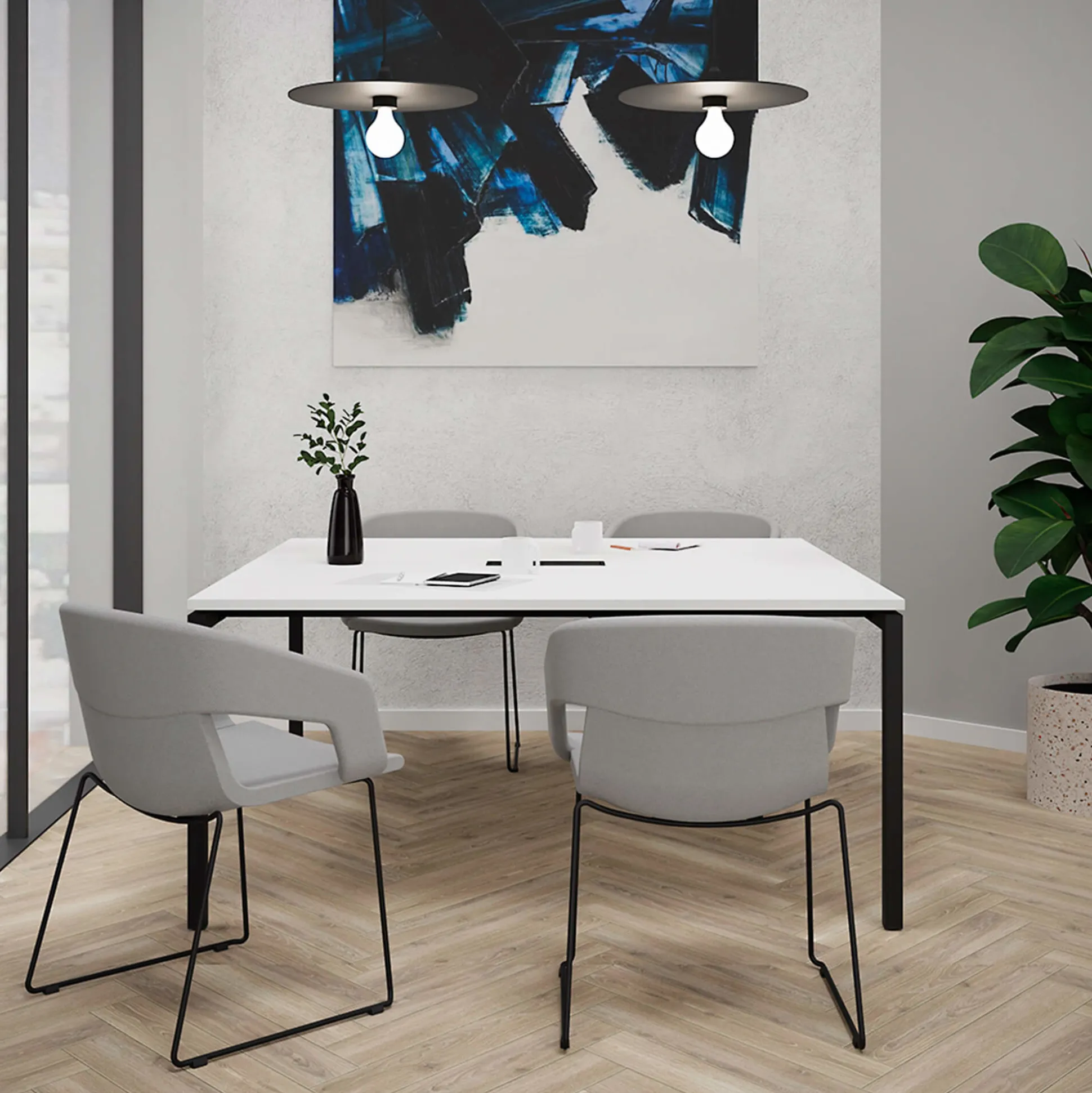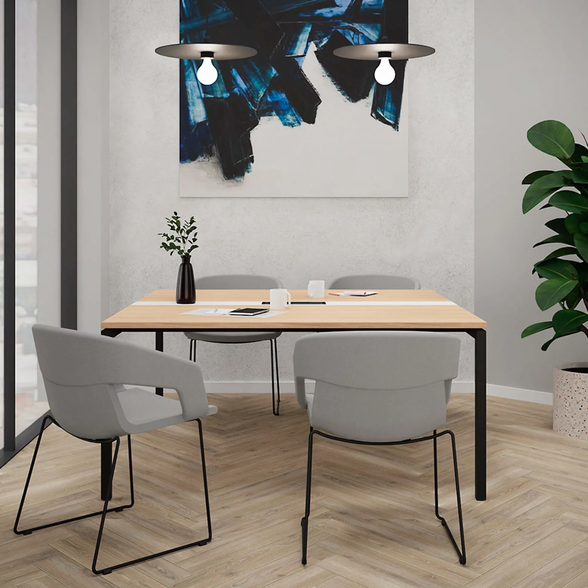 Monik konferencebord er et stilrent bord med en slidstærk bordplade i decor laminat og sort stel. Bordet er perfekt til de fleste konference- og mødelokaler.
