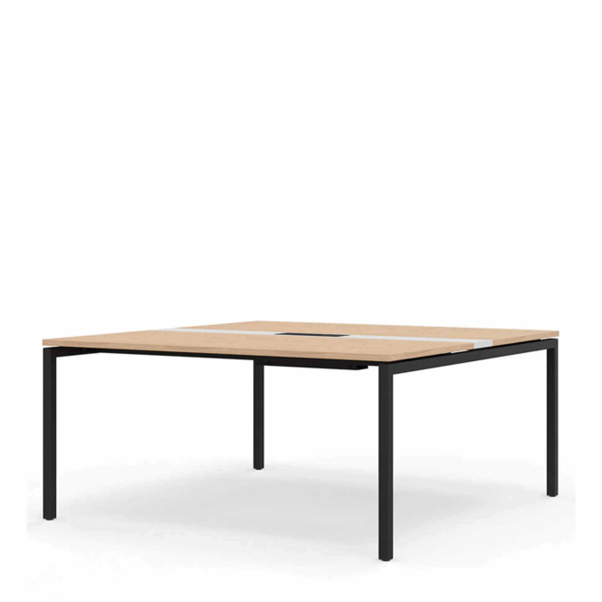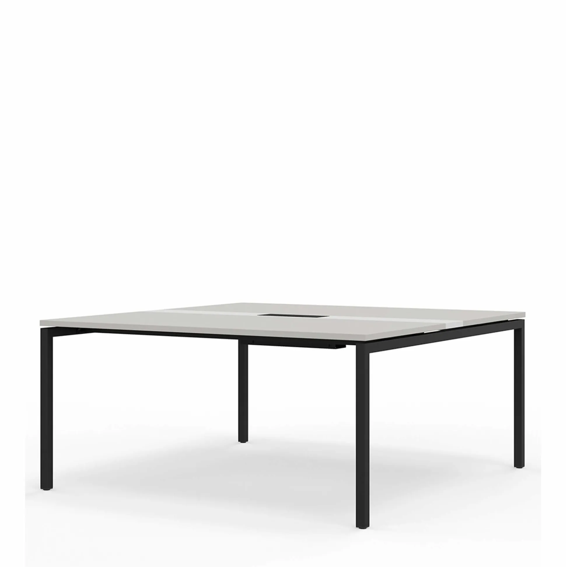 Med sort stel fåes bordpladen i hvid, eg og lysegrå.