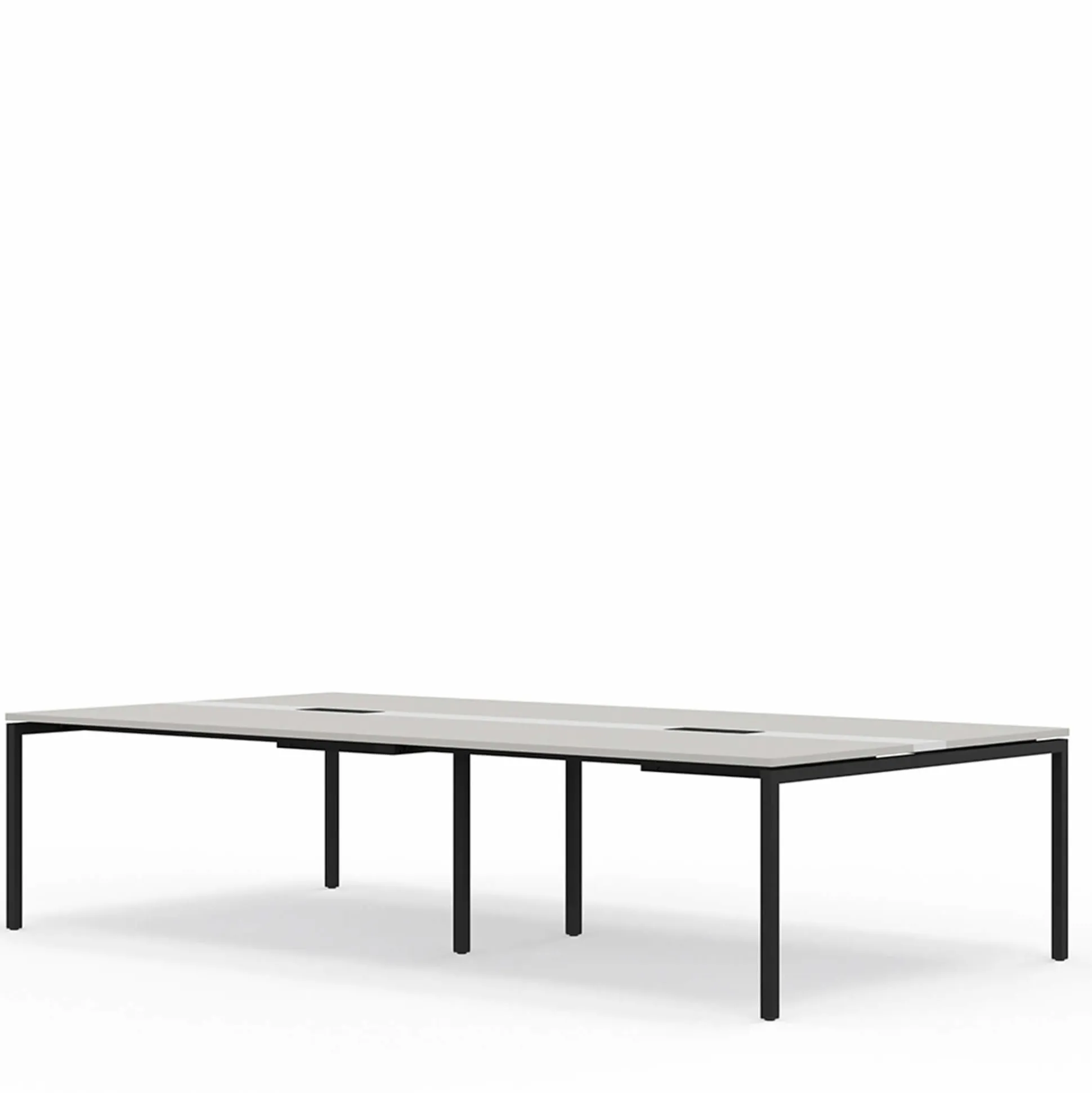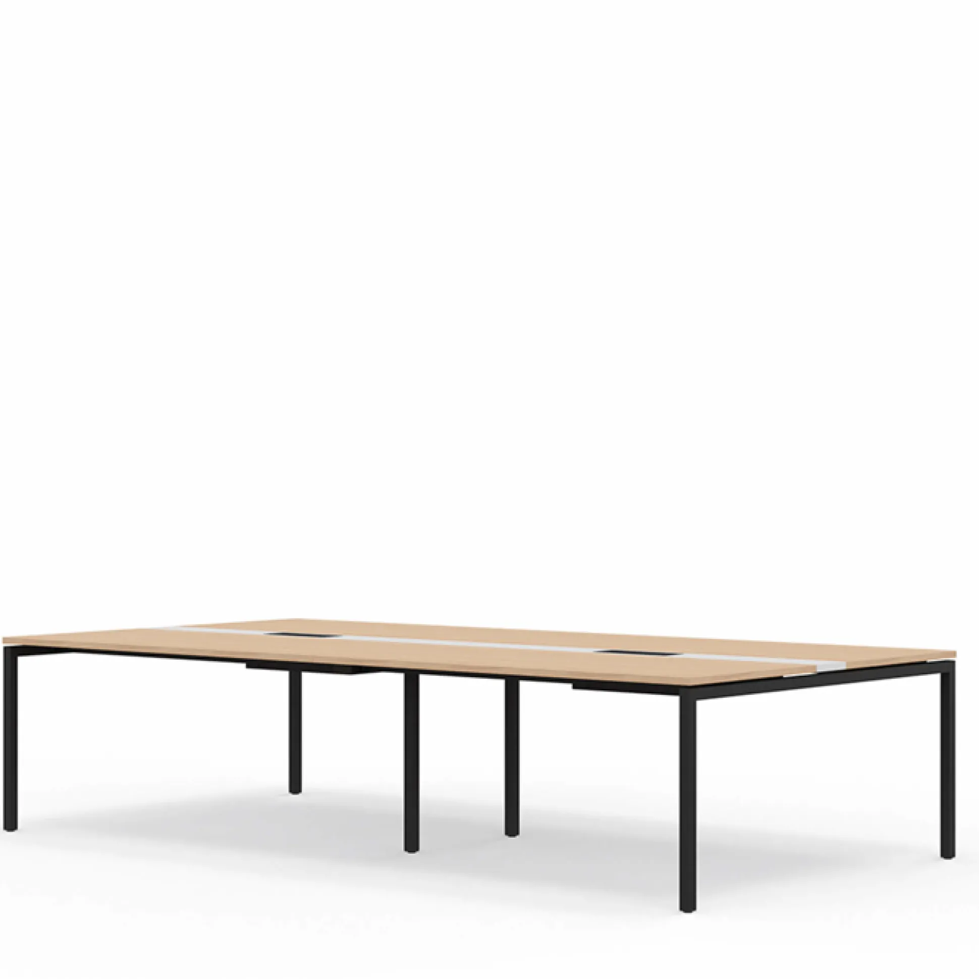 Dette bord er også udstyret med to kabelklapper og en kabelbakke, i samme farve som stellet.