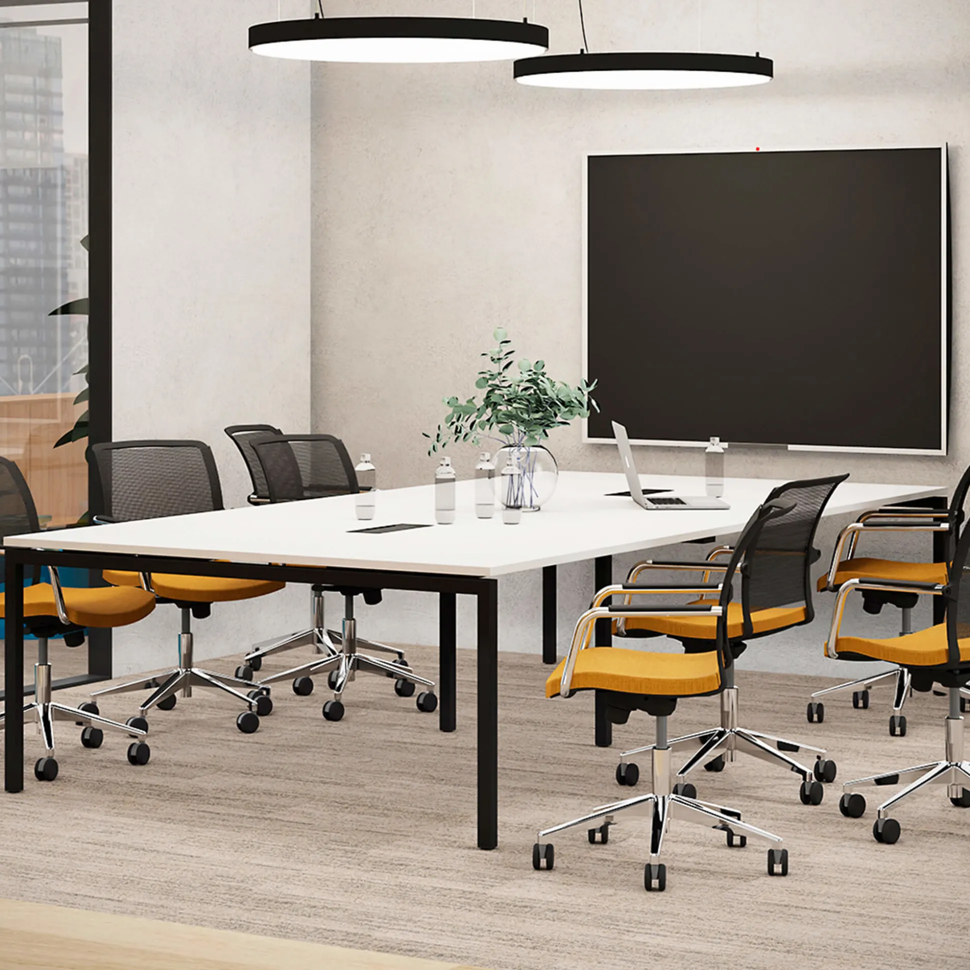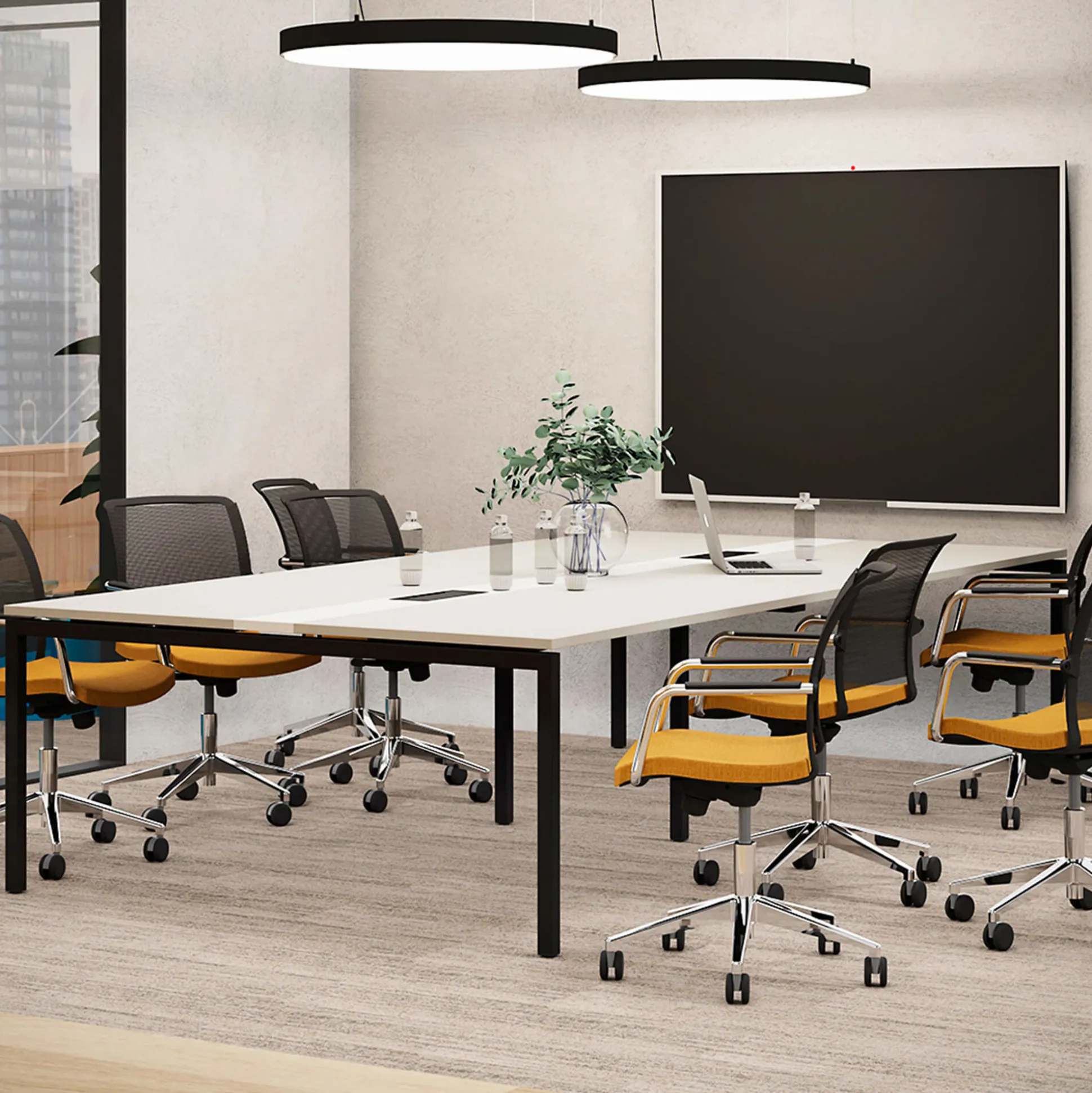 Monik konferencebord er et stilrent bord med en slidstærk bordplade i decor laminat og sort stel. Bordet er perfekt til de store konference- og mødelokaler.