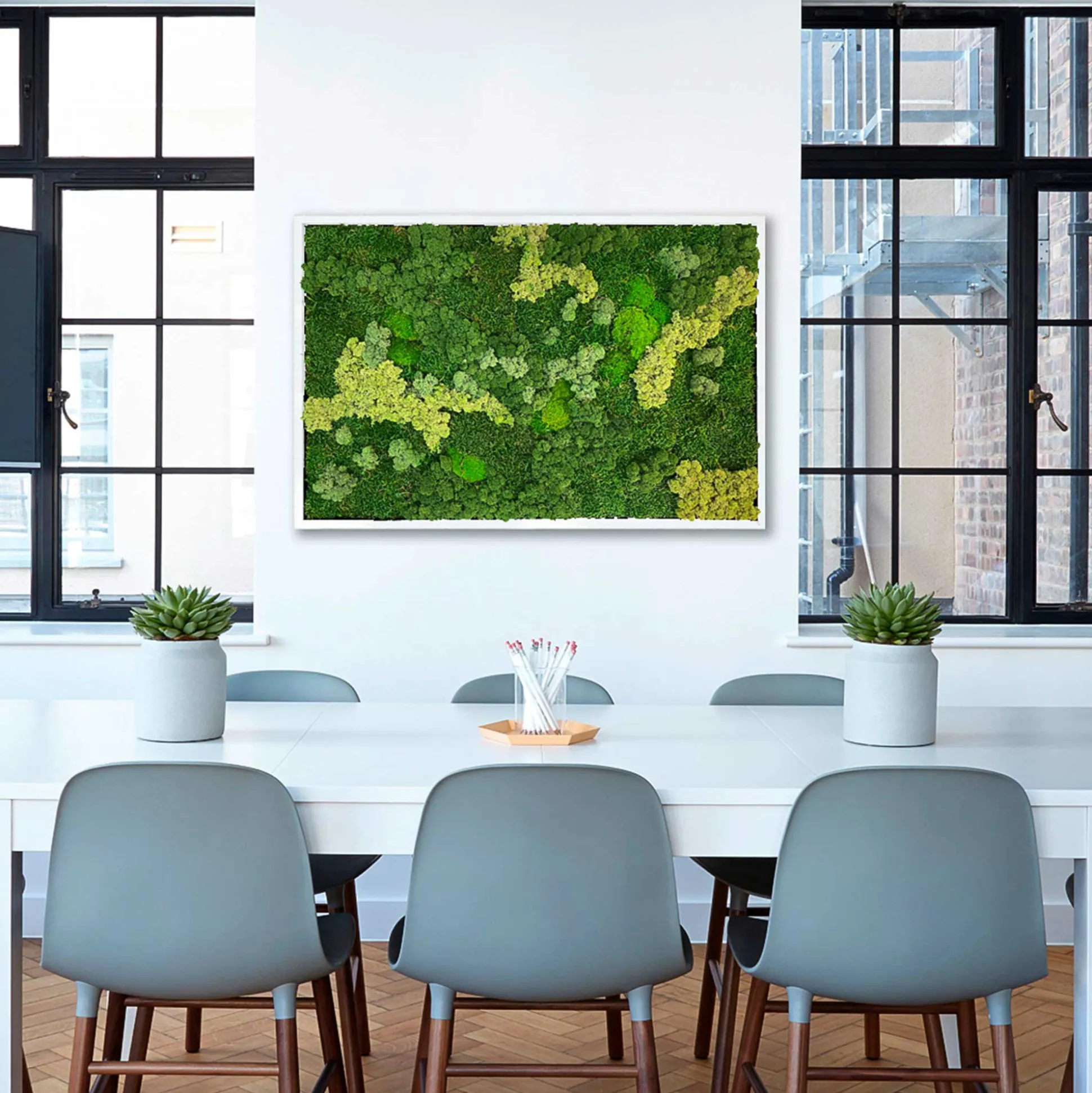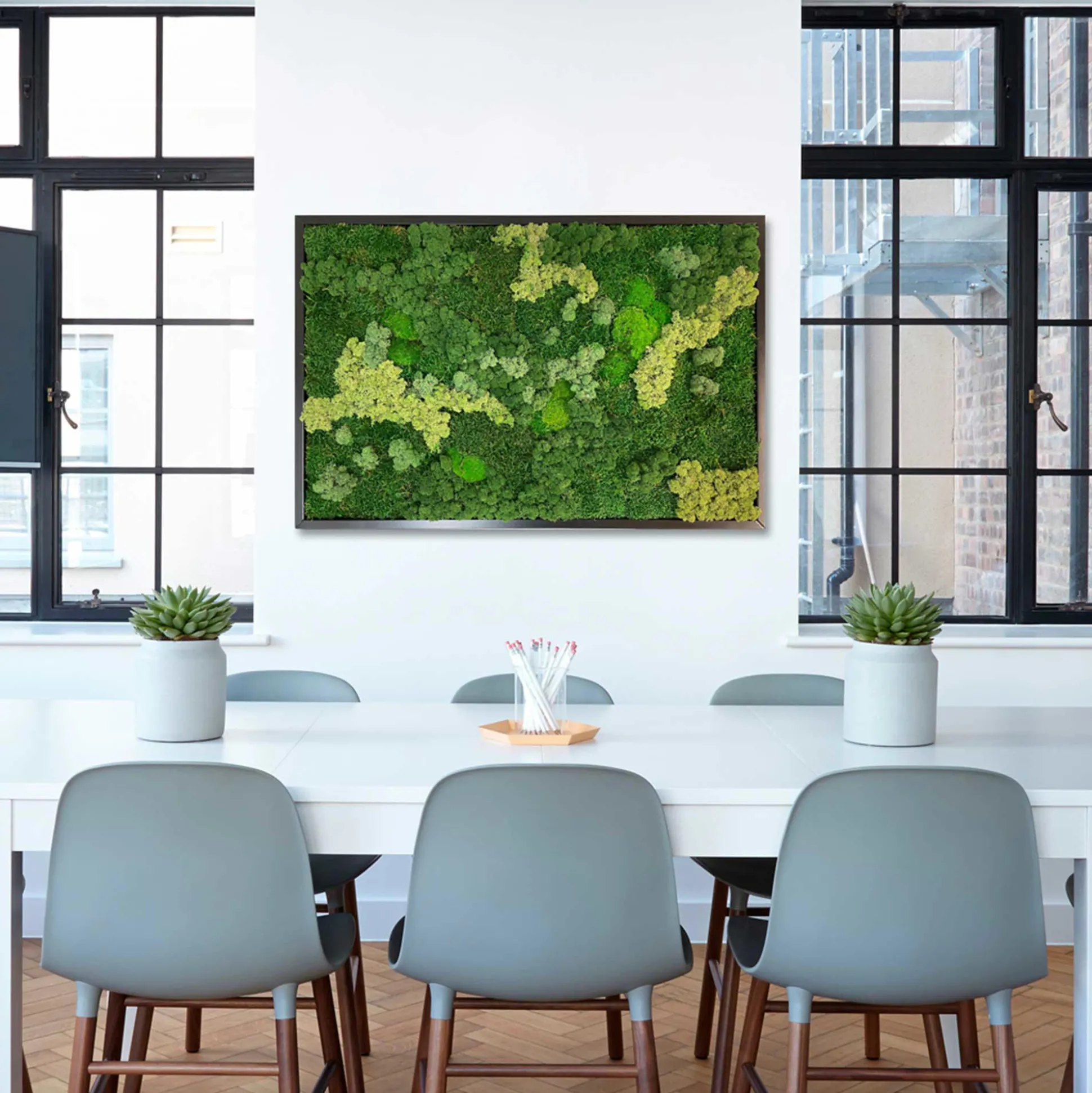 Det smukke mosbillede består af rensdyrmos, fladmos og en smule pudemos, og er en fantastisk måde at bringe naturen ind i dit hjem eller på kontoret.