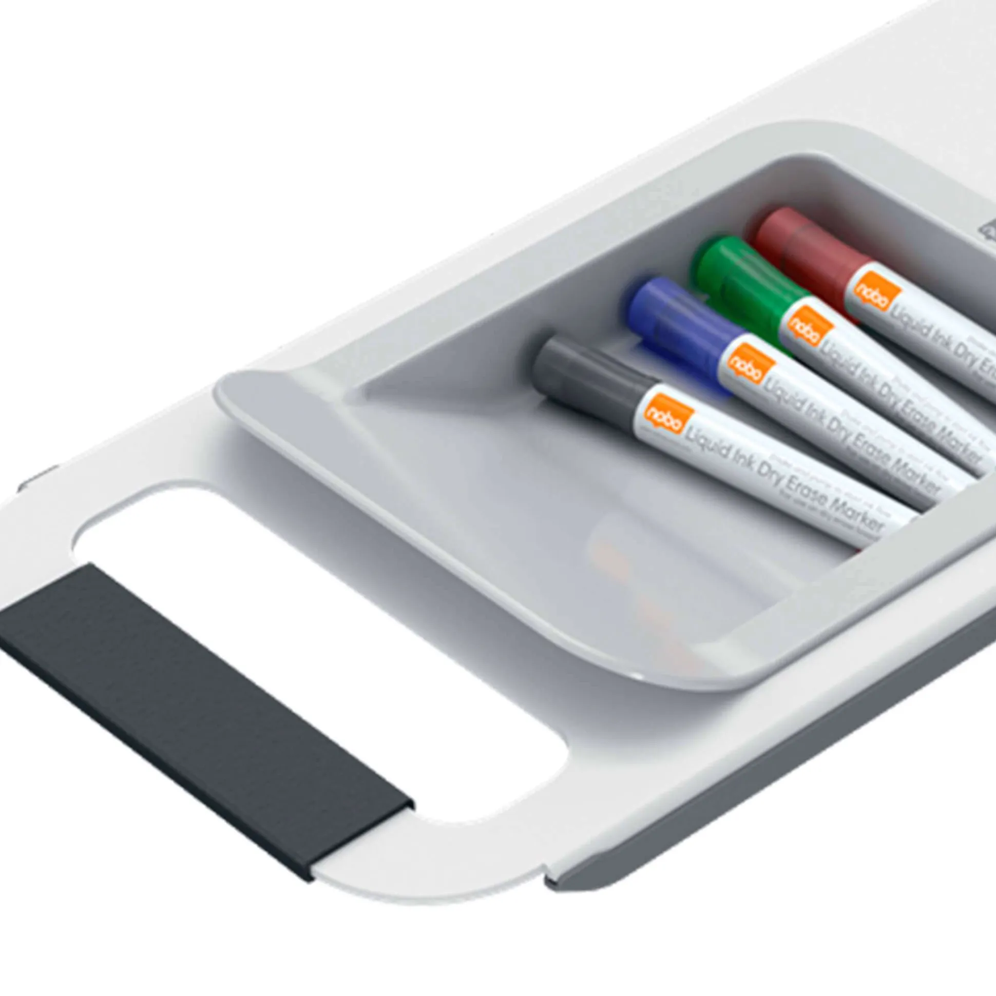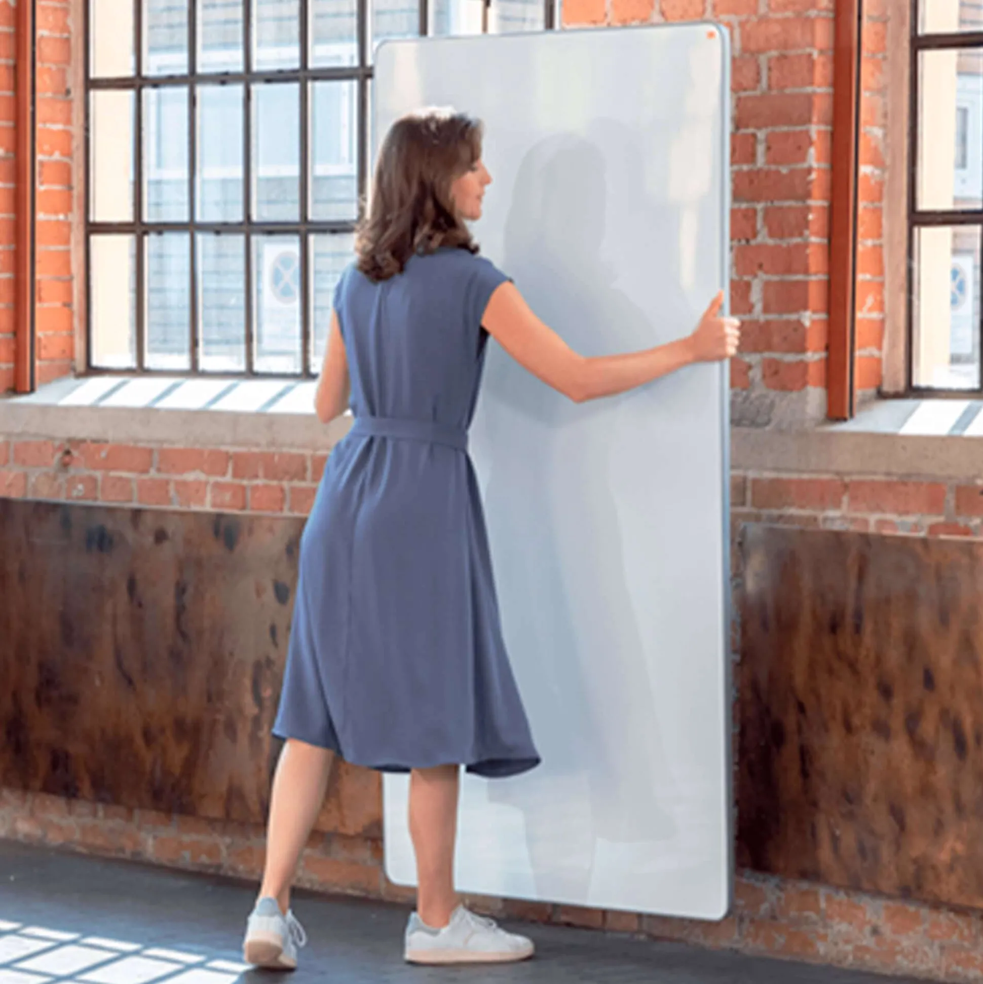 Dette mobile system er ideel til ethvert arbejdsrum med kreative ideer og projekter. Bestående af den mobile base og 2 aftagelige dobbeltsidede whiteboards. Det er muligt at opnå fuld fleksibilitet med en whiteboardtavlen fra MoveMeet. De skridsikre hjul og buede kanter, gør det nemt at transportere whiteboardtavlen rundt, i ethvert arbejdsrum. Der følger 2 aftagelige pennebakker med til opslagstavlen. Hver tavle kan tages af “vognen”. En vogn med 4 tavler, hvor der også er opslagstavle til nåle findes under “Andre har også købt”