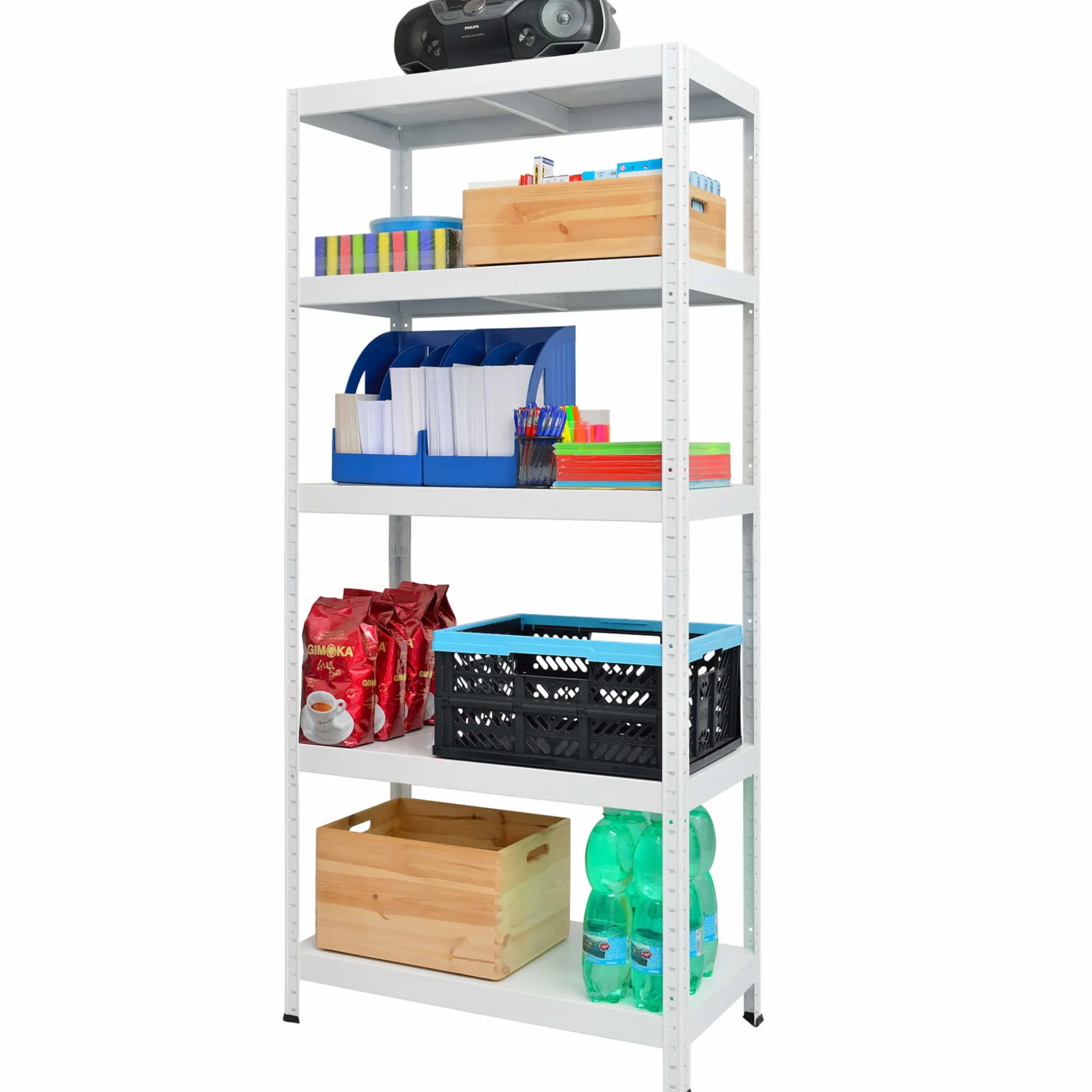 Multifix stålreol 180h x 90b x 40d, hvid. Belastning: 100 kg pr. hylde, jævnt fordelt. Med 5 flytbare stålhylder. Samles uden bolte og møtrikker. Du skal bare slå den sammen med en gummihammer, det er nemt. Ideel til varer i butikker, kiosker eller lignende. Enten i selve butikken eller på lageret.
