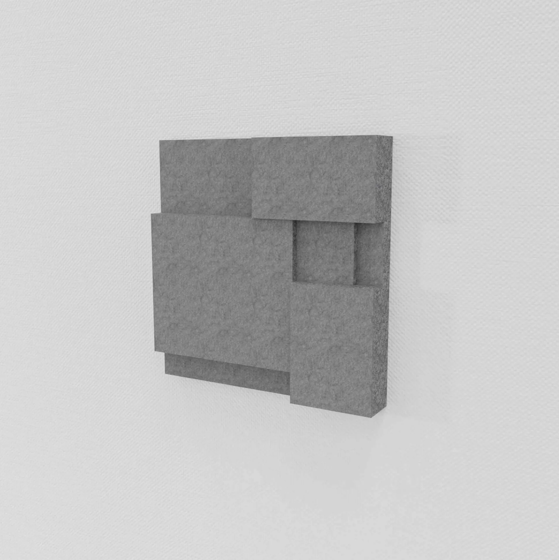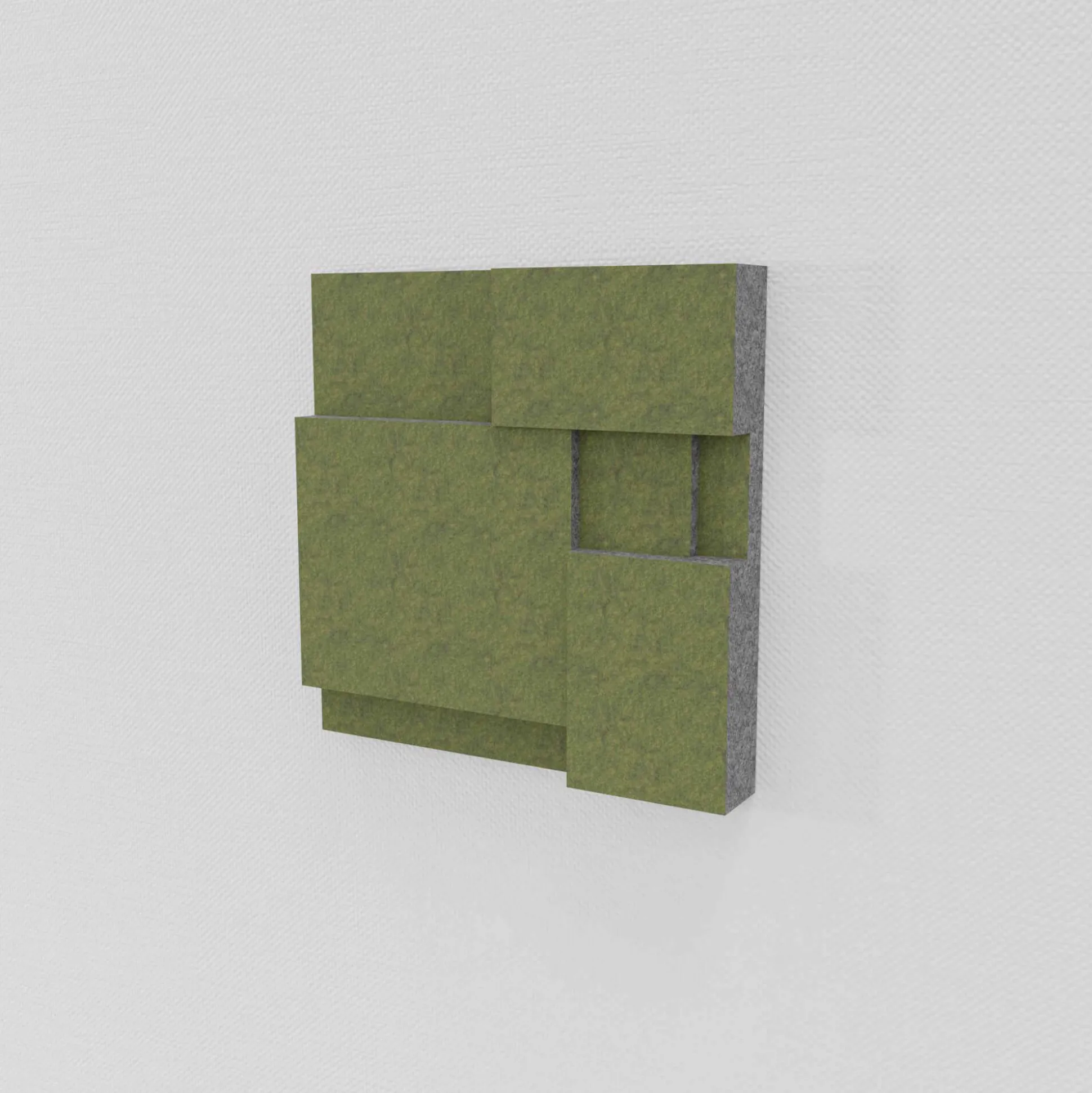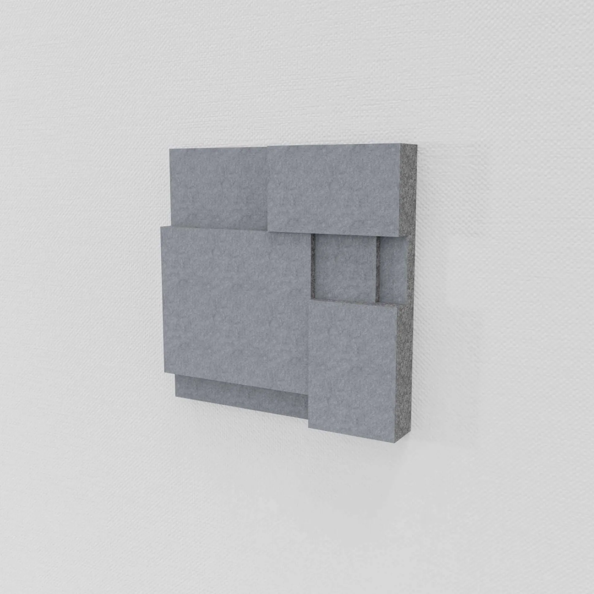 Nivå forbedrer akustikken, og dets design gør det til noget særligt i ethvert rum. Panelerne kan varieres for at danne forskellige mønstre i forskellige farver, med eller uden tekstil, modellen her er beklædt med textil på fronten og en grå kerne. Nivå er fremstillet af det unikke EcoSUND kernemateriale. Absorbentets tykkelse spænder over overflader fra 30 til 80 mm i udskårne rektangulære og kvadratiske mønstre.