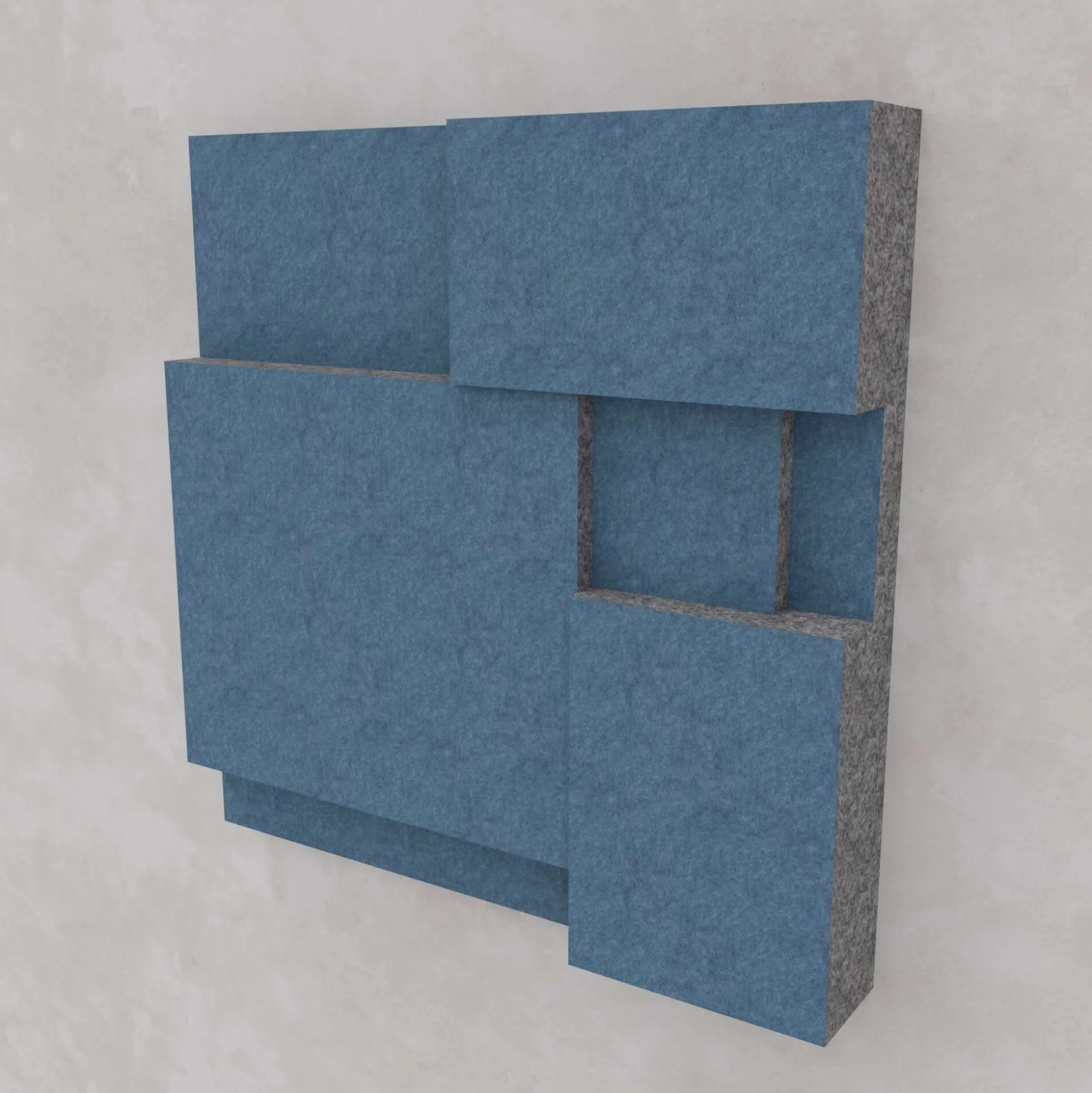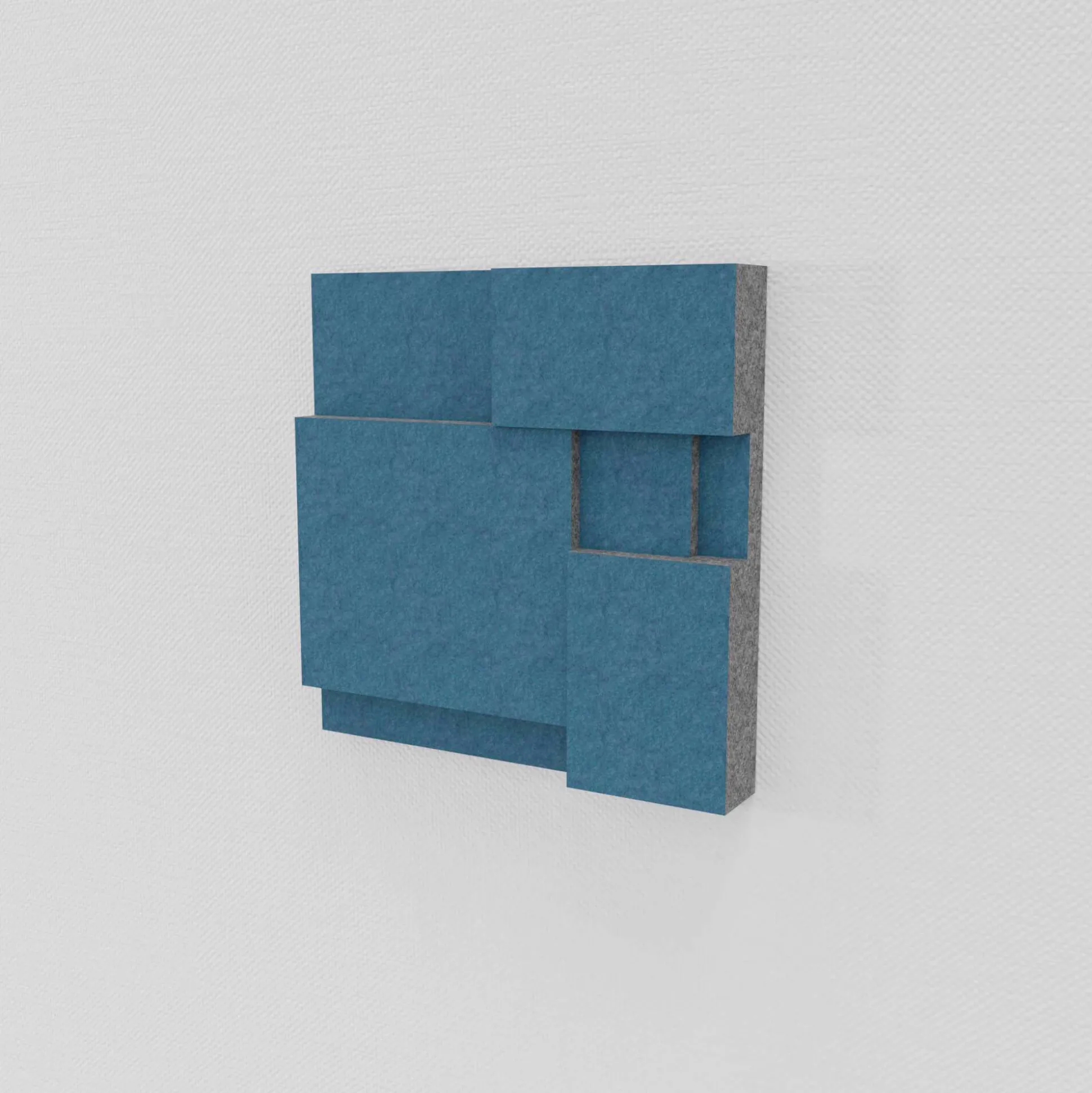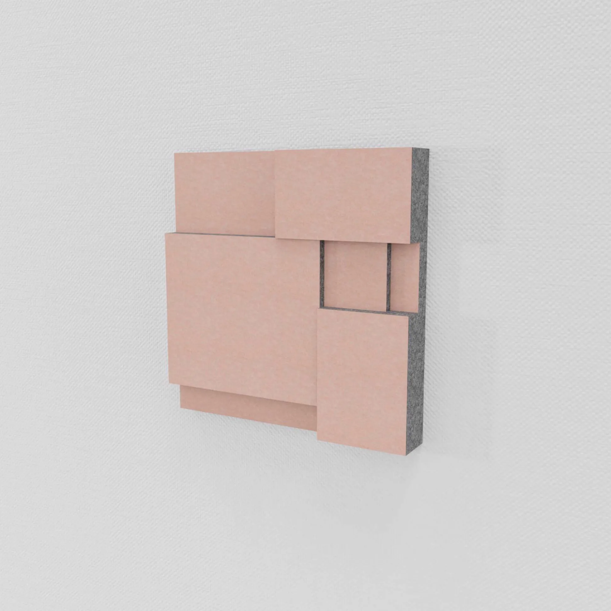 Nivå forbedrer akustikken, og dets design gør det til noget særligt i ethvert rum. Panelerne kan varieres for at danne forskellige mønstre i forskellige farver, med eller uden tekstil, modellen her er beklædt med textil på fronten og en grå kerne. Nivå er fremstillet af det unikke EcoSUND kernemateriale. Absorbentets tykkelse spænder over overflader fra 30 til 80 mm i udskårne rektangulære og kvadratiske mønstre.