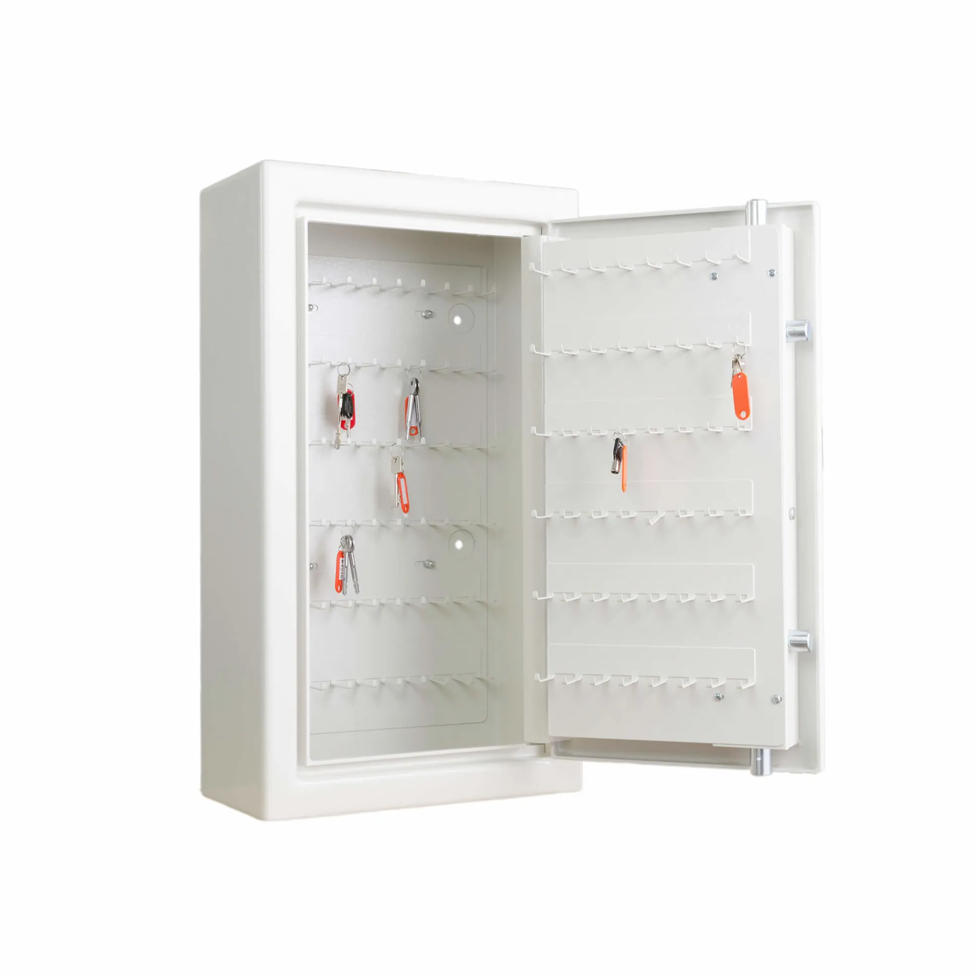 Profsafes certificerede SS3492 nøgleskab med 114 lange kroge. Skabet er til vægmontage med nøglelås og godkendelse SS3492 er accepteret af Forsikring og Pension (F&P)