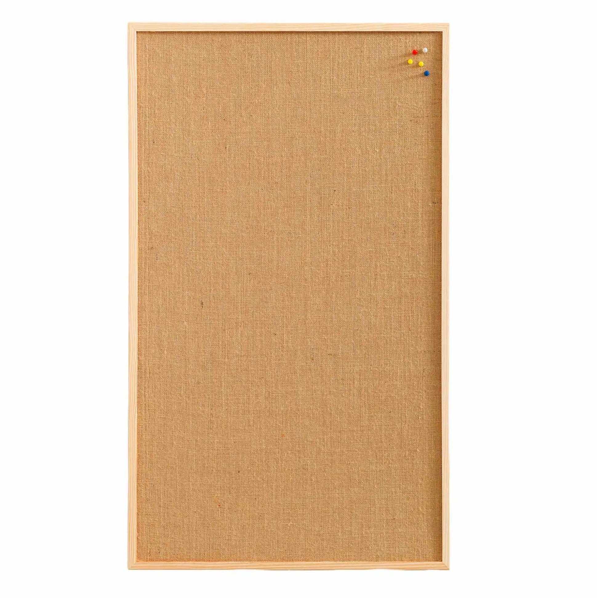 En smart og dekorativ opslagstavle med hessian stof og en flot træramme, der passer perfekt til kontoret eller hjemmet. Tavlen giver dig mulighed for at hænge kort, billeder, tørrede blomster, smykker og meget mere op med tegnestifter eller push-pins. Kun fantasien sætter grænserne for, hvad du kan hænge op på tavlen, og den kan placeres i ethvert rum – på kontoret, i soveværelset, entreen eller stuen.