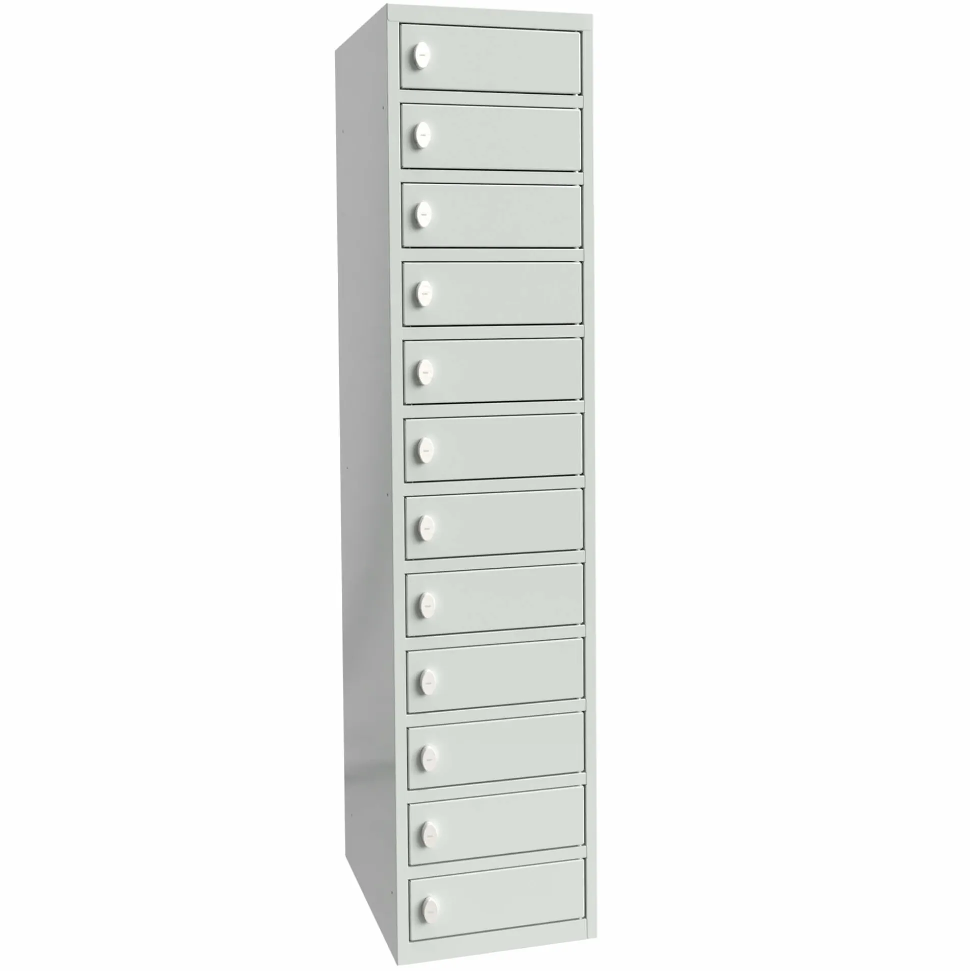 PC-skab til sikker opbevaring af bærbar computer, tablet, iPad og lign. Skabet leveres med 12 rum i højden – med opladning, schukostik. Ekskl. understel. Med greb for hængelås. Skabet kan stå på sokkel, ben eller væghænges. Se “Andre købte også”.