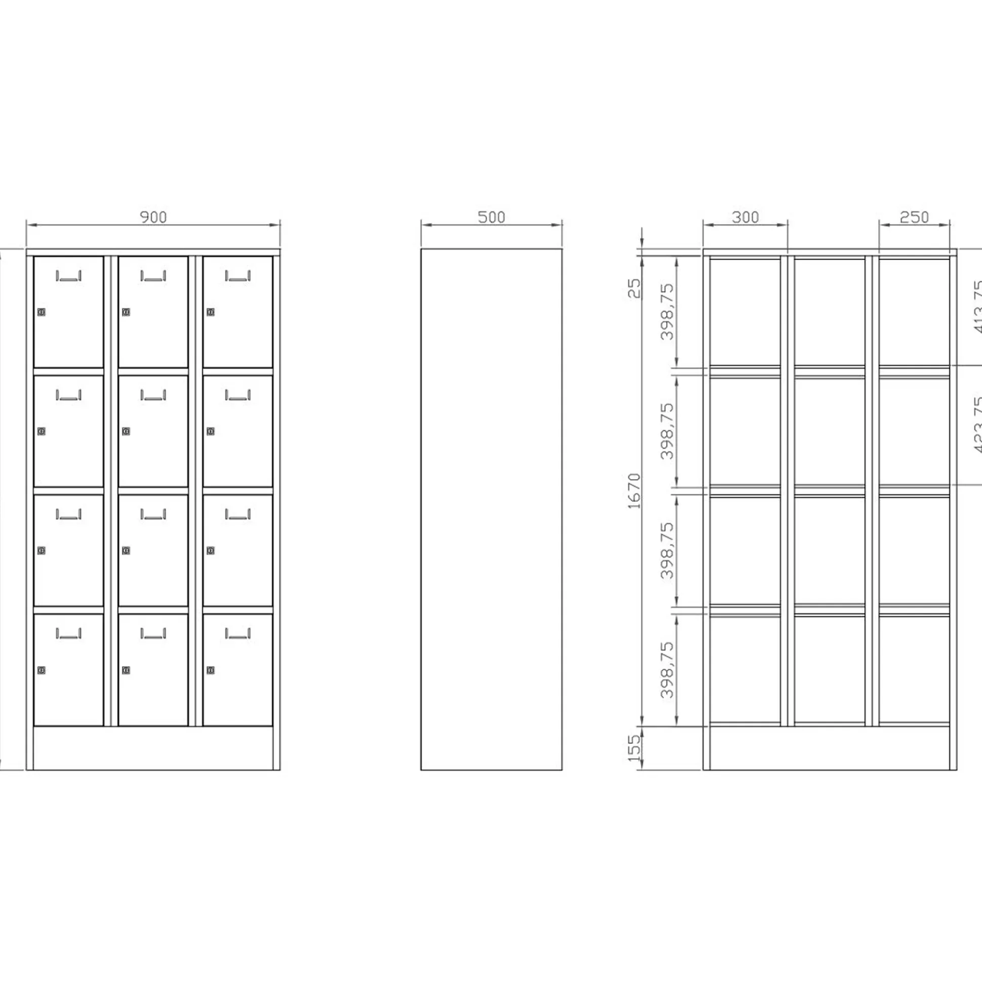 Personaleboks UniBox 3×4 rum. Lysegrå