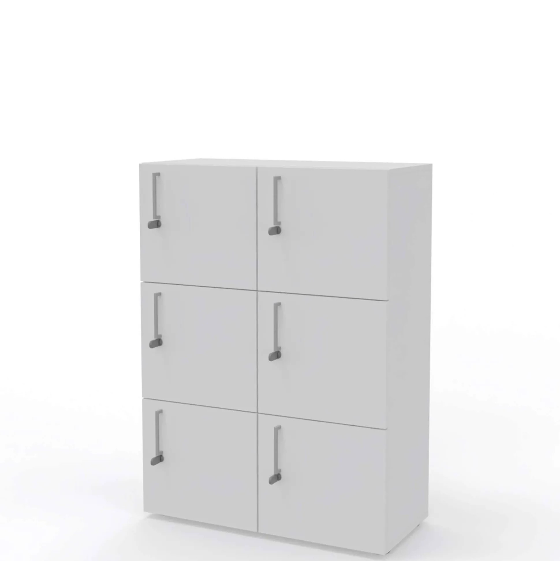 W-serien er lækre lockers til personalet, enten som personaleskabe til personlige ejendele eller som små omklædningsskabe. W-serien fås med 6 eller 8 rum. Skabet er lavet i slidstærk decor laminat og alle rum er inkl. lås.