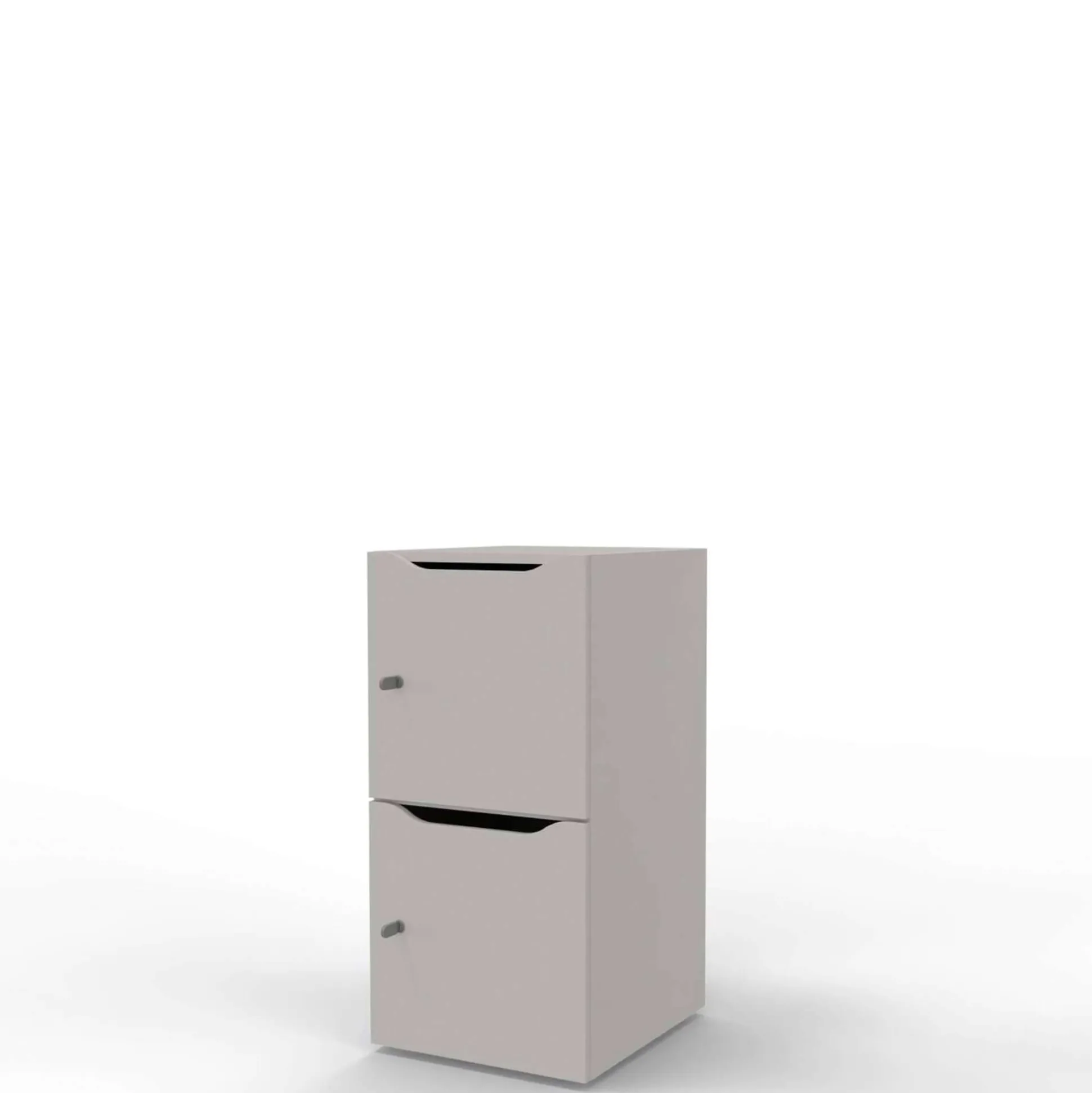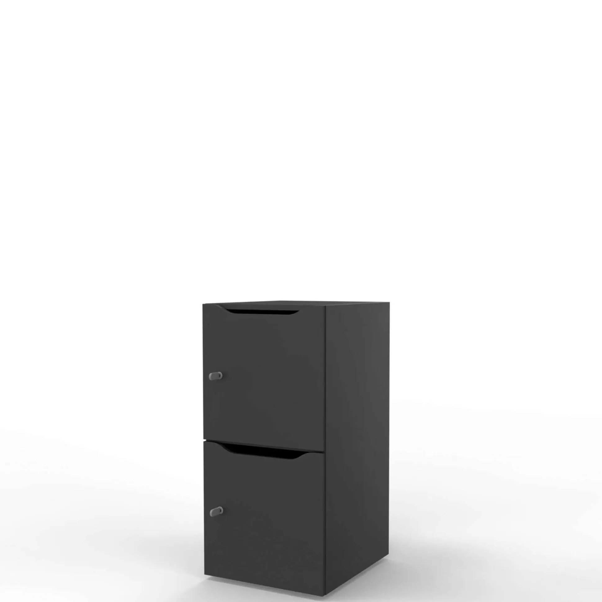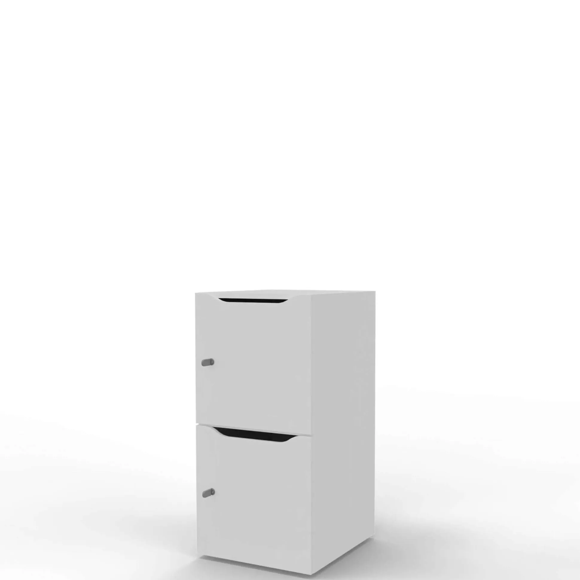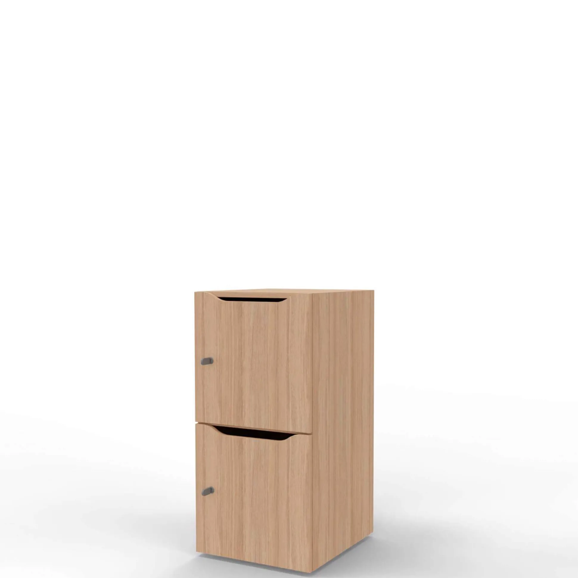 Det viste personaleskab er med 2 rum og indkast, hvor korpus og låger har samme farve. Du kan vælge mellem hvid, lysegrå, antracit eller eg. Hvert rum er med en standard nøglelås inkl. 2 nøgler.