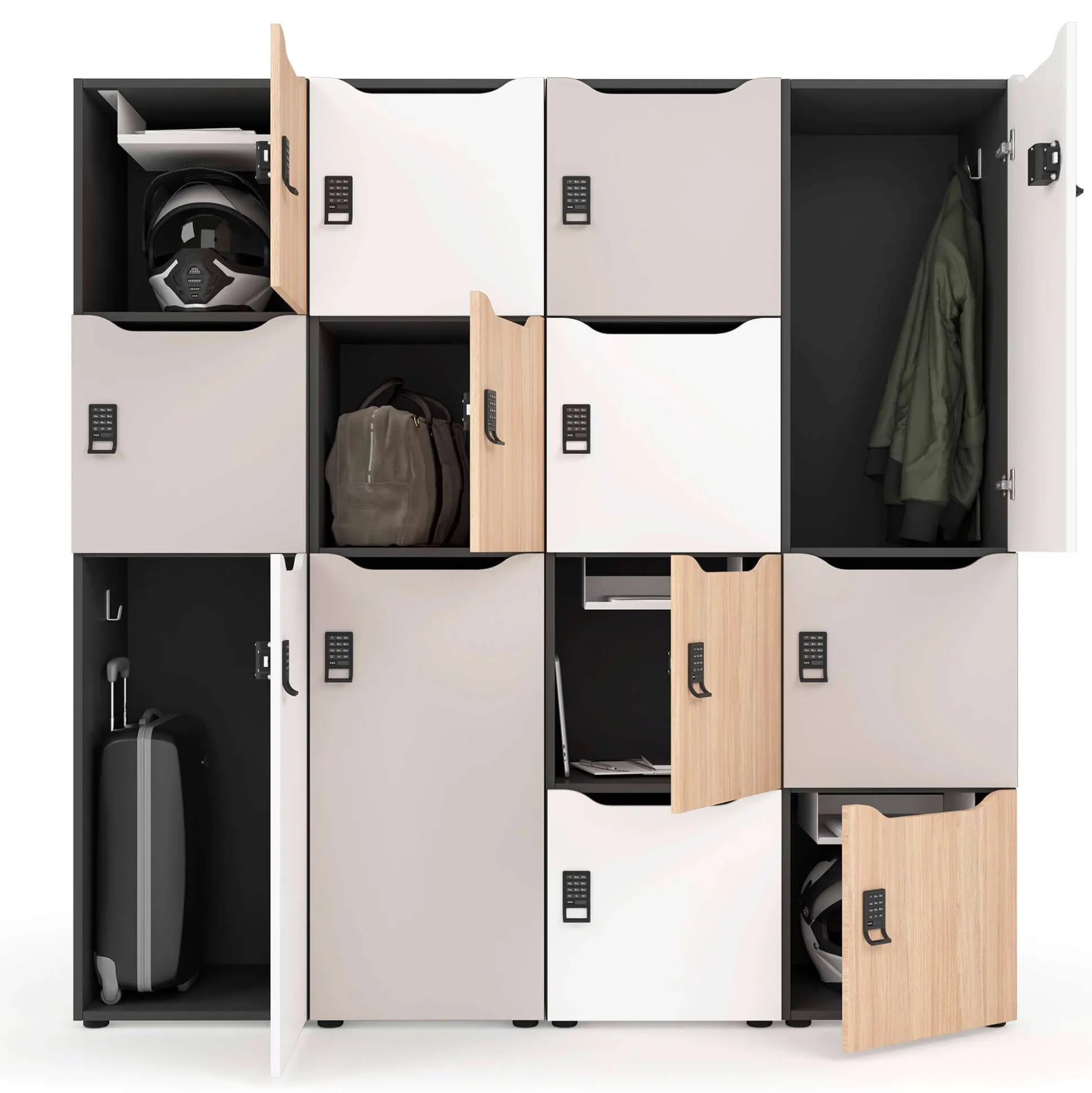 Du kan selv sammensætte din egen opstilling af personaleskabe, så det passer præcis til dine behov. Der kan ændres farve på korpus og låger, der kan tilkøbes kodelås eller elektroniske låse.