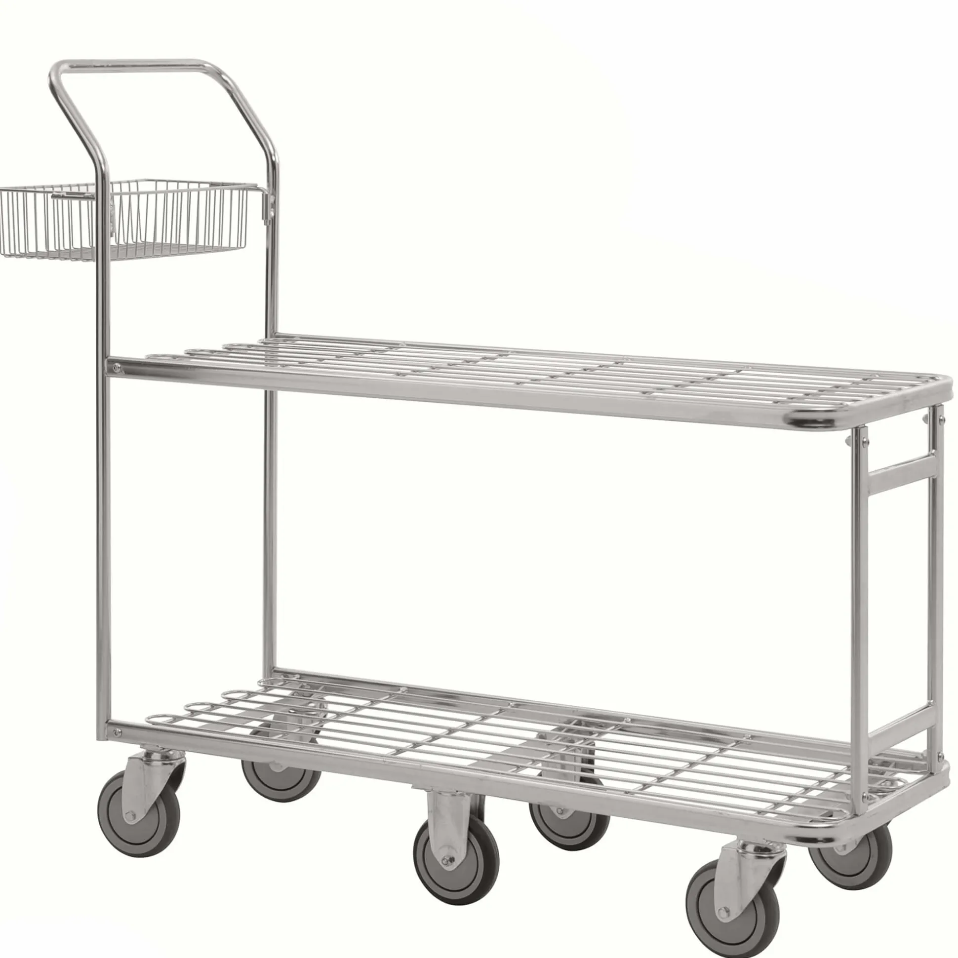 - Med 6 hjul hvoraf 2 er faste og 4 er svingbare, Ø12,5 cm.