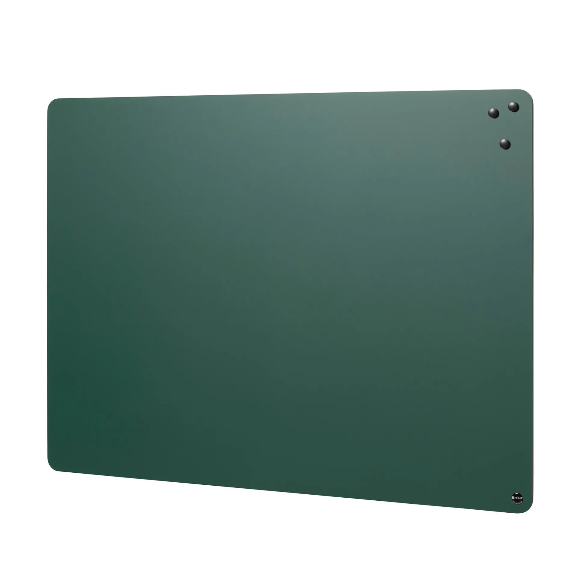 Smart rammeløs kridttavle der er magnetisk, og har afrundede hjørner. Med dens størrelse på 87×117 cm er den velegnet til brug i både private hjem, skoler, kontorer og mødelokaler. Den grønne farve giver et klassisk udtryk i en ny og lækker designudgave.