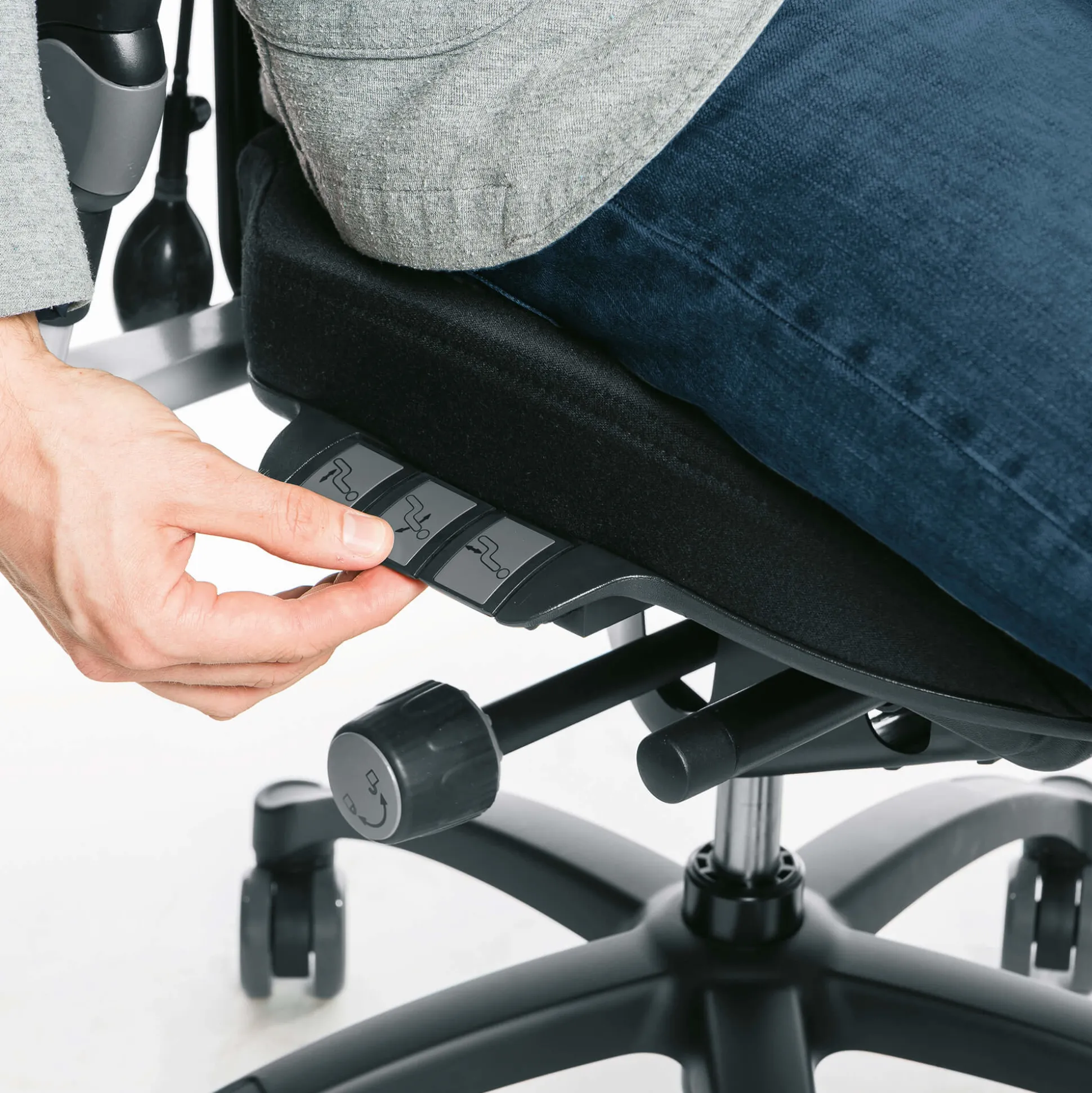 Sædet er afrundet fortil, så trykket mod baglåret mindskes og afrundet bagtil, så bækkenet får den korrekte vinkel. Stolen er udstyret med 65 mm. hjul til hårde gulve. Armlæn og nakkestøtte er tilkøb. Ønsker du en højere ryg, er Logic 400 det rette valg.