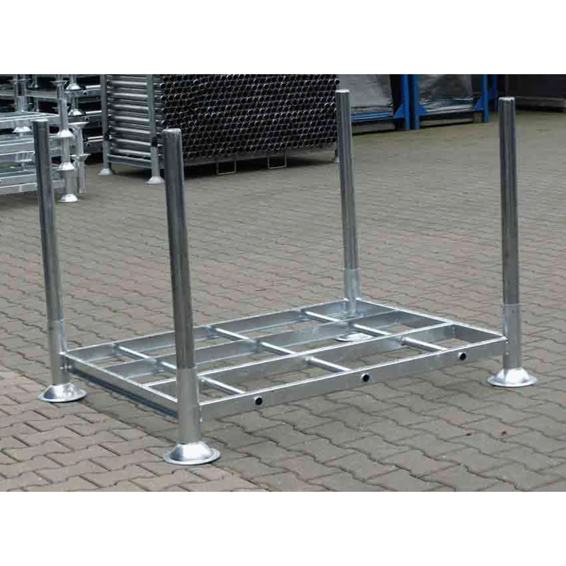 Røret er til placere i de 4 hjørner på transportrammen, så rammen kan stables. Længde 105 cm. Galvaniseret.