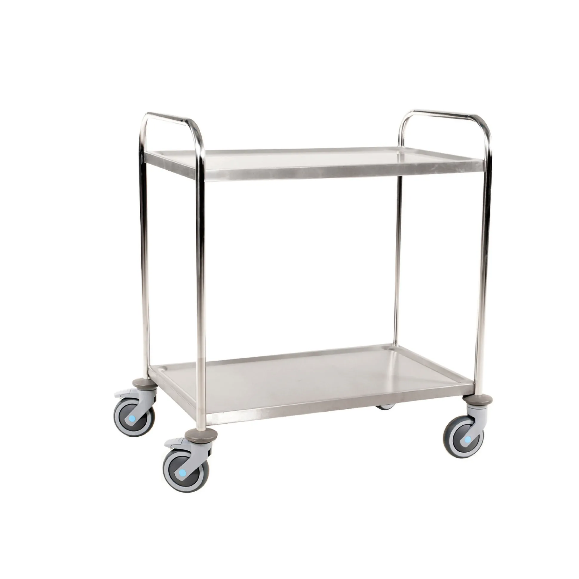 Rustfrit rullebord med 2 hylder, hvor alt er rustfrit – også hjulene. Mål: 59x91x96,5h cm. Velegnet til transport af bl.a. levnedsmidler.