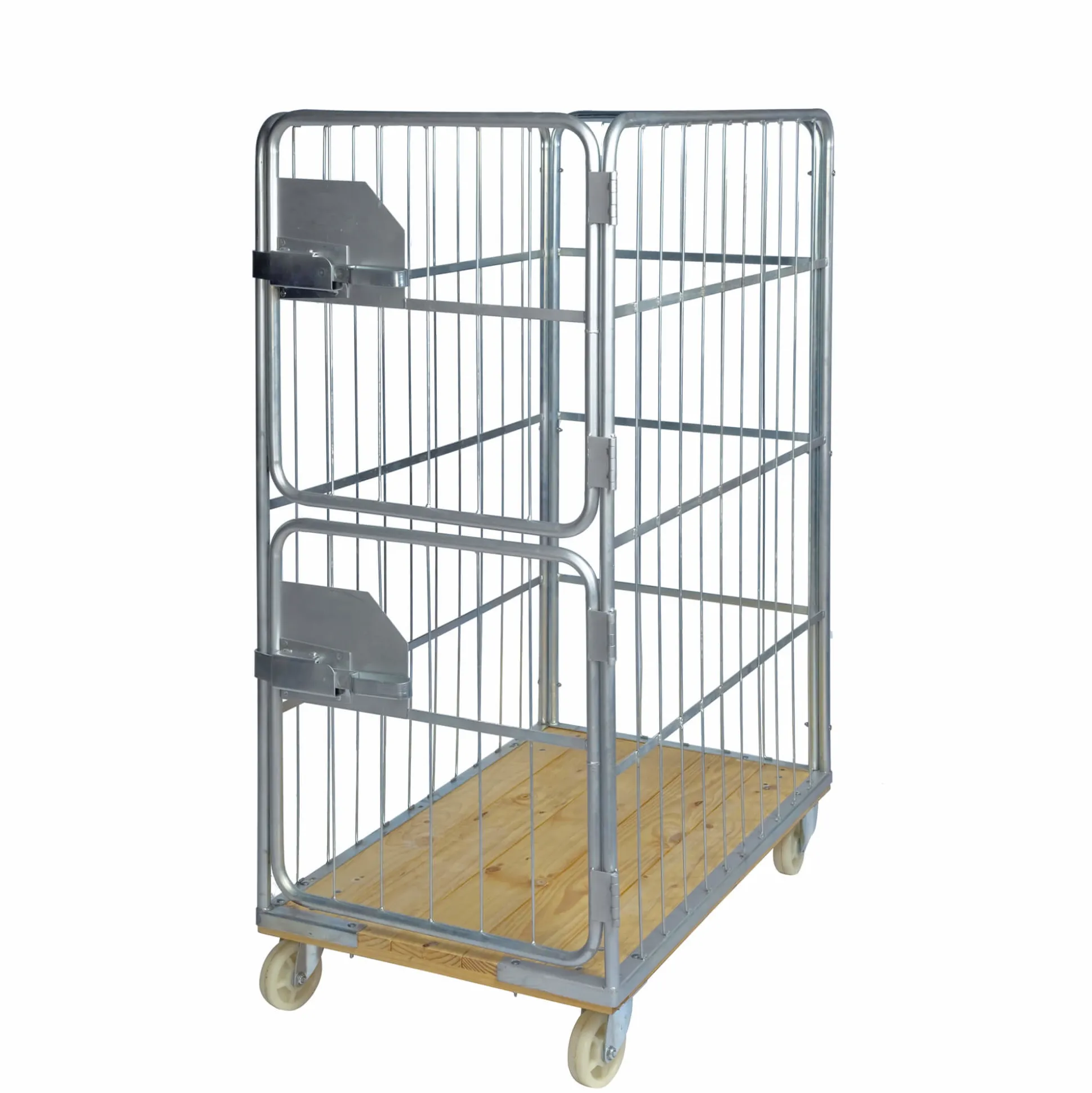 Rullecontainer med træbund, 3 vægge og 2 låger på 75 cm siden. Leveres elforzinket. Med 4 hjul – heraf er 2 svingbare og 2 faste, Ø 12,5 cm. Mulighed for hylder. Bestilles separat.