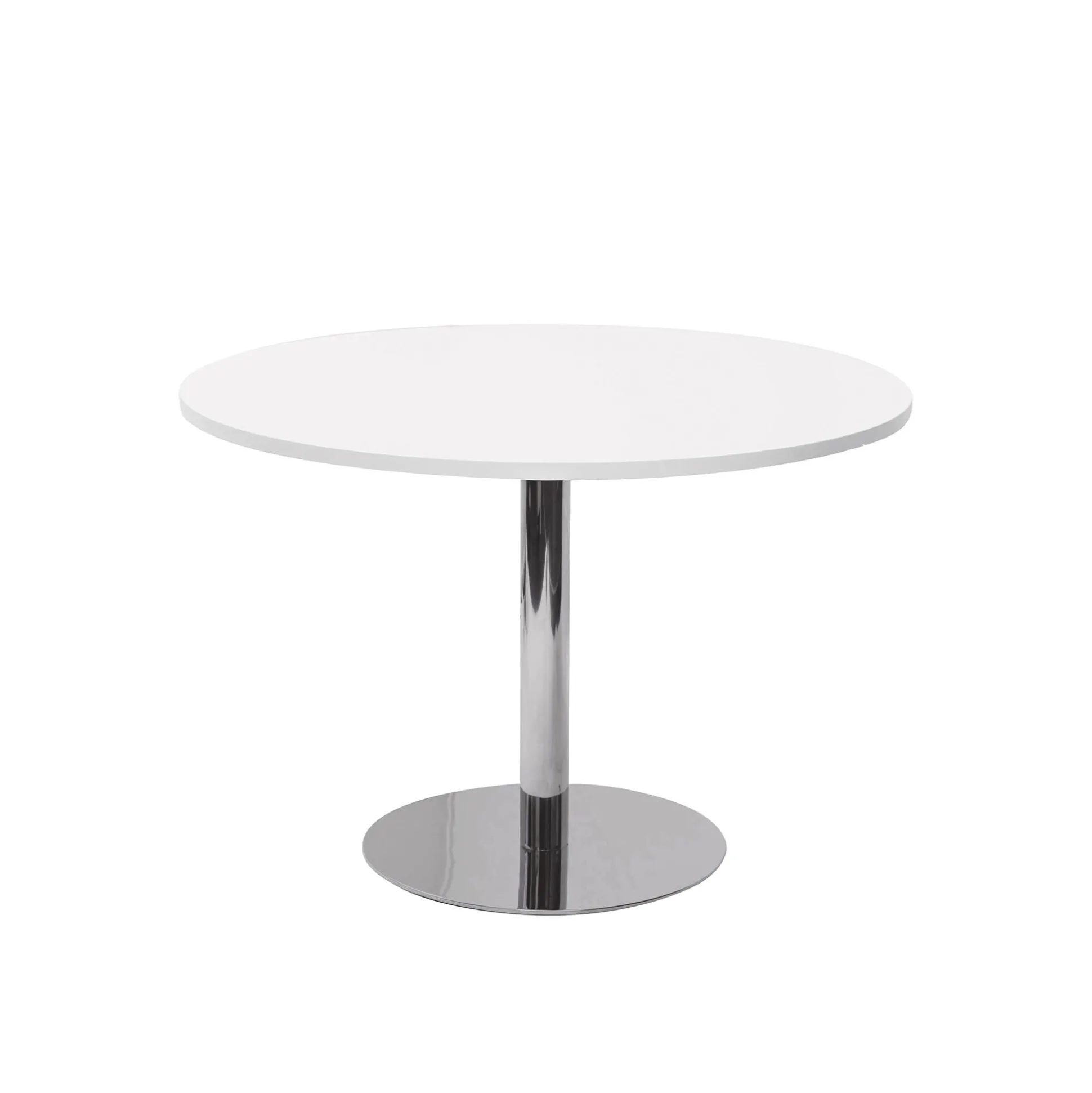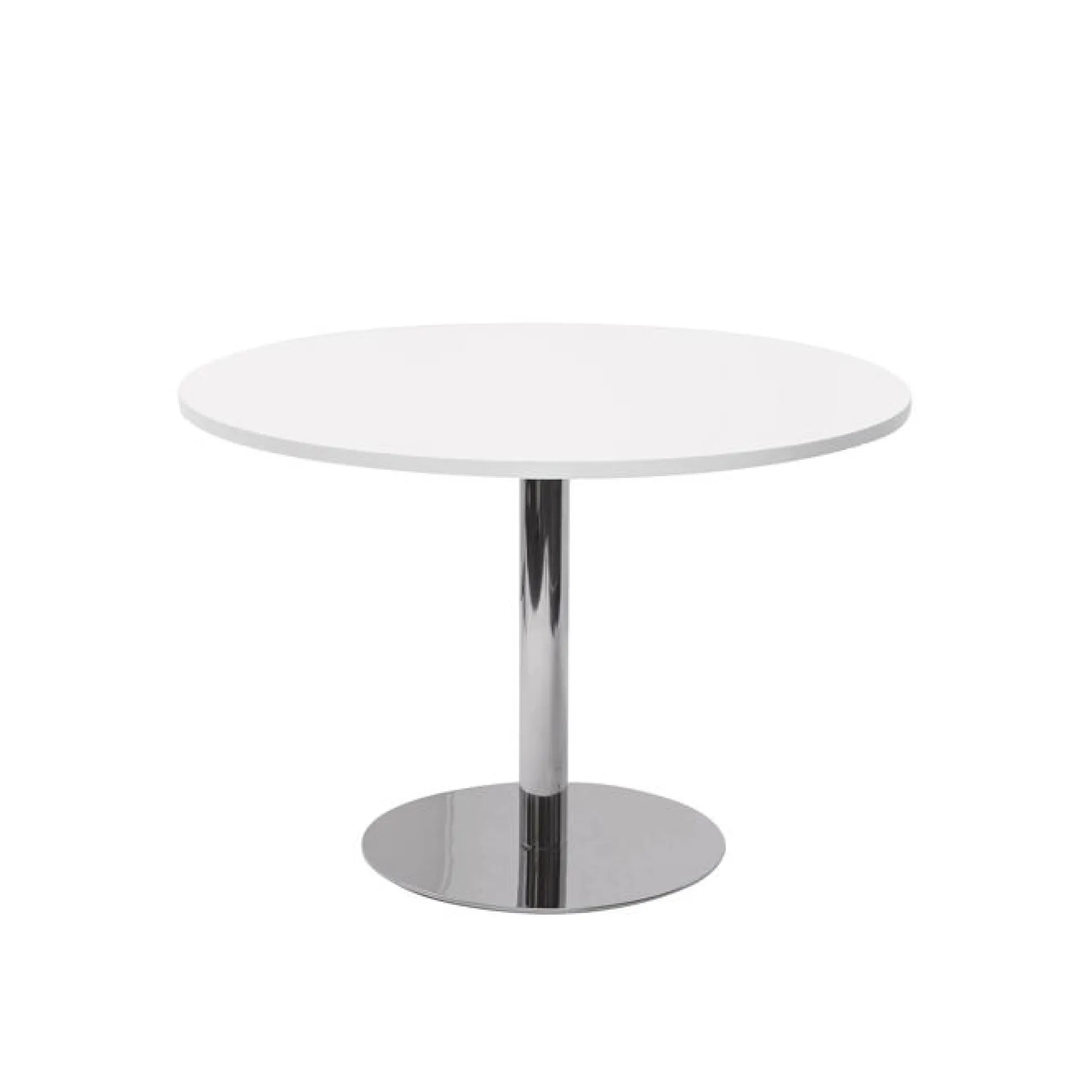 Dette smarte runde bord med en lækker laminat plade og en flot blank søjle, har mange anvendelses muligheder. Det kan blandt andet fint bruges som et lille mødebord i et mindre mødelokale. Eller som et større cafebord eller spisebord.