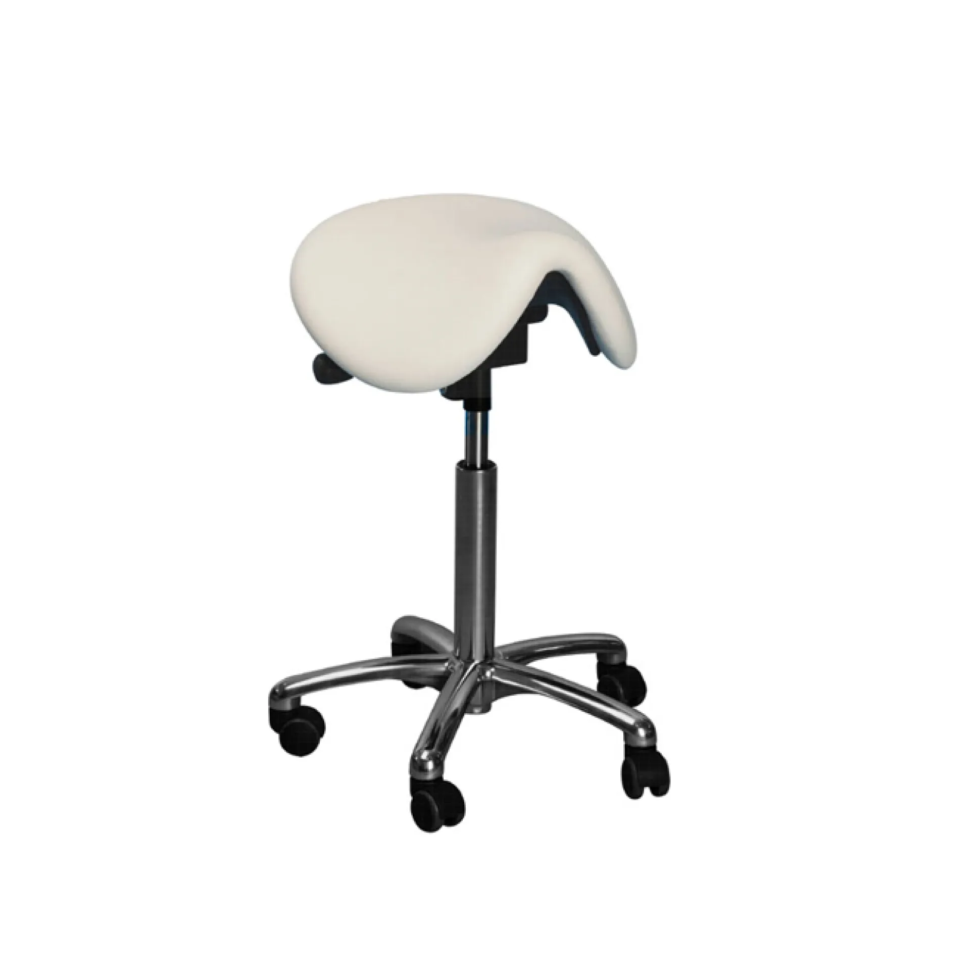 CL Dalton sadelstol er en behagelig stol, hvor sædevinklen hurtigt og enkelt kan indstilles ved hjælp af to små gaspatroner, mens du sidder på stolen. Sædevinklen (Easymek.) indstilles trinløst i intervallet 17° frem og 5° tilbage.