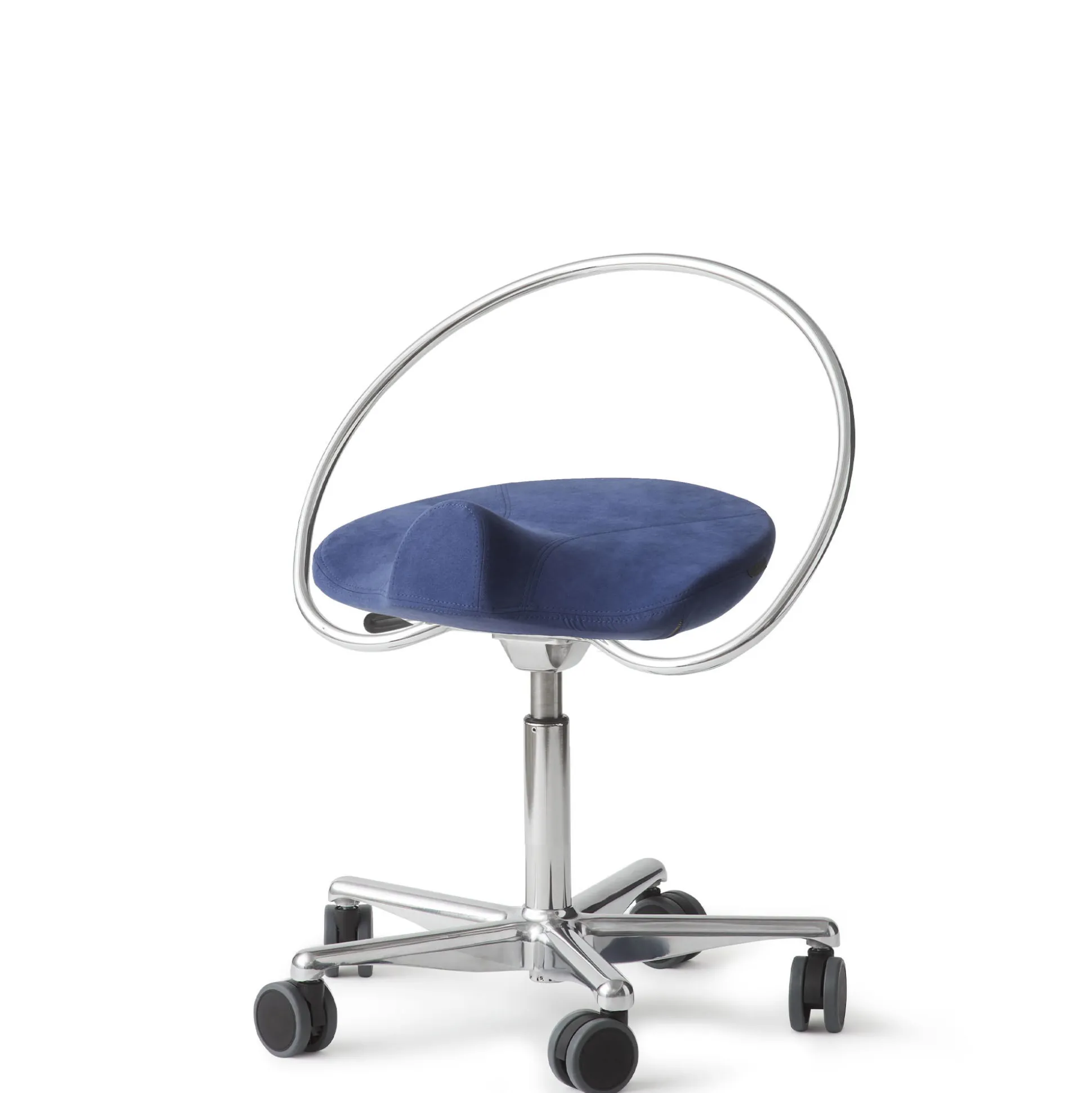 Med udgangspunkt i menneskets anatomi, er sadlen eksempelvis udformet så man ikke sidder med unaturligt spredte ben og falder sammen i ryggen. Men derimod en naturlig s-kurve i rygsøjlen. Benene kan bevæge sig frit, så du nemt kan rulle rundt i rummet, på stolen. Forhøjningen på sædets front sikrer at du ikke glider ned ad stolen, selvom du sidder højt med åben vinkel i hofteleddet.