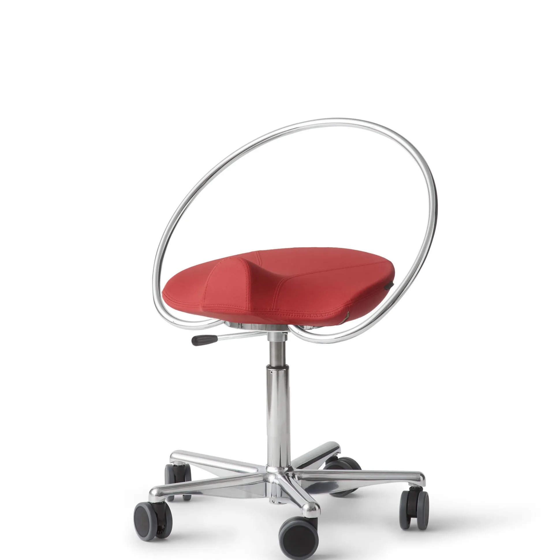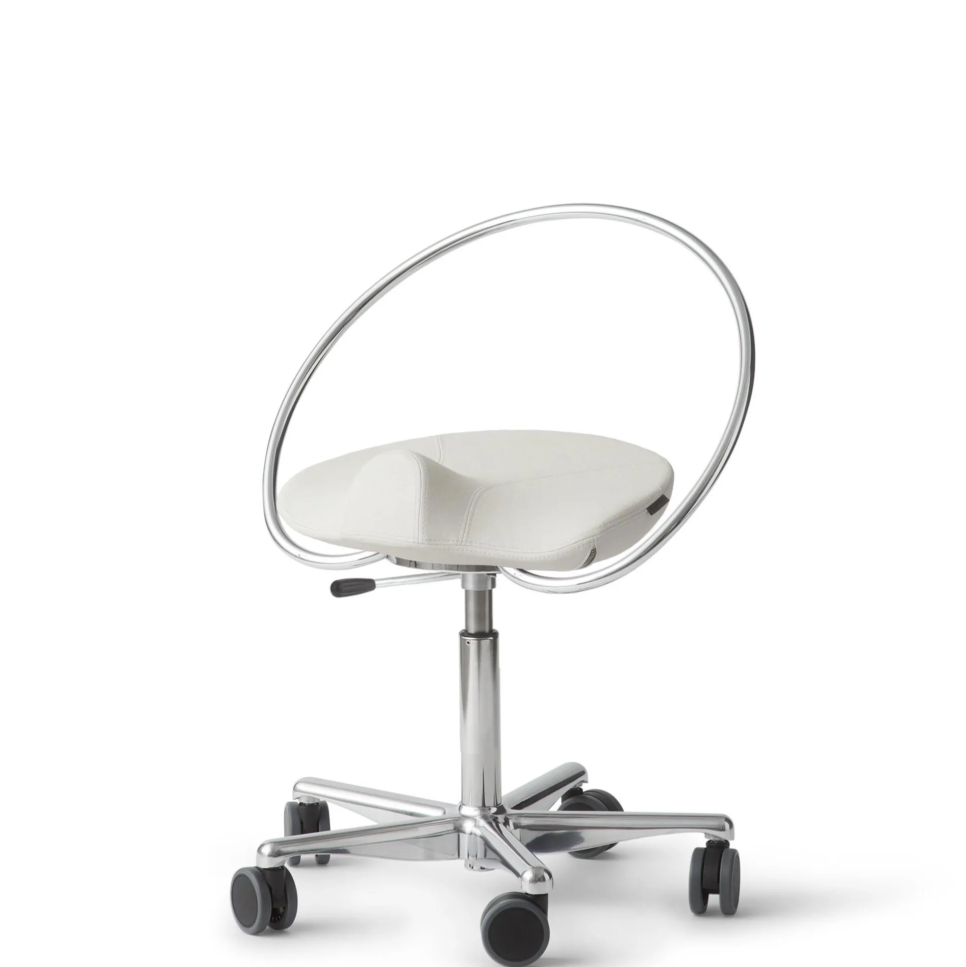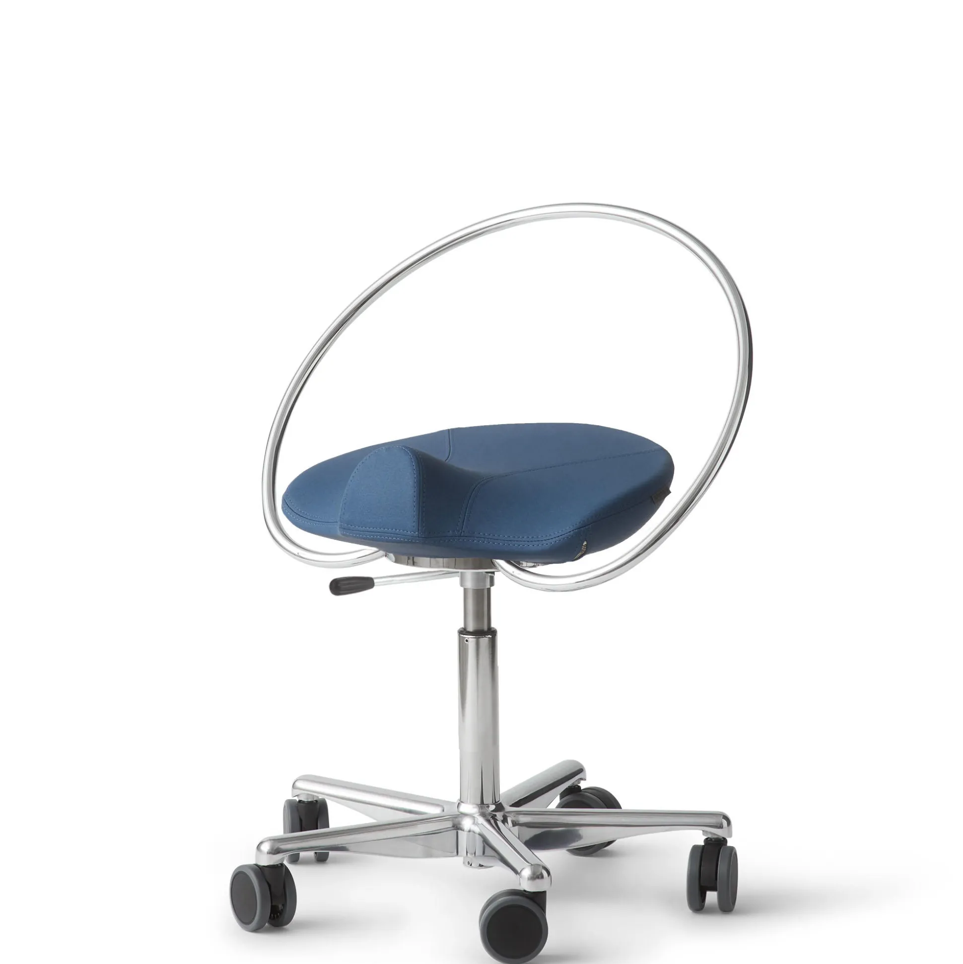 Med udgangspunkt i menneskets anatomi, er sadlen eksempelvis udformet så man ikke sidder med unaturligt spredte ben og falder sammen i ryggen. Men derimod en naturlig s-kurve i rygsøjlen. Benene kan bevæge sig frit, så du nemt kan rulle rundt i rummet, på stolen. Forhøjningen på sædets front sikrer at du ikke glider ned ad stolen, selvom du sidder højt med åben vinkel i hofteleddet.