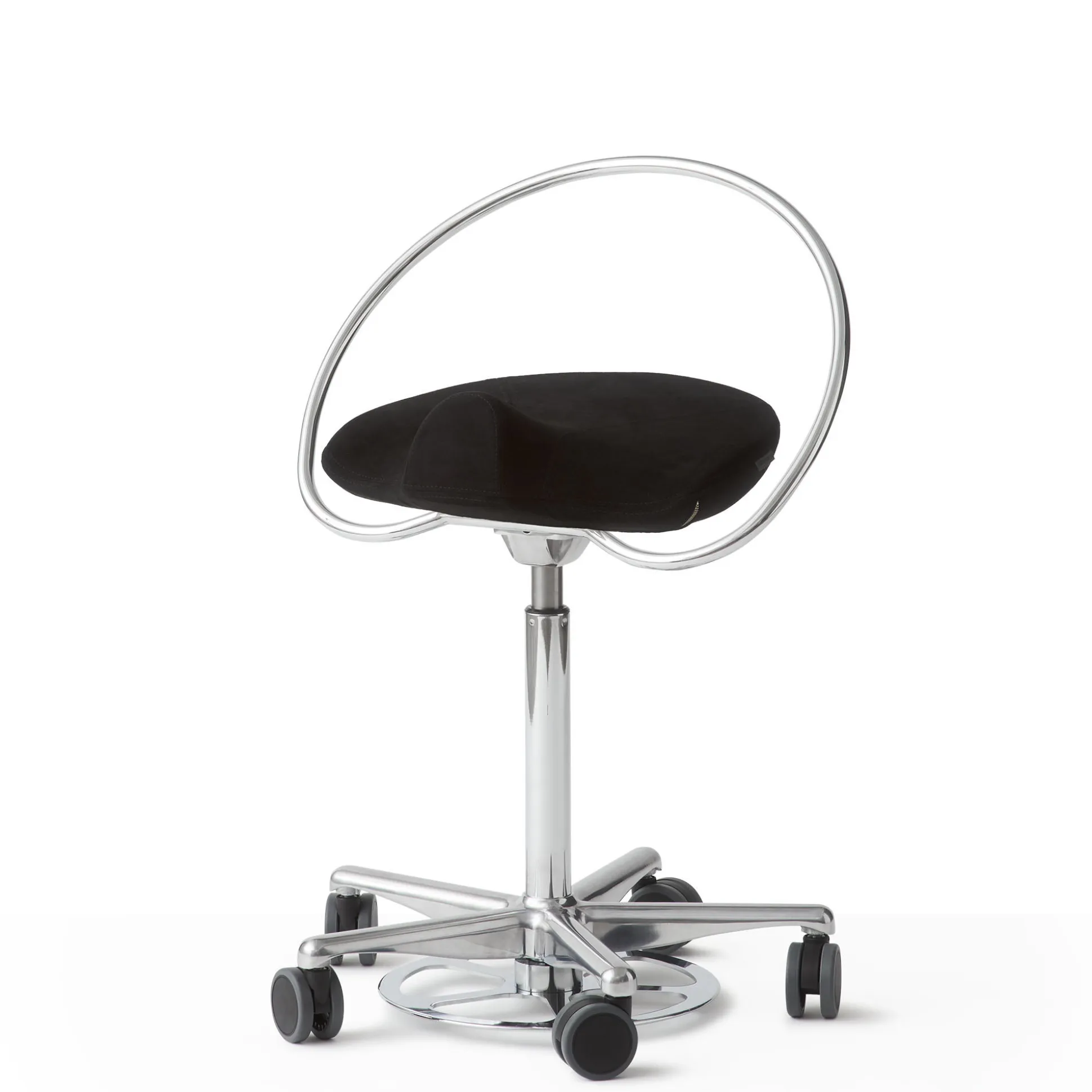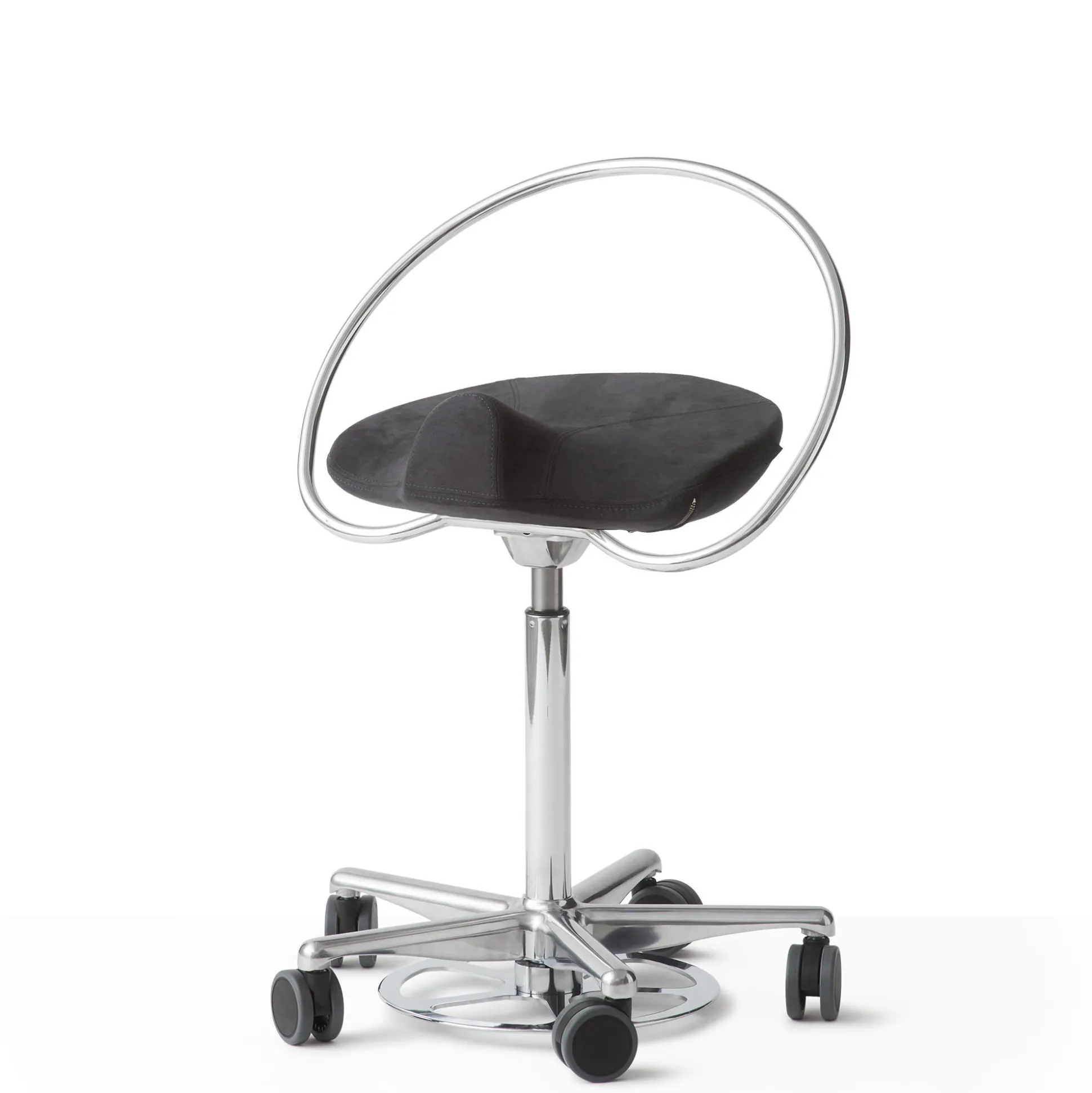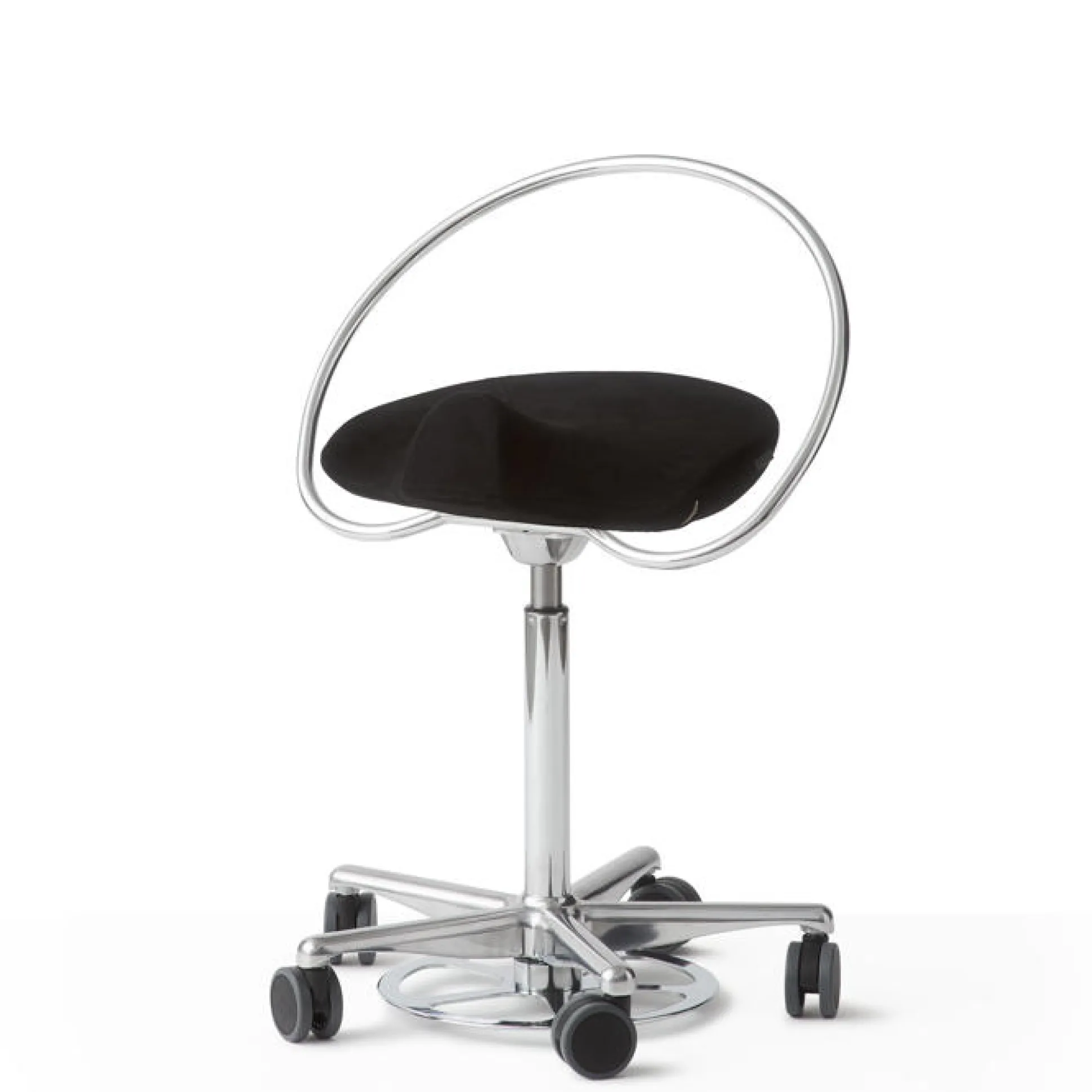 Med udgangspunkt i menneskets anatomi, er sadlen eksempelvis udformet så man ikke sidder med unaturligt spredte ben og falder sammen i ryggen. Men derimod en naturlig s-kurve i rygsøjlen. Benene kan bevæge sig frit, så du nemt kan rulle rundt i rummet, på stolen. Forhøjningen på sædets front sikrer at du ikke glider ned ad stolen, selvom du sidder højt med åben vinkel i hofteleddet.