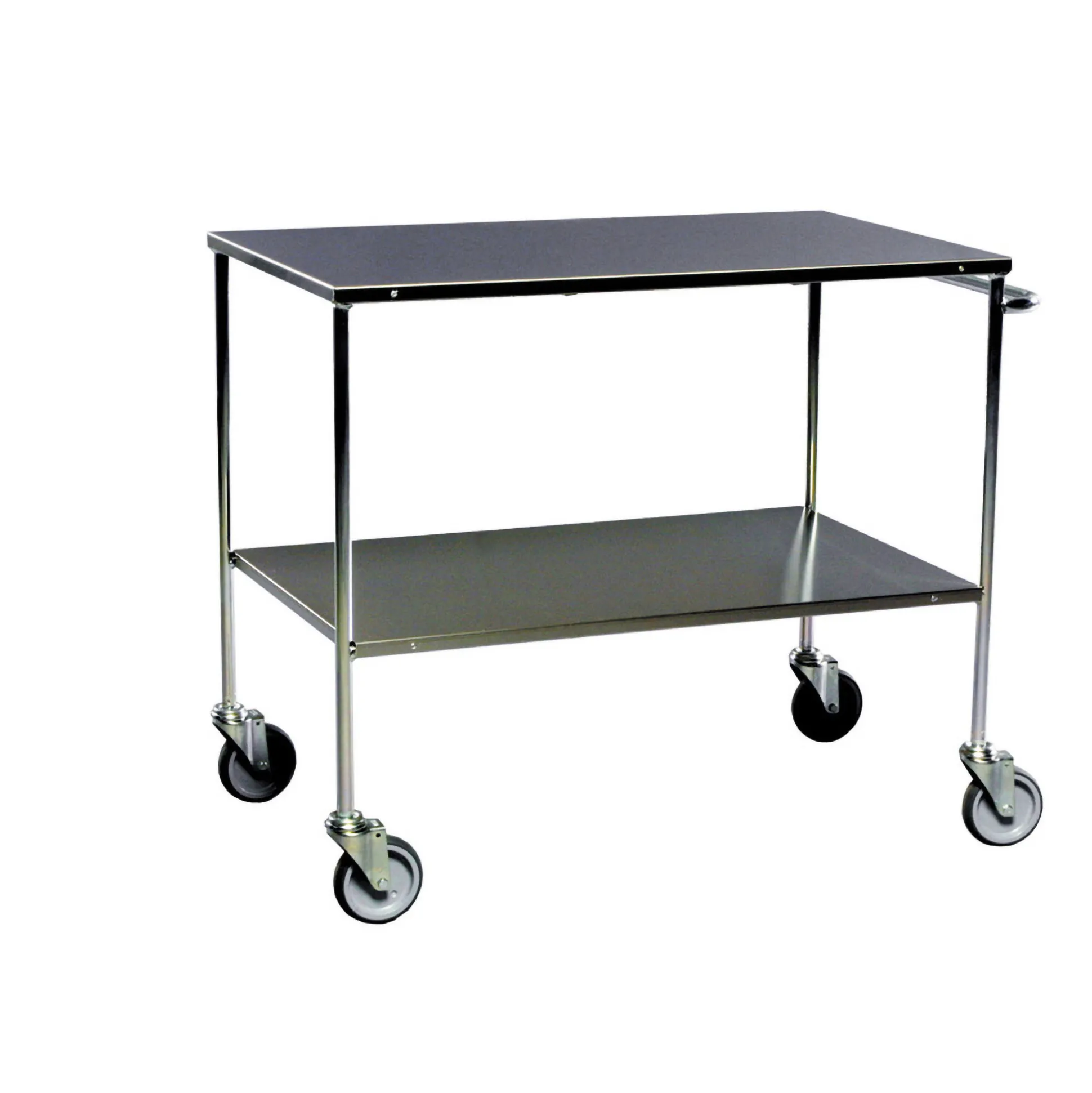 Serveringsvogn med ramme i elforzinket stål og hyldeplader, der er monteret med 1 mm rustfri plade.