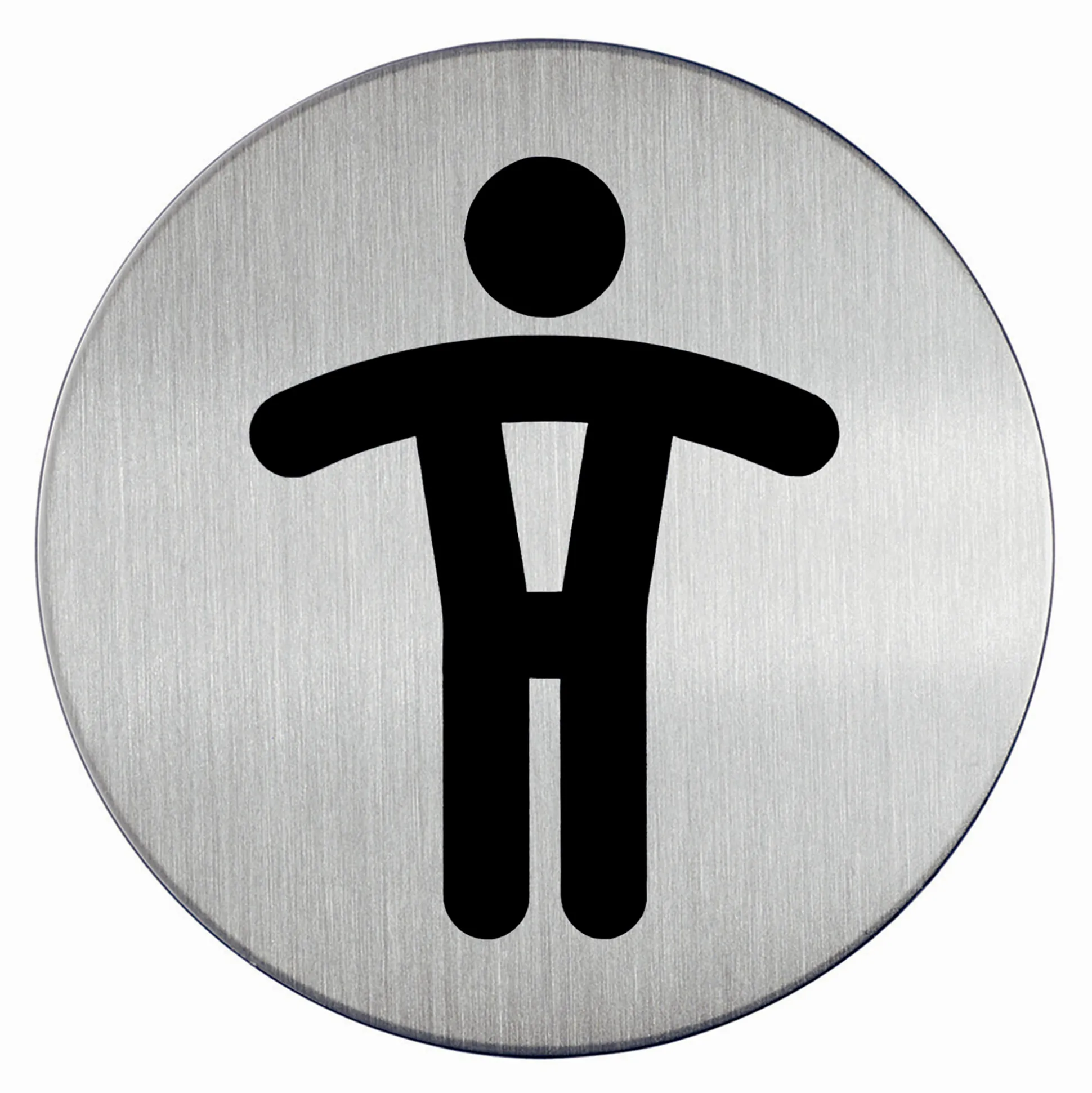 Rund skilt WC Herre toilet Symbolskilt af børstet rustfrit stål, der er ridsefri. Selvklæbende puder medfølger. Ø 83 mm