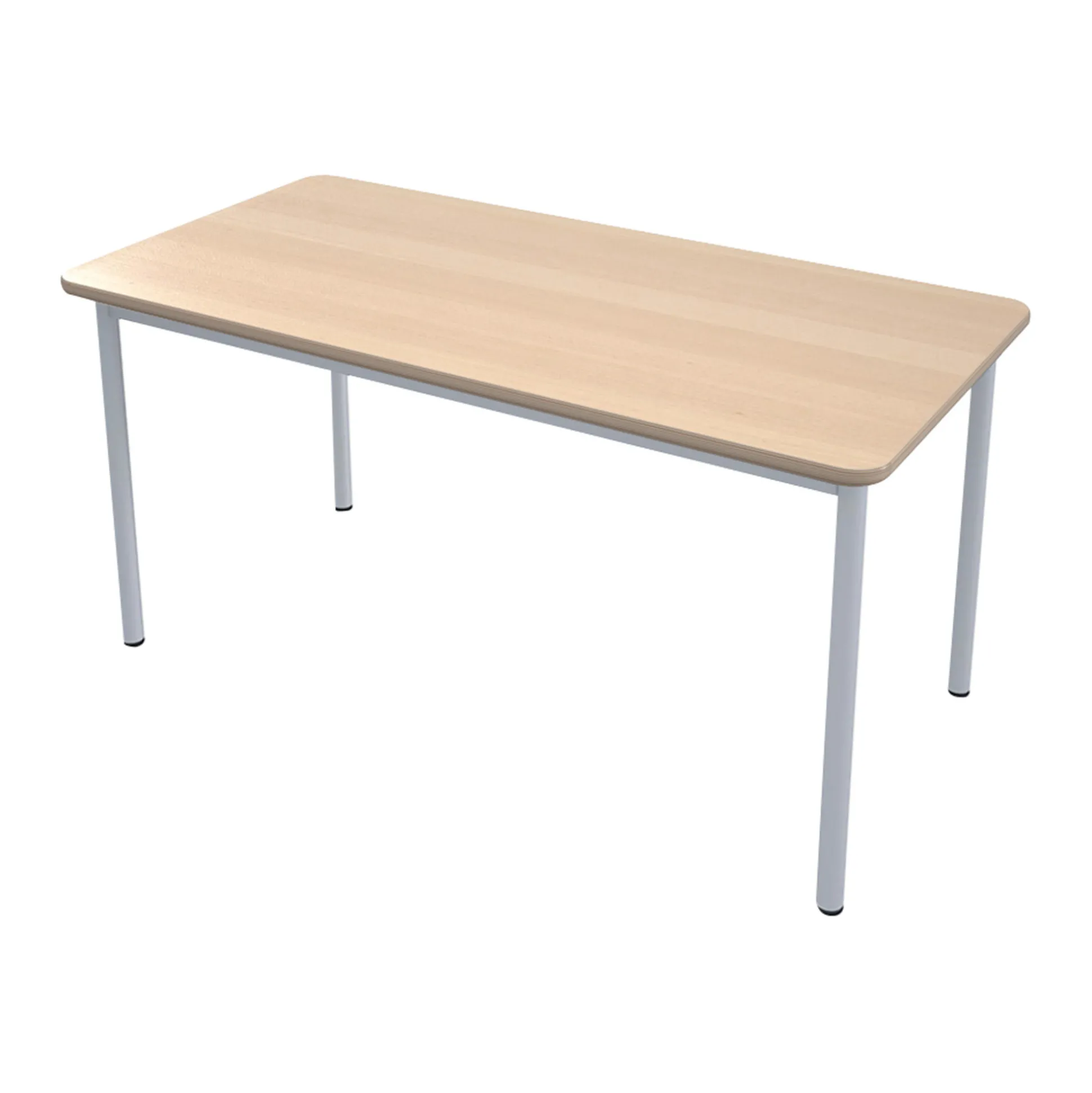 En kraftig bordplade, 25 mm. og et kraftigt stel, Ø40 mm., sikrer lang levetid. Bordplade i ridsefast decor laminat som er nem at vedligeholde. ABS plastkanter, giver en ekstra solid kant. Metalrammen i 40×20 mm. på alle fire sider, sikrer ekstra understøtning af bordpladen.