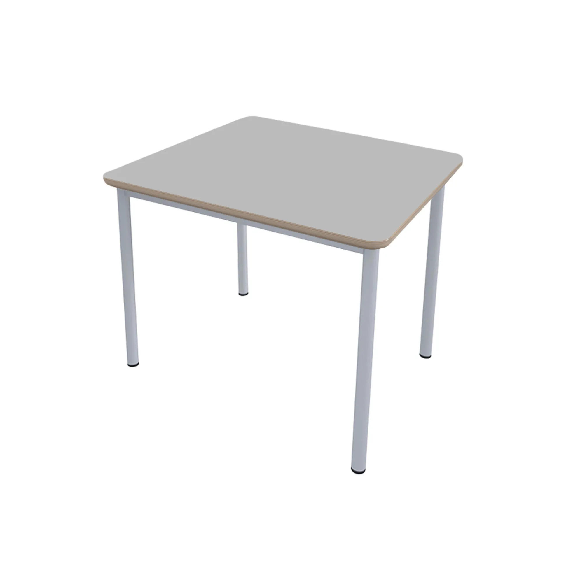 En kraftig bordplade, 25 mm. og et kraftigt stel, Ø40 mm., sikrer lang levetid. Bordplade i ridsefast højtrykslaminat som er nem at vedligeholde. Afrundede kanter i krydsfinér. Metalrammen i 40×20 mm. på alle fire sider, sikrer ekstra understøtning af bordpladen.