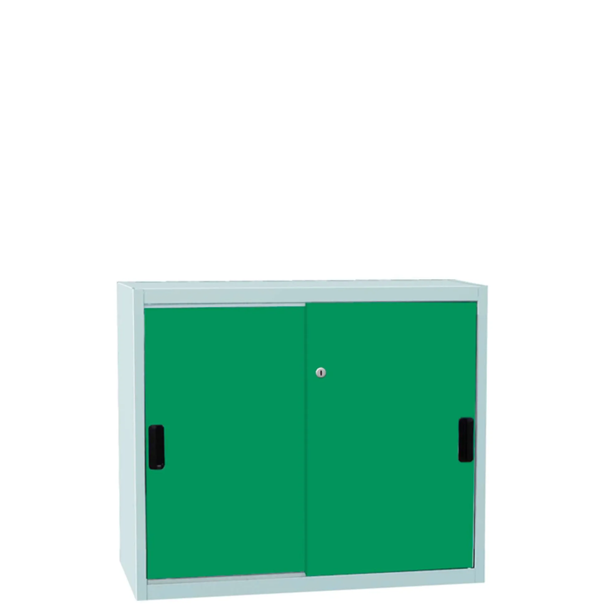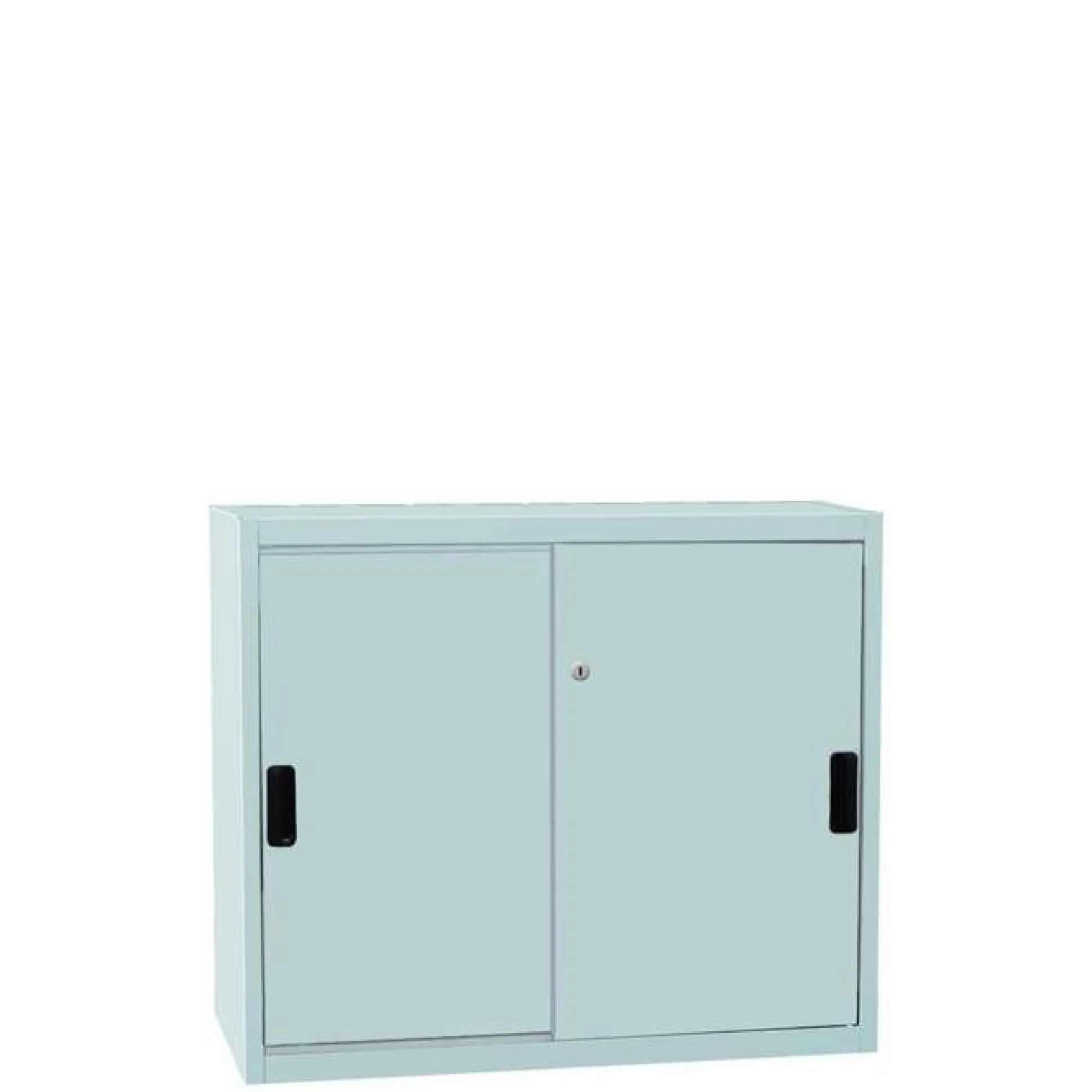 Arkilux II skydedørsskab. Skabet er svejst, i stål med 2 skydedøre. Arkivskabet kan rumme A4 brevordnere. Skabet er med cylinderlås med 2 nøgler og 1 flytbar hylde.