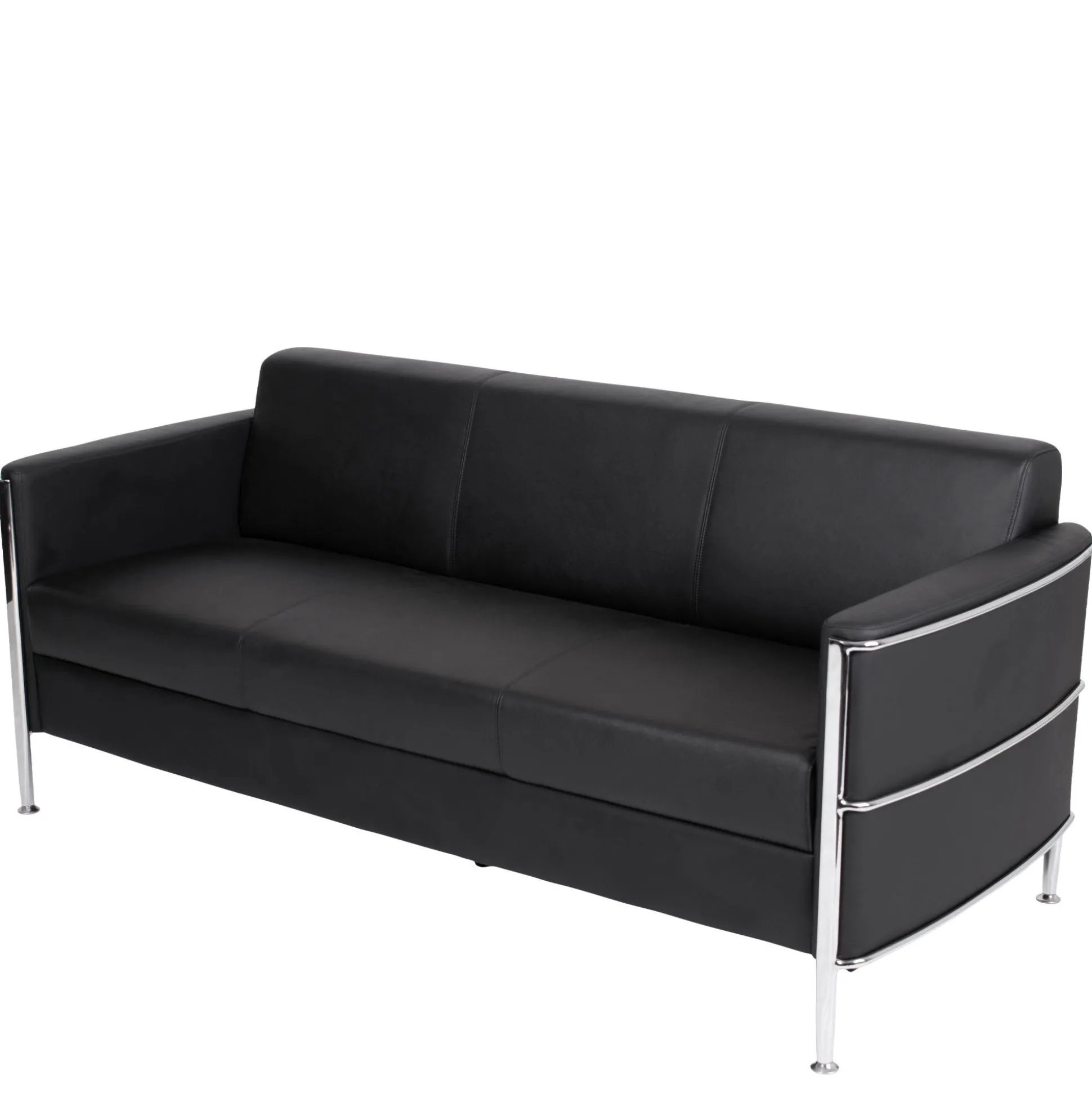 Sofaen har en siddehøjde på 43 cm og er fremstillet med materialer af høj kvalitet, herunder sort gennemfarvet blødt læder på fronter og slidflader samt kunstlæder på bagsiden. Mål: 75x171x74,5 cm.