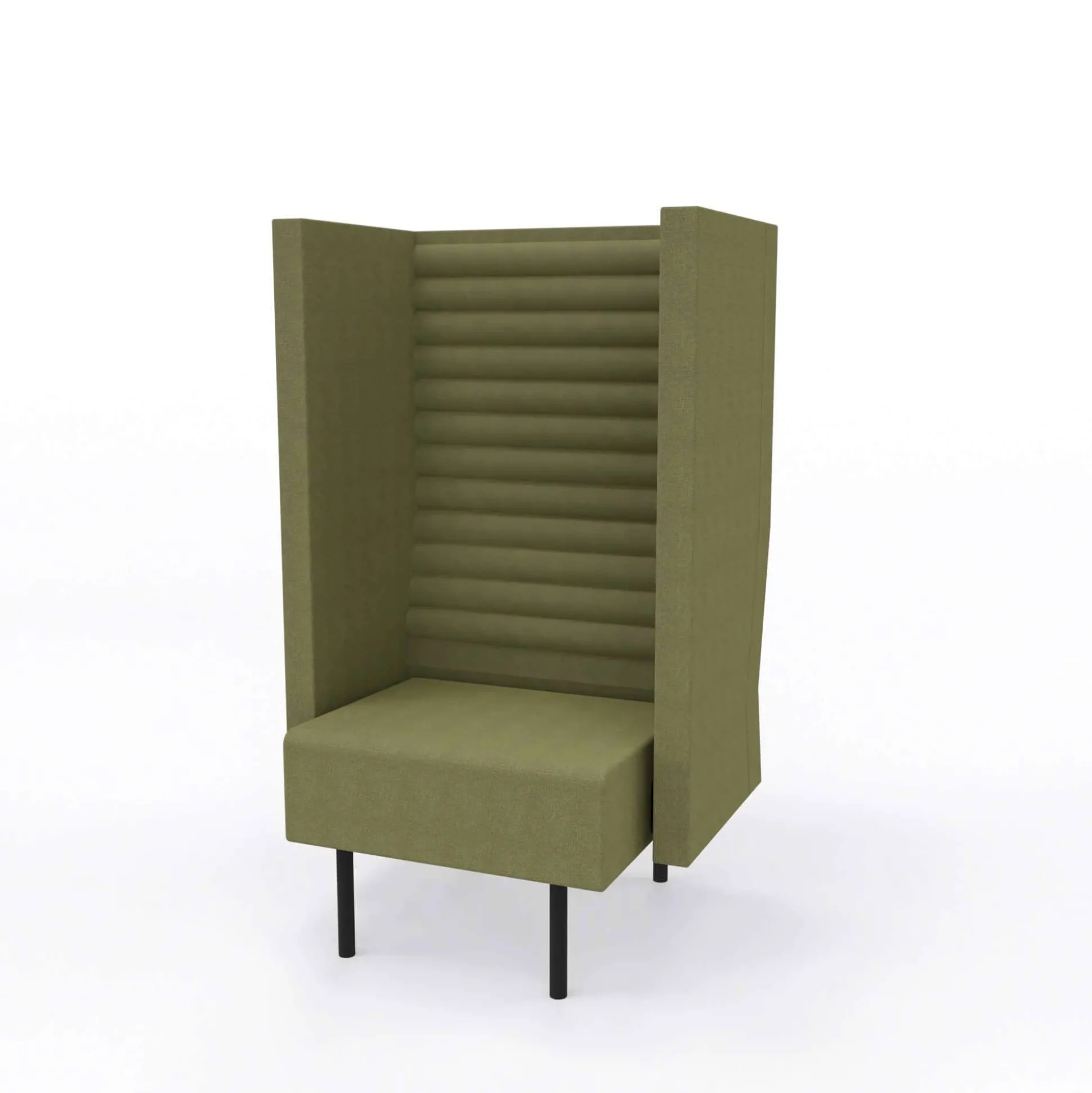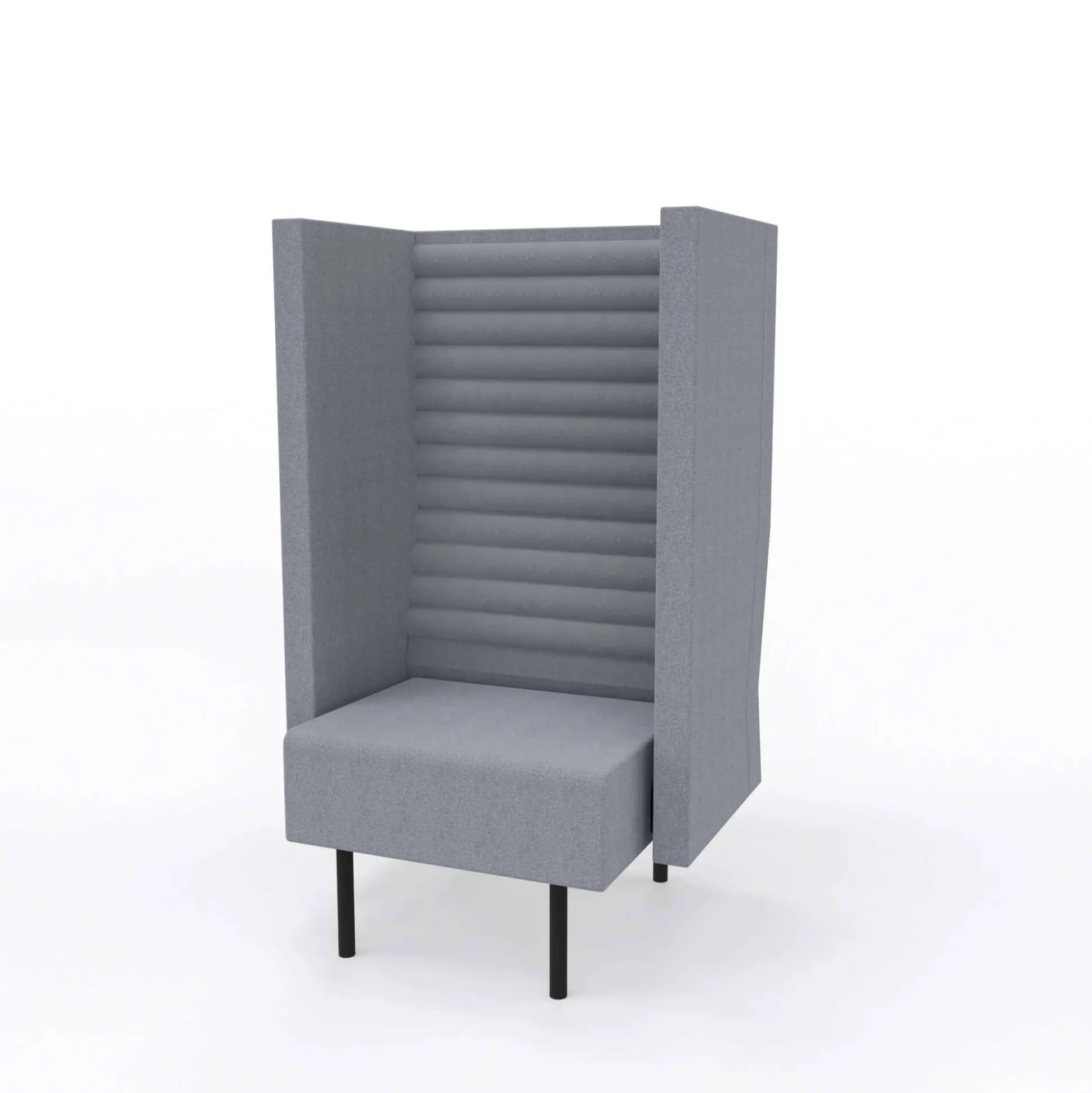 Wave sofa med høj ryg til 1 person er en del af en serie af sofaer med ekstra fokus på afskærmning og ro. Med forskellige højde på ryggen kan man med Wave serien møblere et lokale med møderum og sofaer som passer sammen.