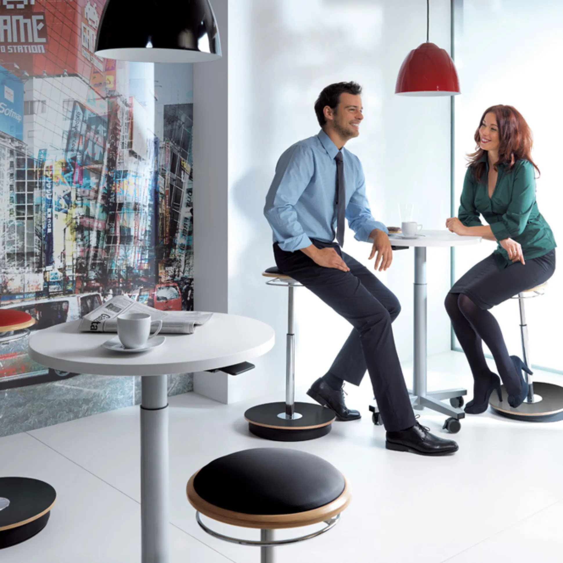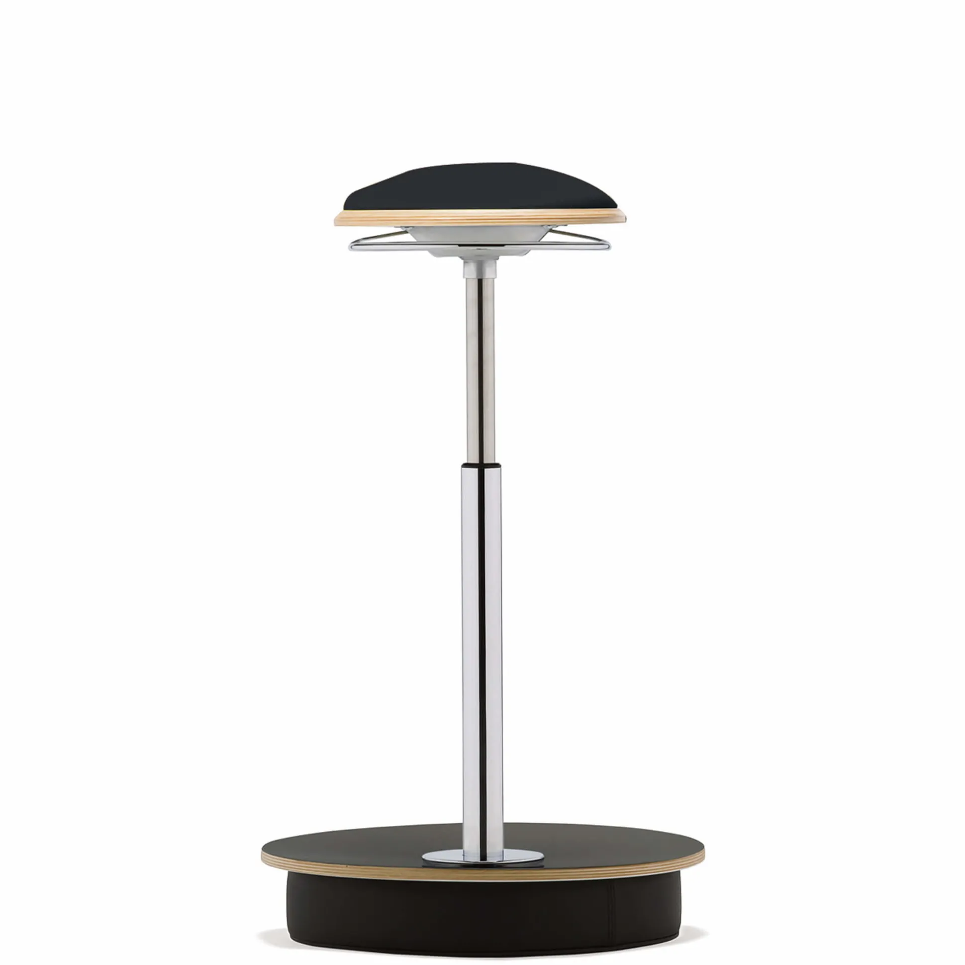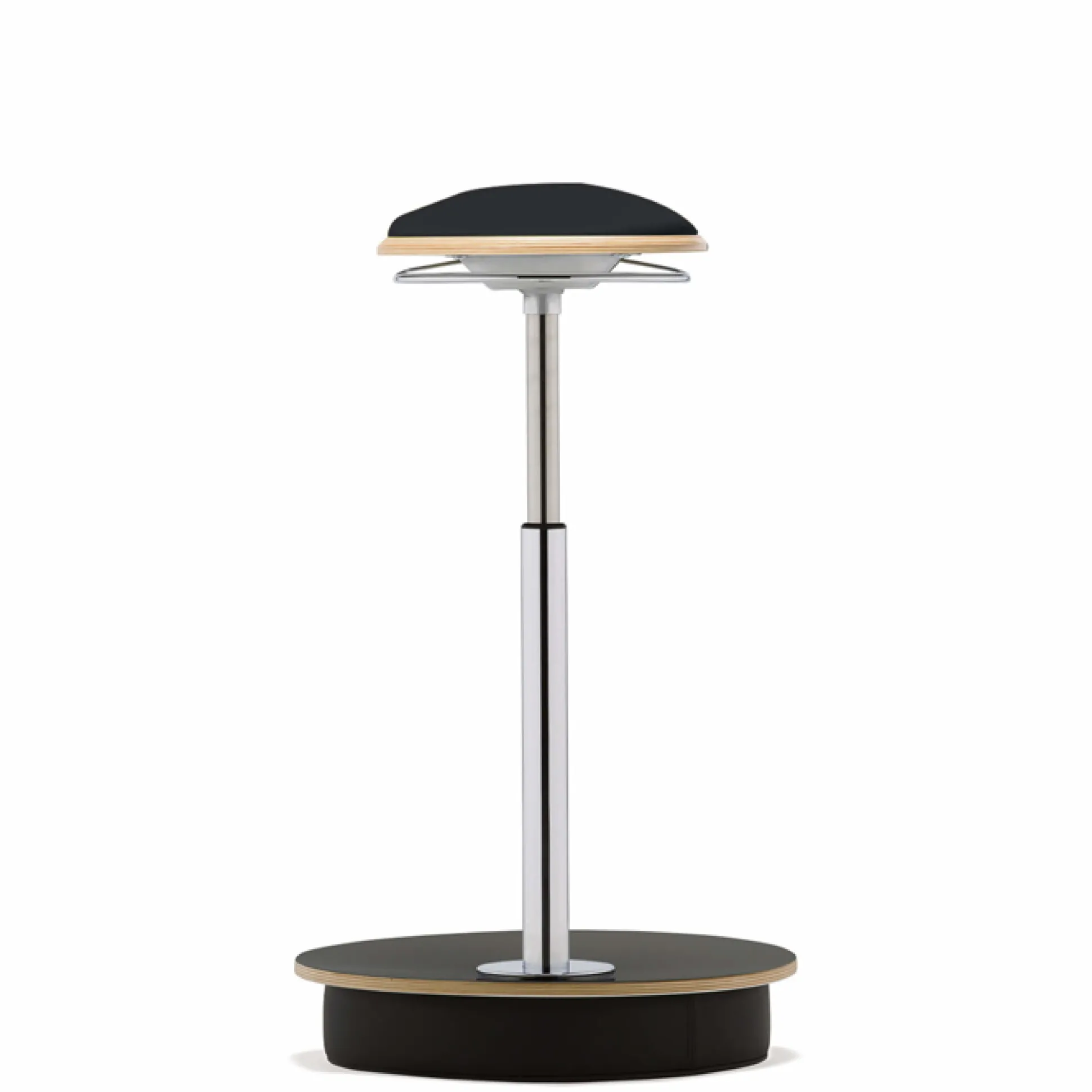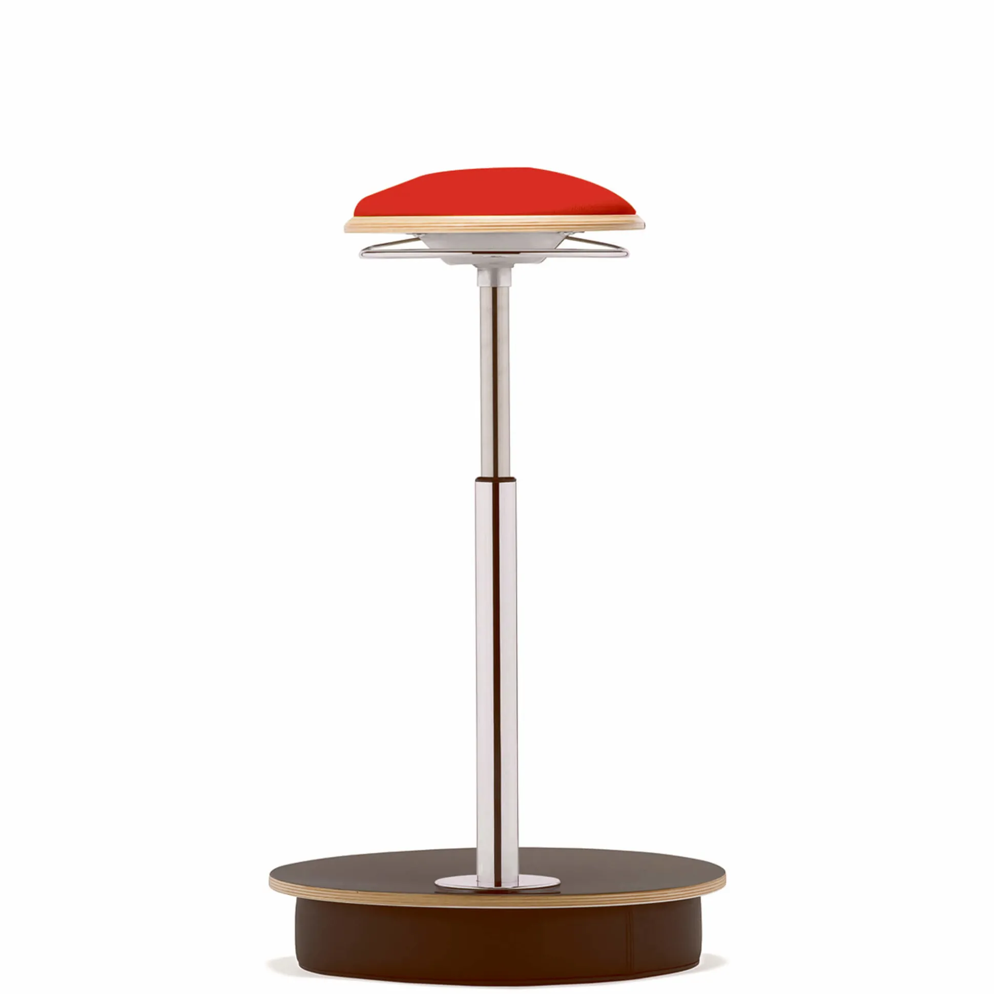 Mål: Sæde Ø 28,5 x bredde på fod ø 43,5. Højdeindstilling 59-88 cm. Stolens bevægelighed øger blodcirkulation i kroppen. Polster i slidstærkt Lucia-stof i sort, rød eller grå.
