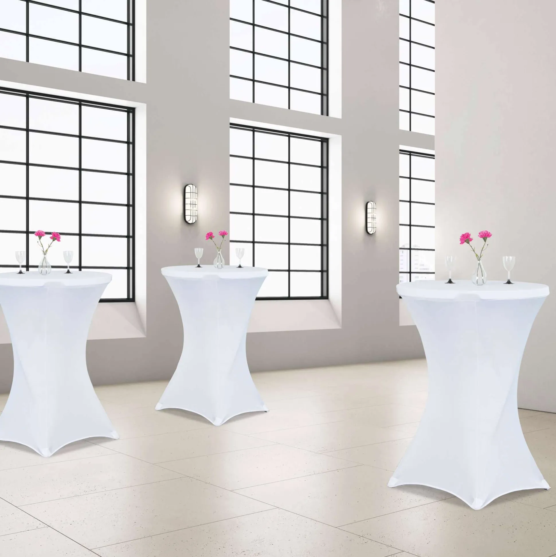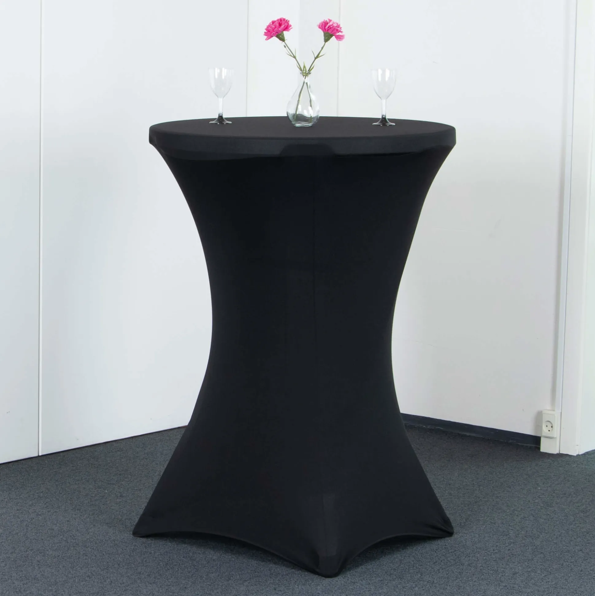 Ståbord Ø80 cm med en hvid bordplade i plast. Derudover medfølger der en smart og elegant strækdug i sort. Dugen giver ståbordet et eksklusivt look, der er perfekt til finere arrangementer.