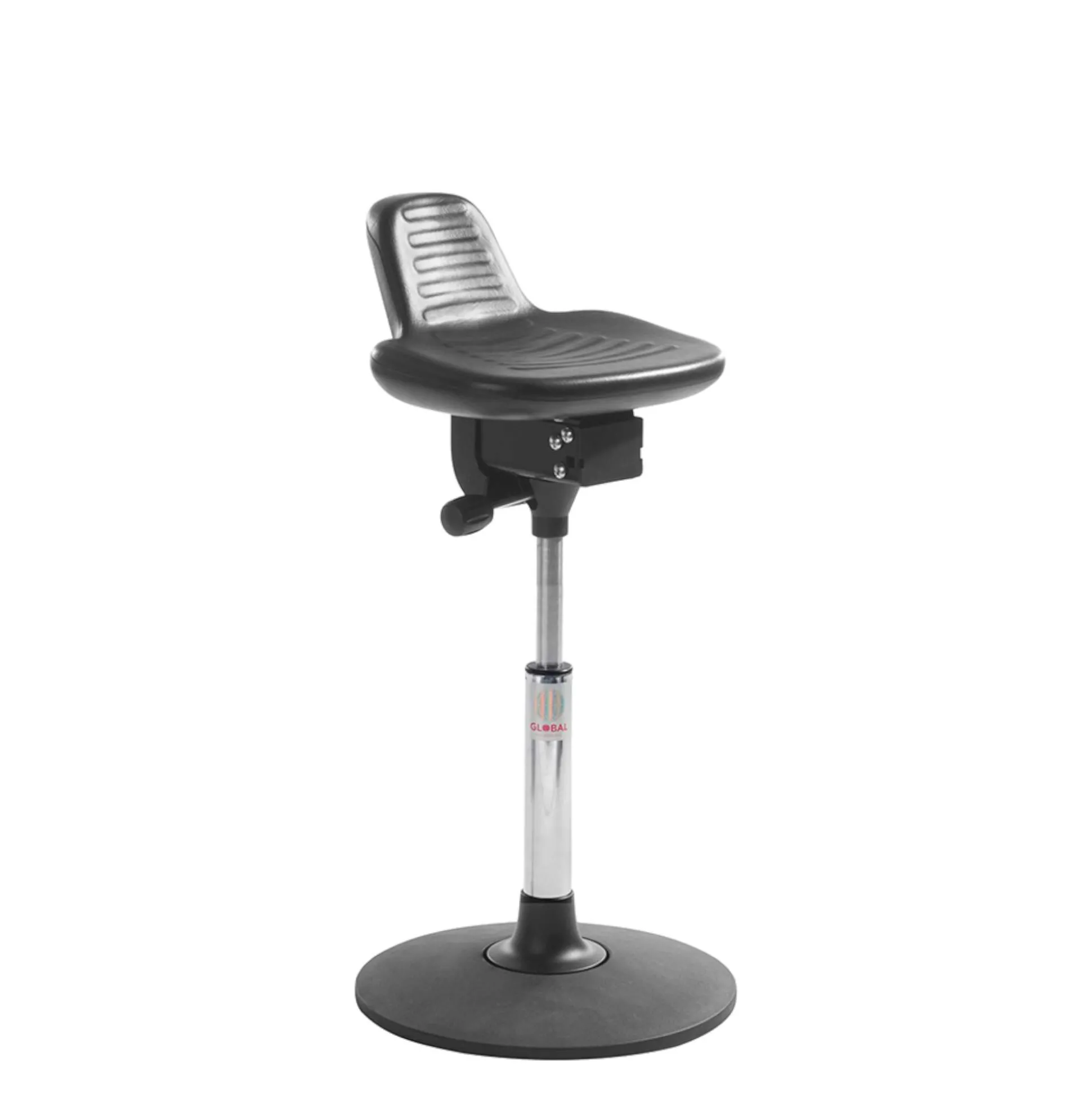 Space-sædet kan både bruges som taburet og som ståstøtte. Det er udført i polyurethan, hvilket gør det robust og praktisk. Polyurethan er hårdfør over for mange typer væsker og kemikalier samtidig med at den er rengøringsvenlig.